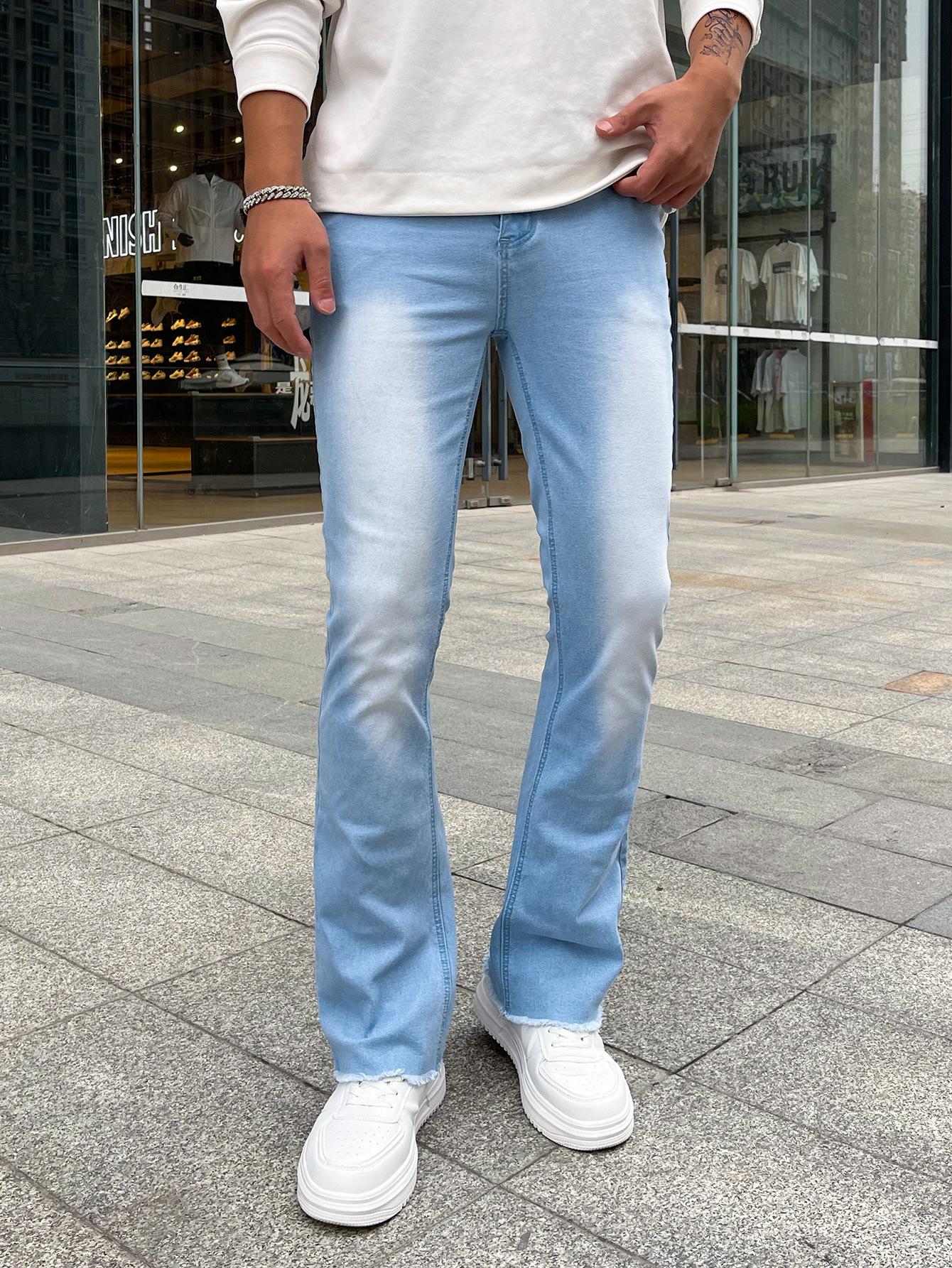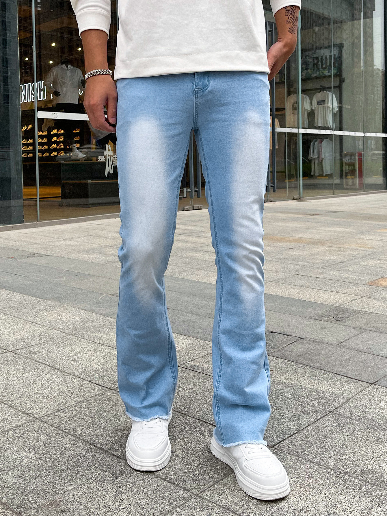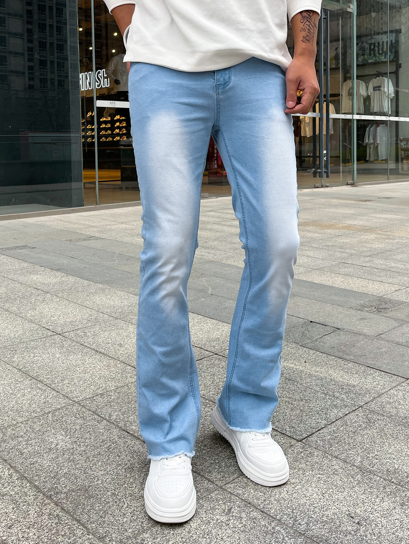 하이 퀄리티 유럽과 미국 남성의 신축성있는 타이트한 작은 뿔 청바지 대외 무역 독립 역 진디 3 색 폭발스토어 가기