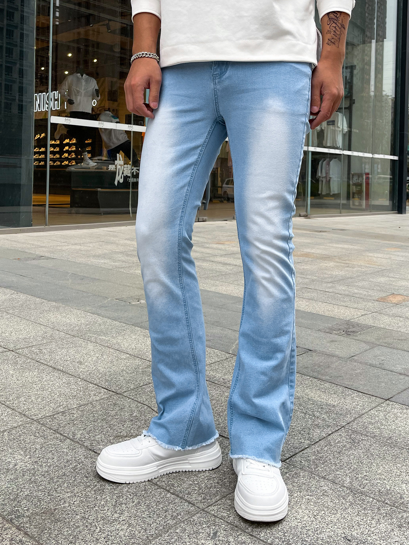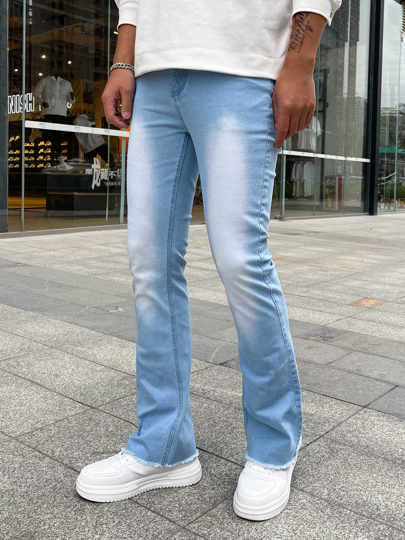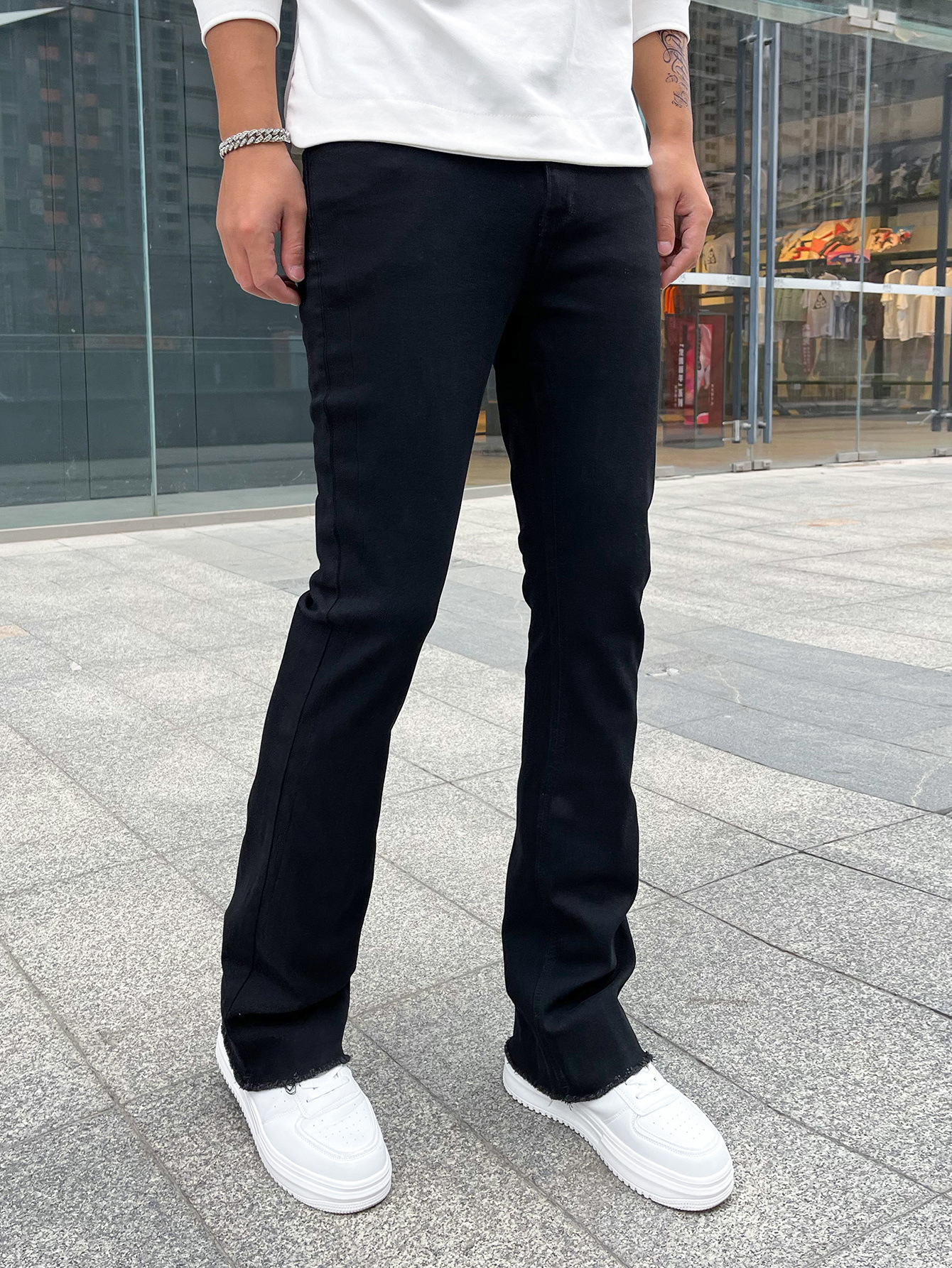 하이 퀄리티 유럽과 미국 남성의 신축성있는 타이트한 작은 뿔 청바지 대외 무역 독립 역 진디 3 색 폭발스토어 가기
