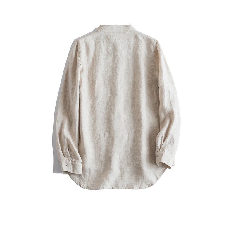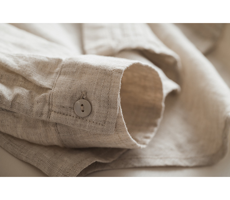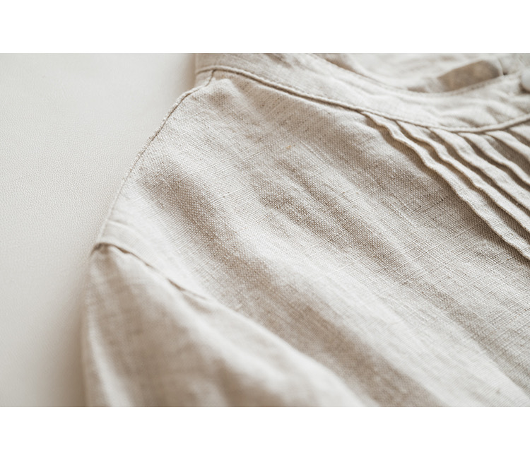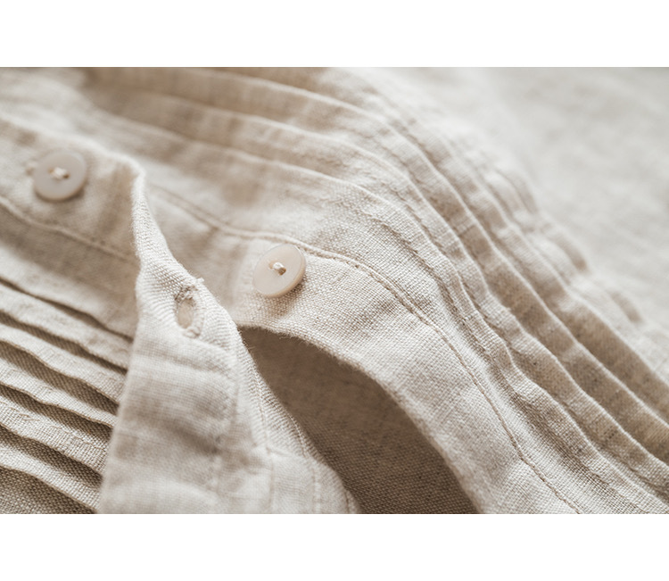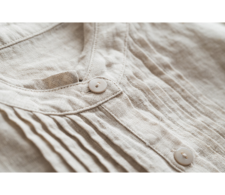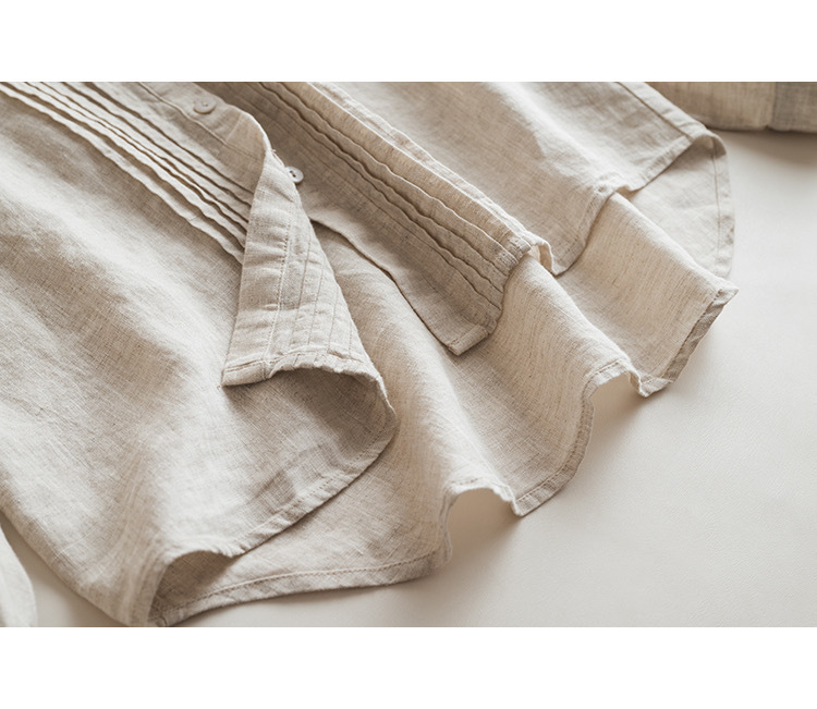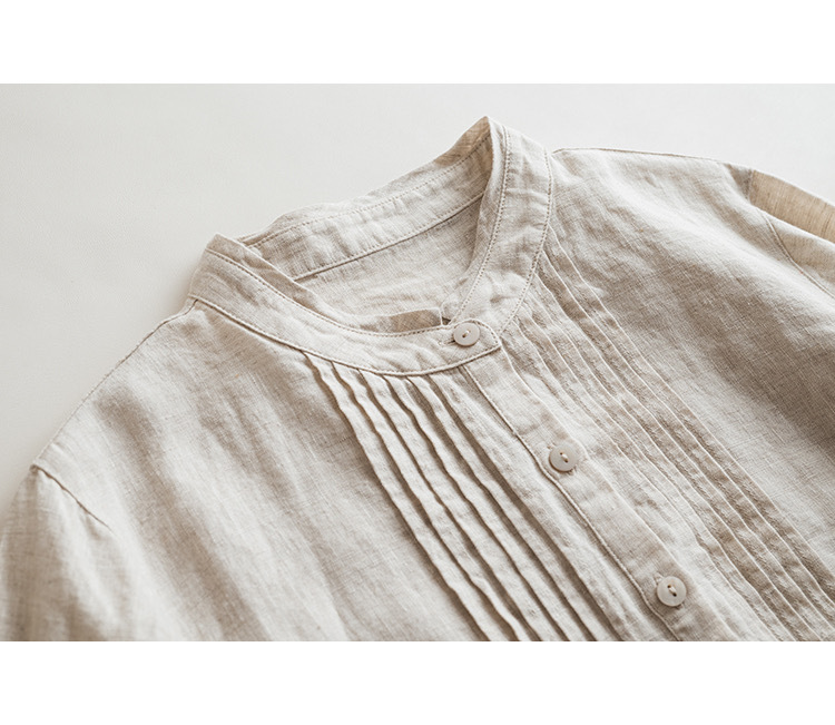 여성을위한 주름 전선과 미들 리넨 칼라 긴팔 캐주얼 예술적 셔츠로 하루 동안 간단한 통근