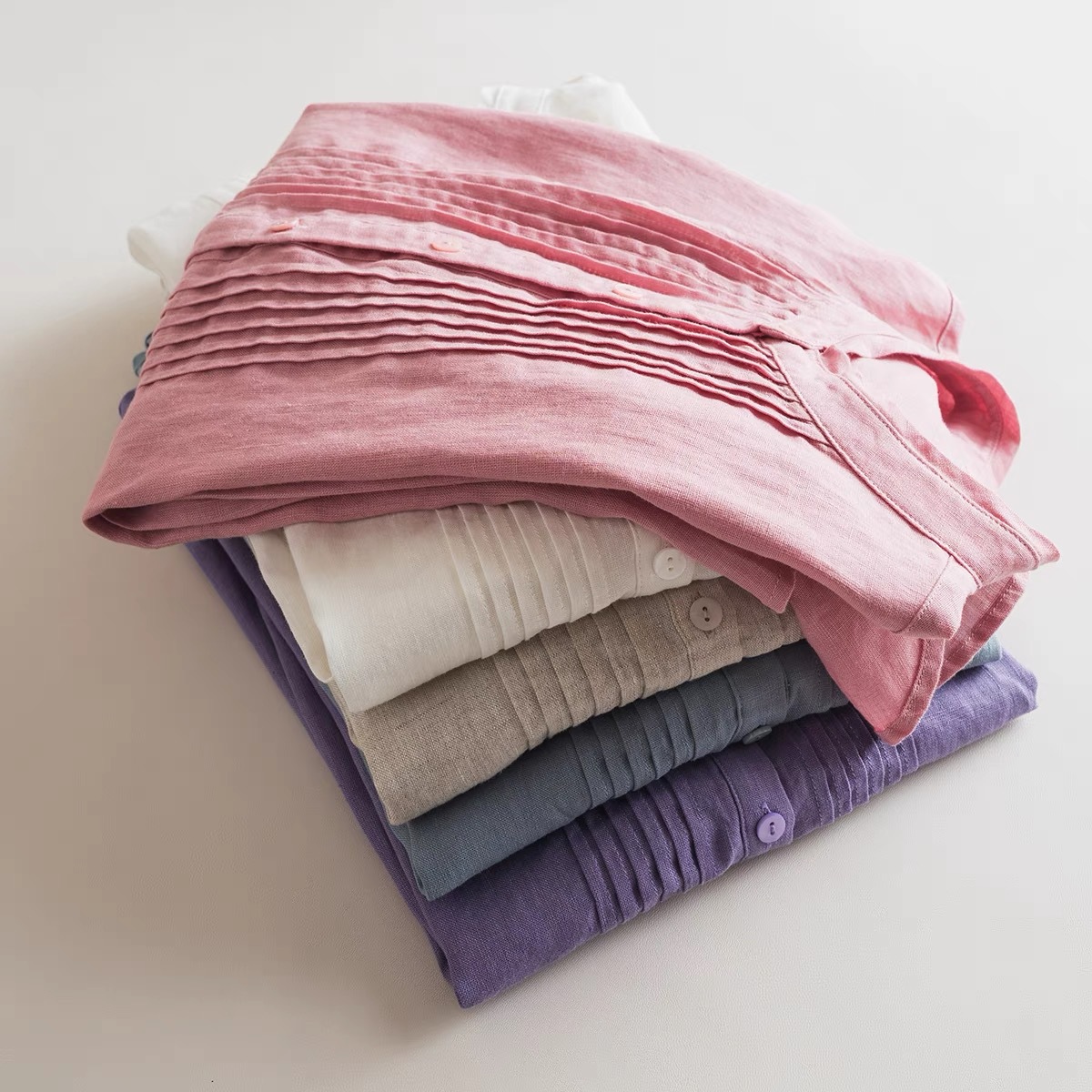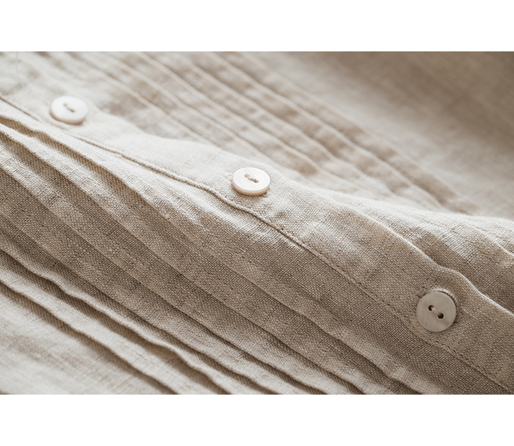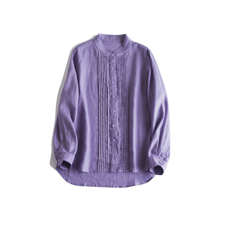 여성을위한 주름 전선과 미들 리넨 칼라 긴팔 캐주얼 예술적 셔츠로 하루 동안 간단한 통근스토어 가기