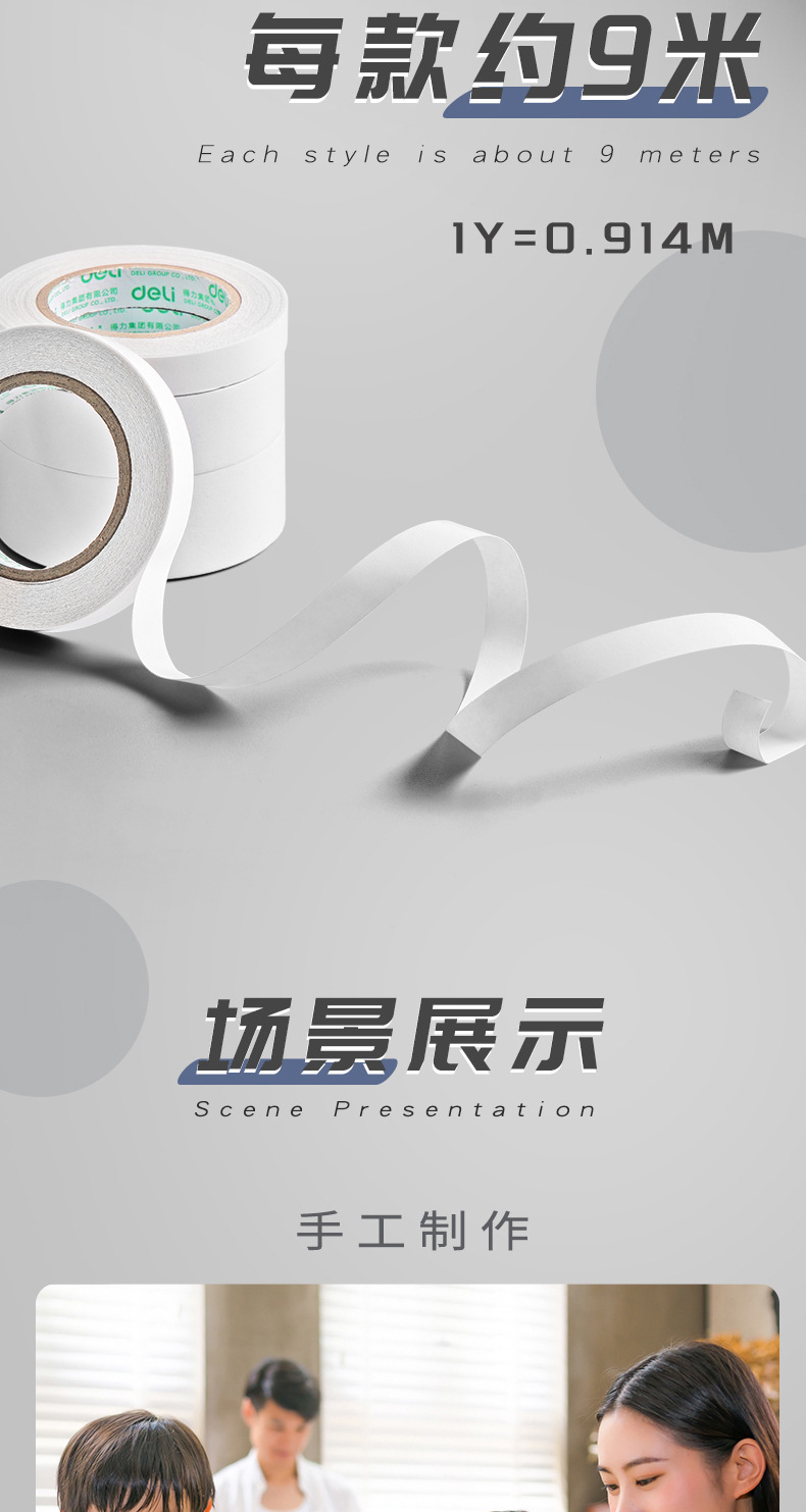 델리 양면 접착 높은 점도 작은 롤 핵심 학생 수제 투명 코튼 테이프 어린이 양면 접착 도매