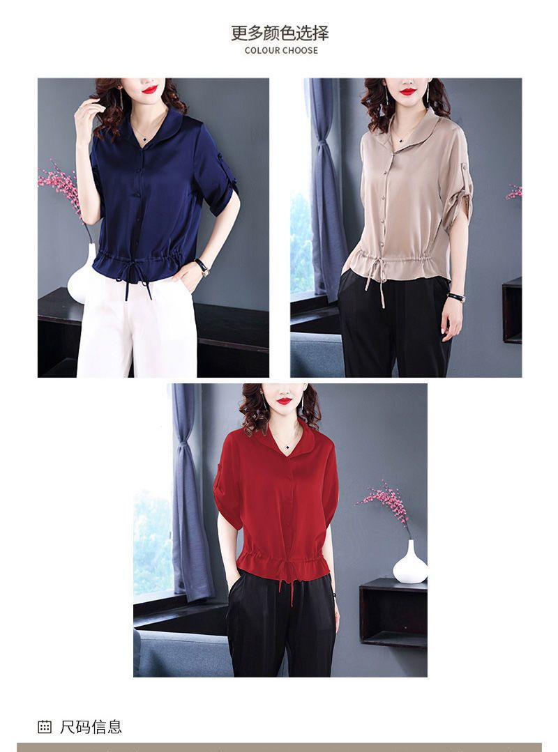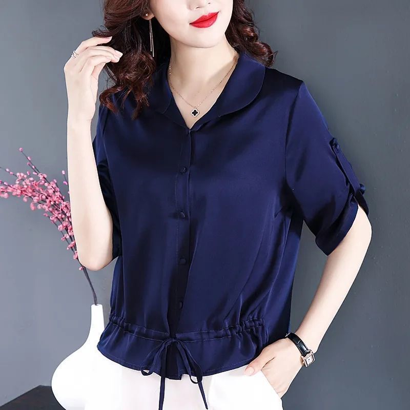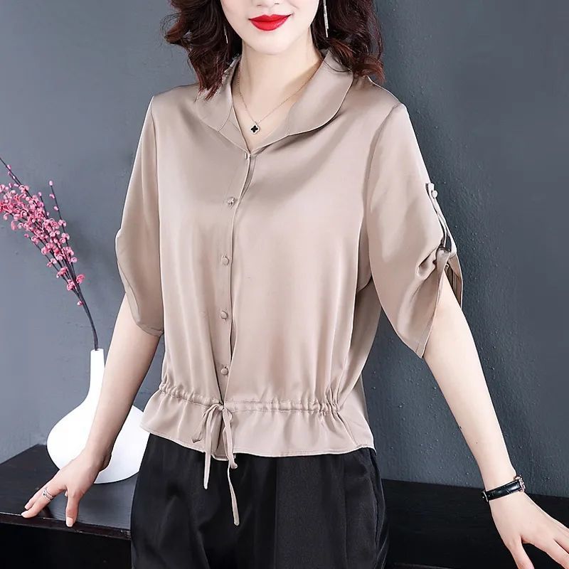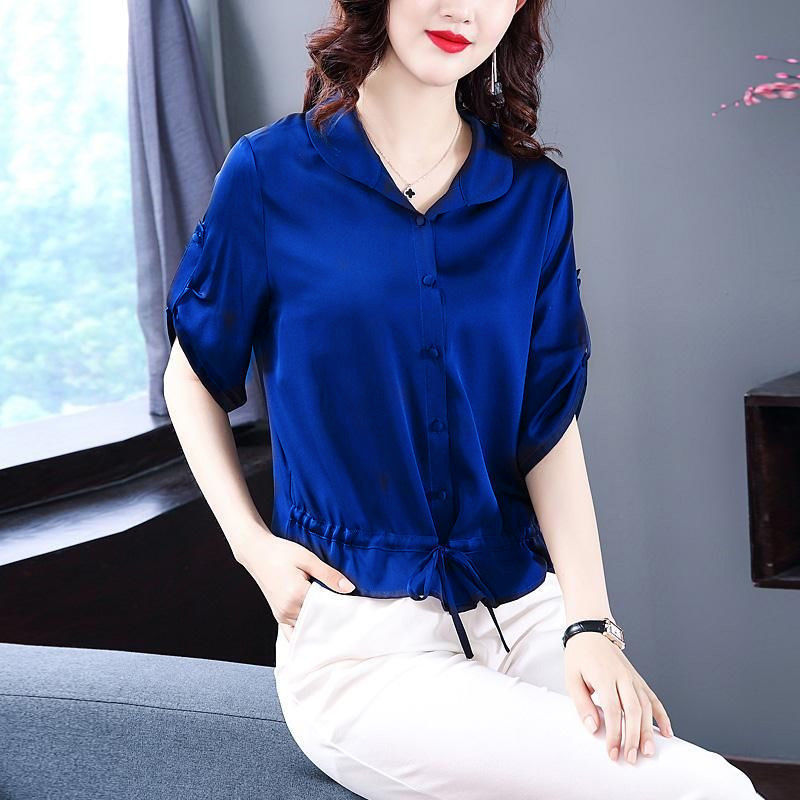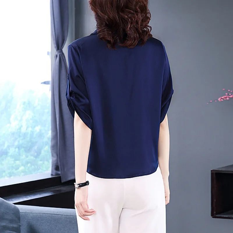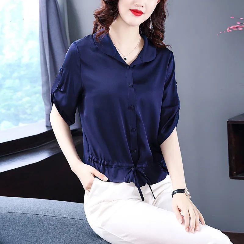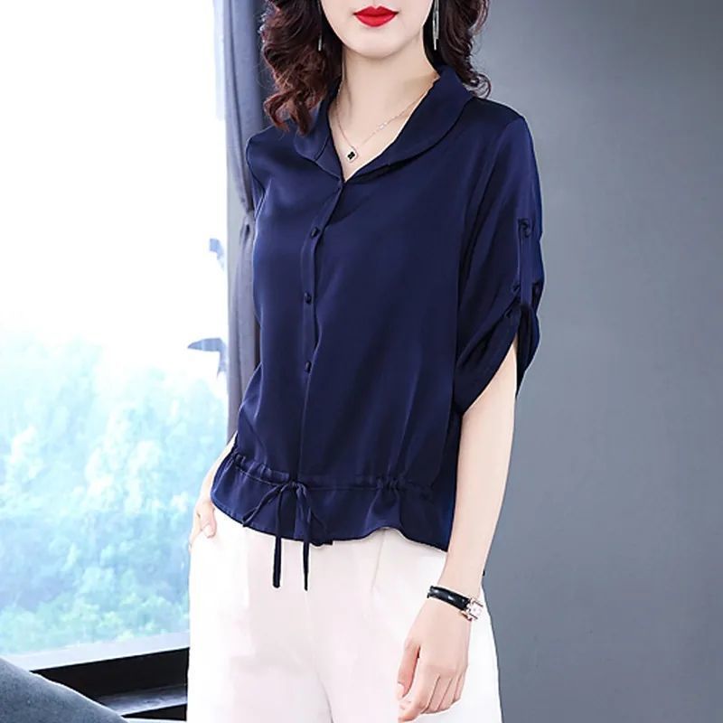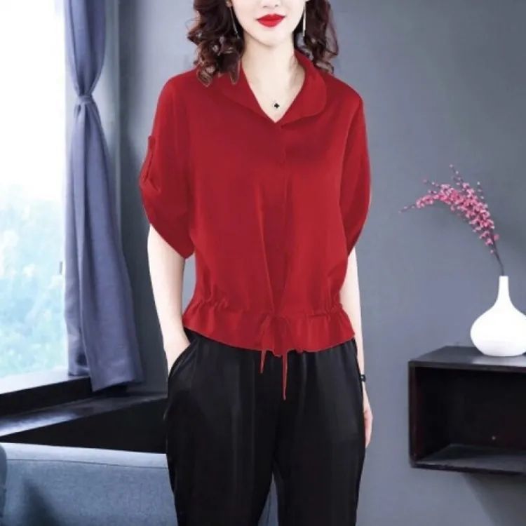 쉬폰 2024 셔츠 여성용 반팔 한국 스타일 여름 새로운 우아한 어머니 느슨한 슬리밍 플러스 사이즈 유행 탑
