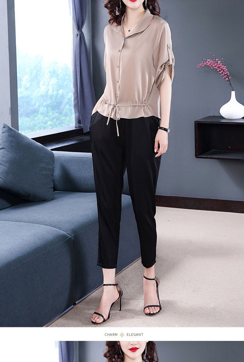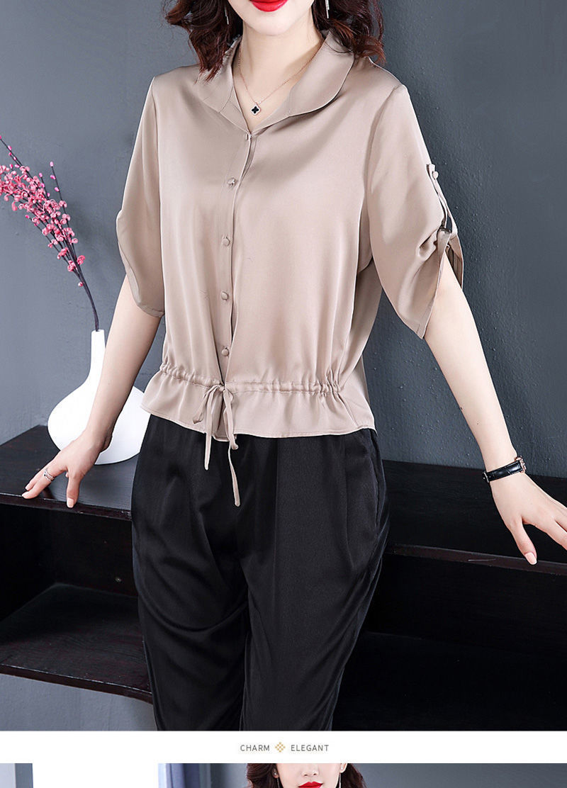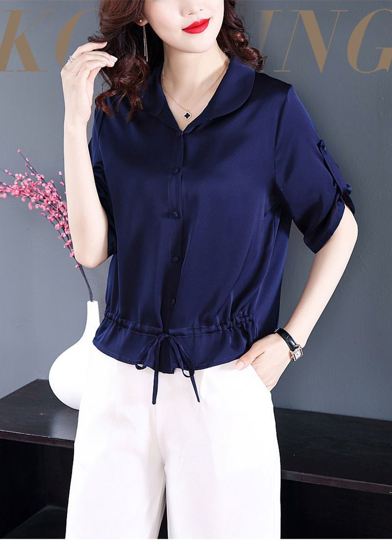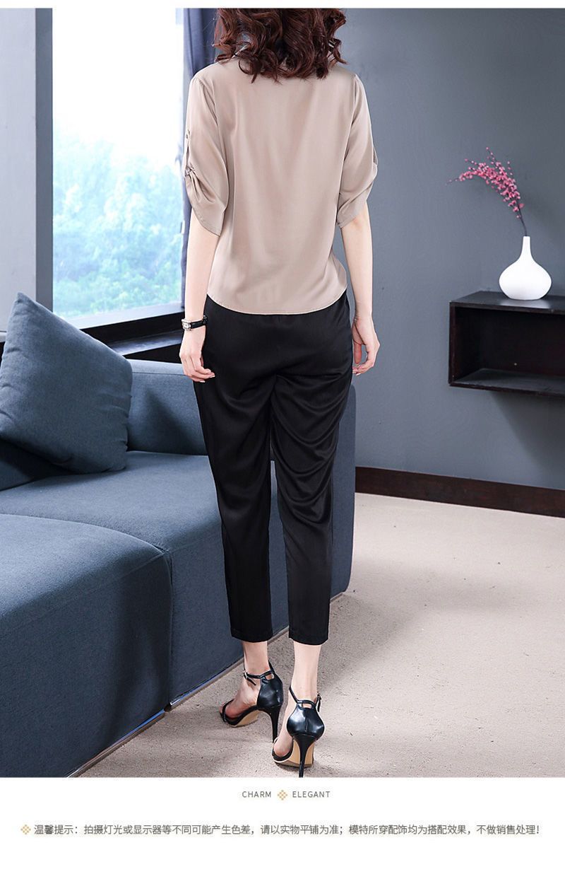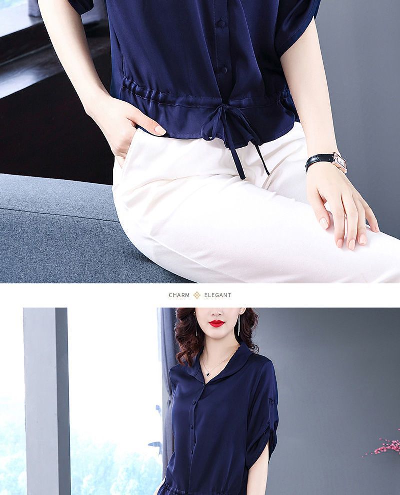 쉬폰 2024 셔츠 여성용 반팔 한국 스타일 여름 새로운 우아한 어머니 느슨한 슬리밍 플러스 사이즈 유행 탑
