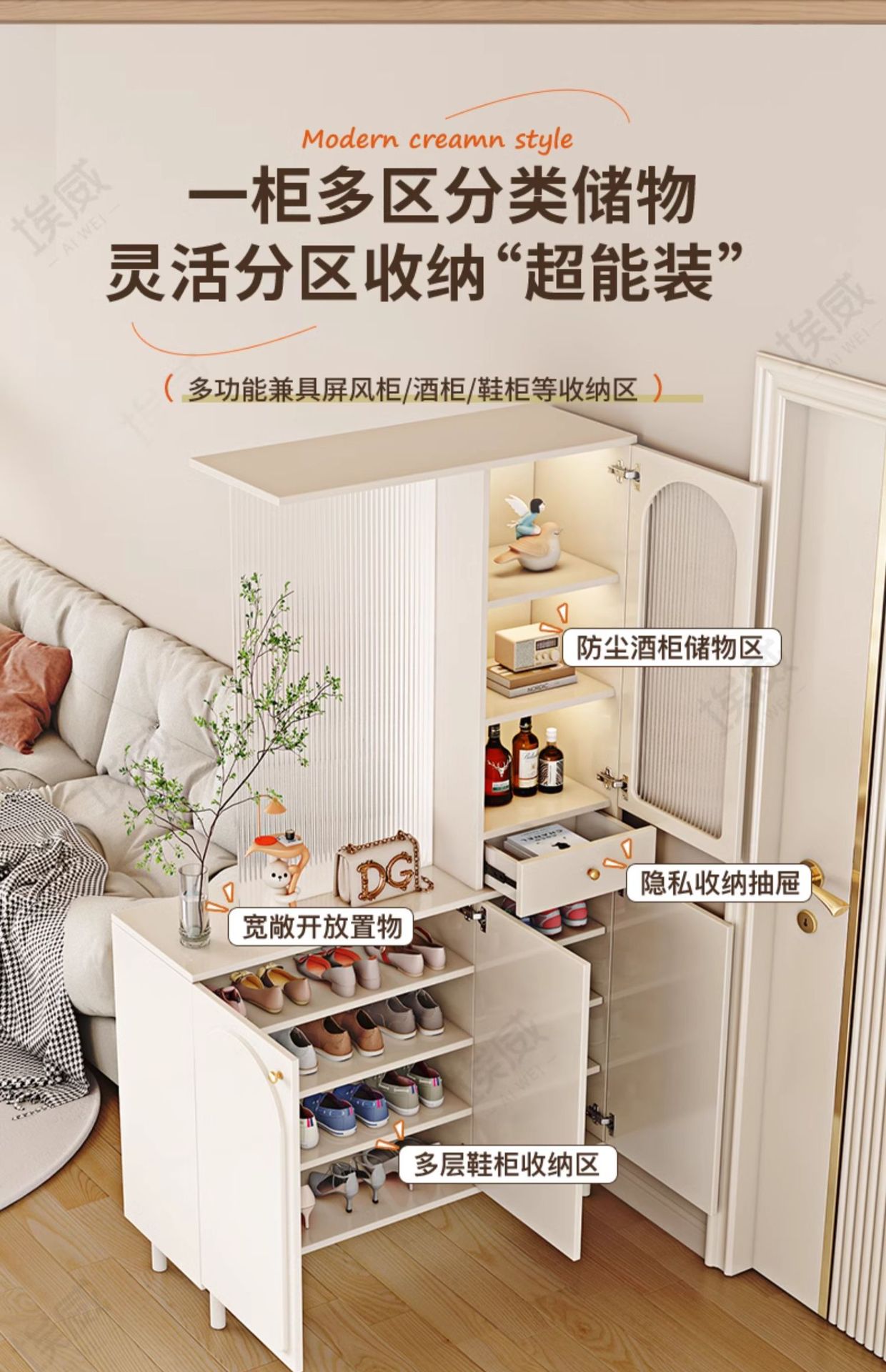 입구 캐비닛 거실 높은 와인 캐비닛 스크린 통합 창홍 유리 신발 캐비닛 크림 스타일 현대 입구 파티션 캐비닛스토어 가기