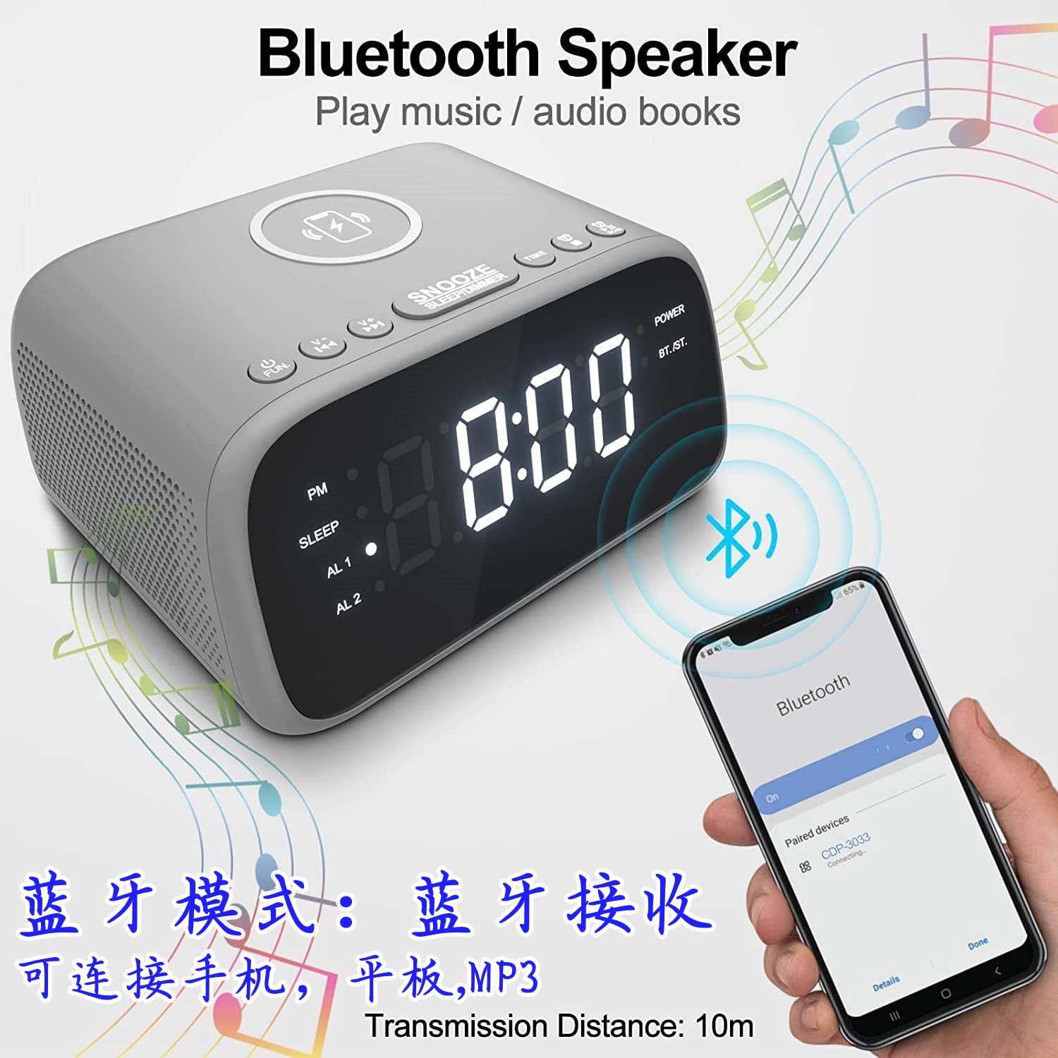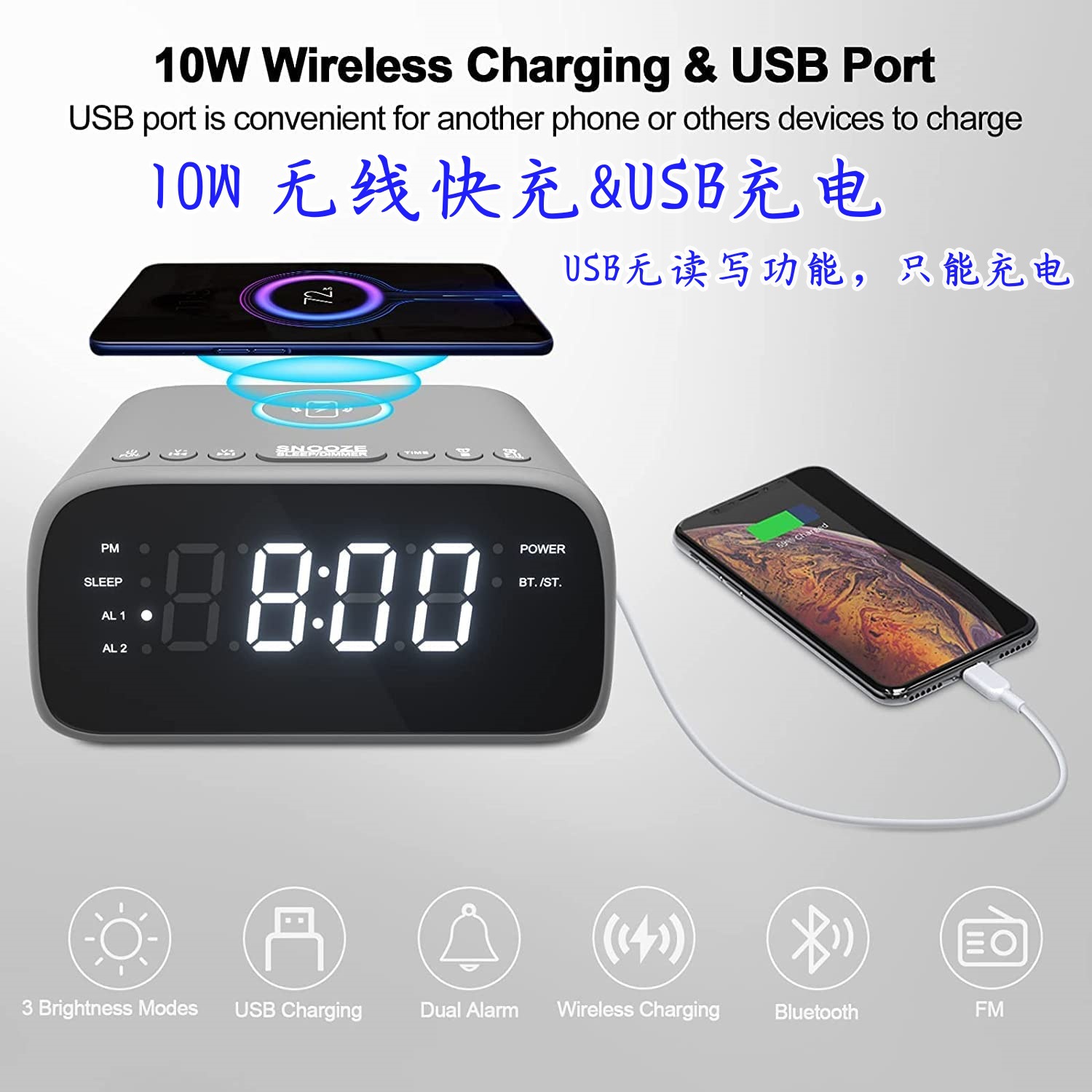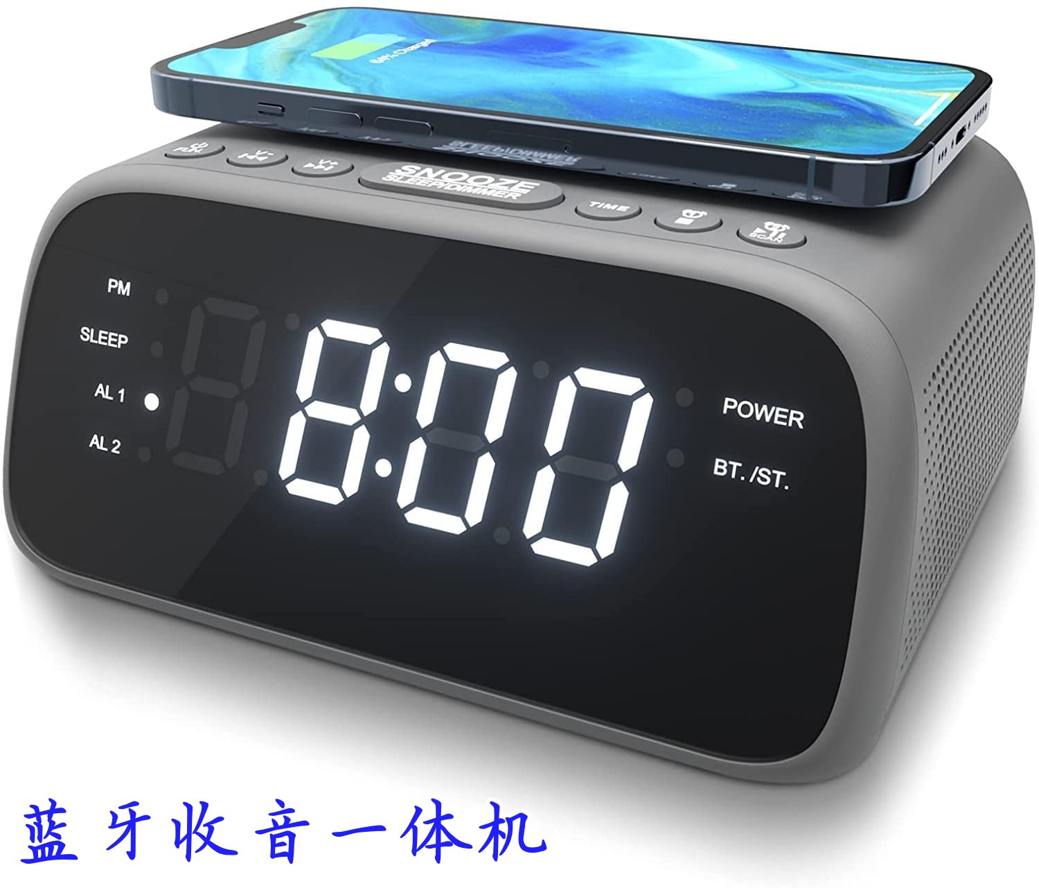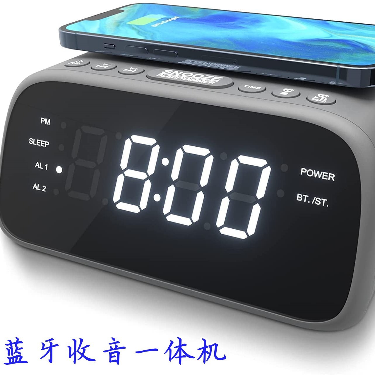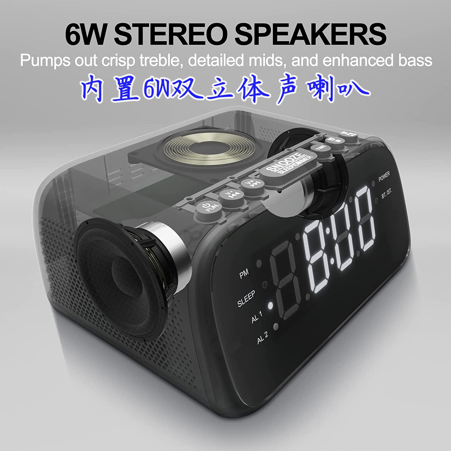 블루투스 라디오 통합 기계, 듀얼 스테레오 스피커, 무선 슈퍼 빠른 충전, 듀얼 알람 시계