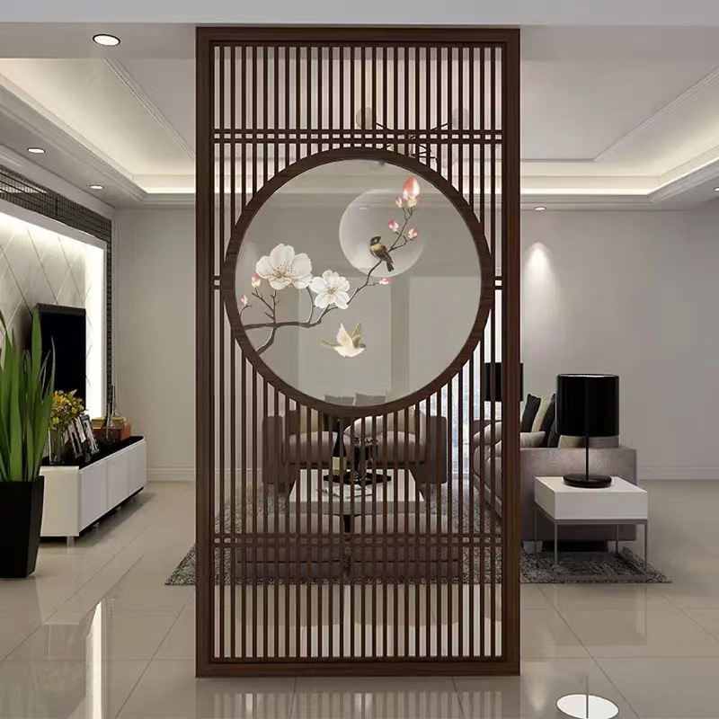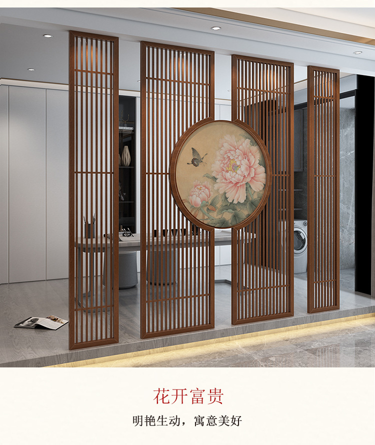 새로운 중국 스타일 화면 파티션 거실 솔리드 우드 그릴 현대 간단한 자수 티 룸 입구스토어 가기