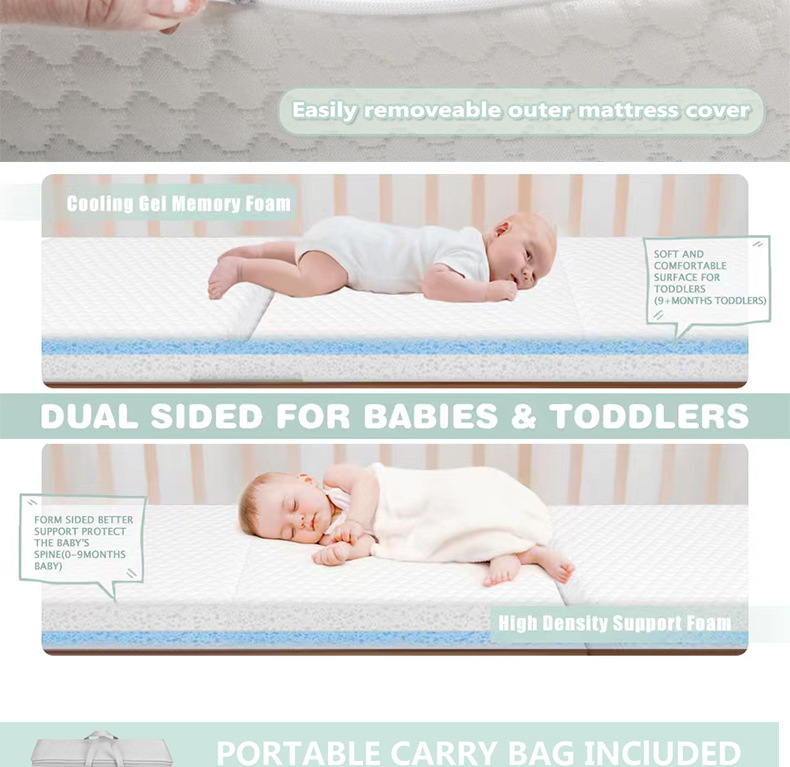 세 접는 매트리스 아마존 새로운 메모리 폼 아기 침대 쿠션 휴대용 여행 침대 매트리스