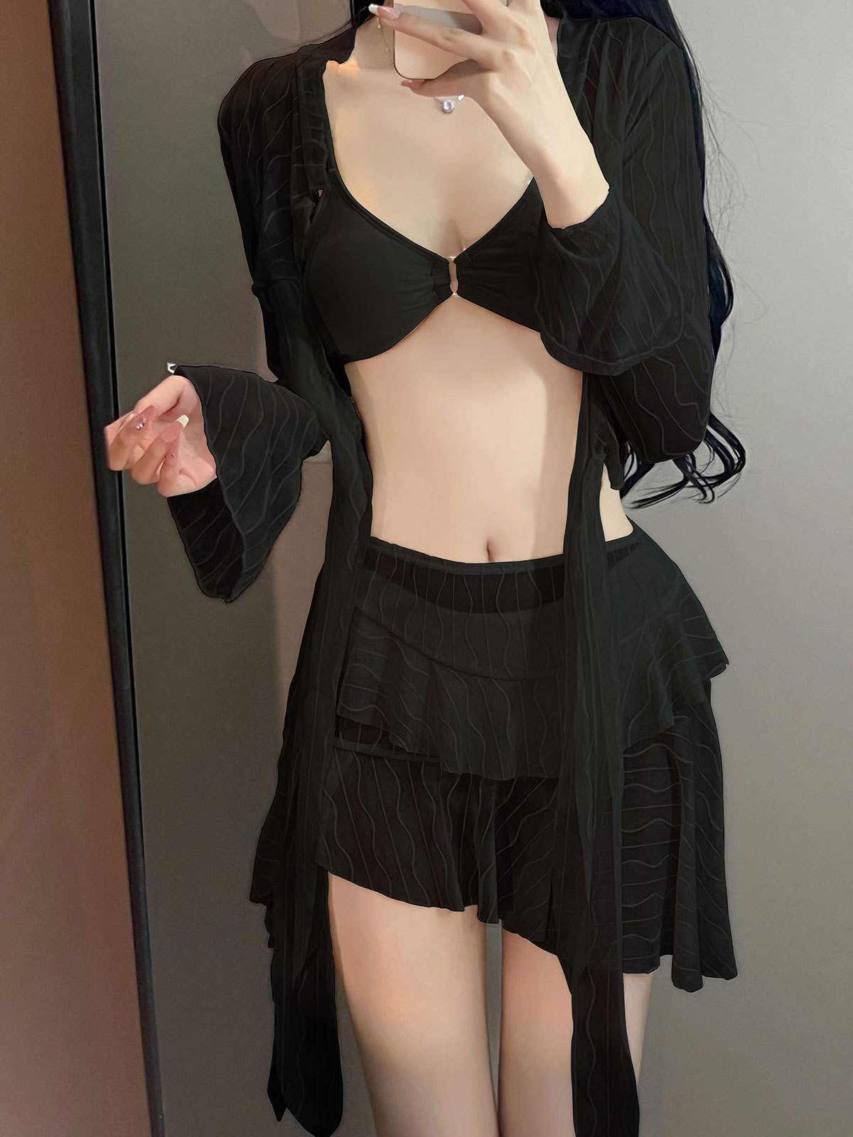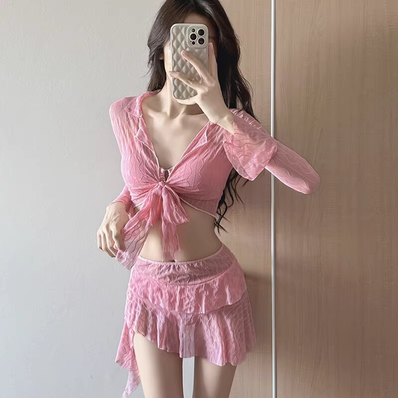 허런 퓨어 스파이스 걸 비키니 수영복 여성 4 피스 세트 스플릿 긴소매 보수 스커트 슬림핏 온천 수영복