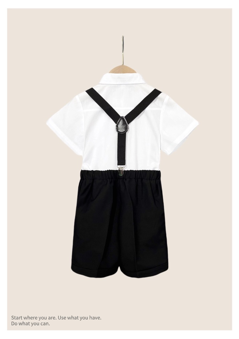 • 검은 바지 (흰색 버튼 셔츠 반바지 백 스트랩 나비 넥타이)