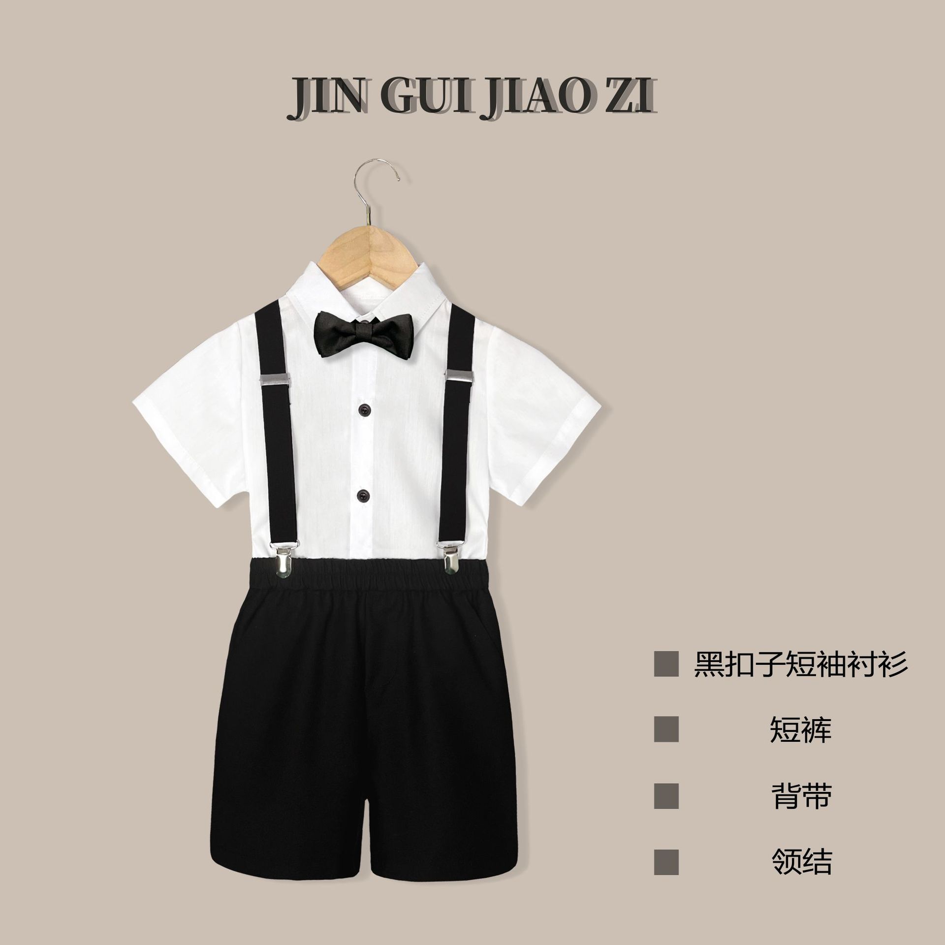 • 블랙 바지 (블랙 버튼 셔츠 반바지 백 스트랩 나비 넥타이)