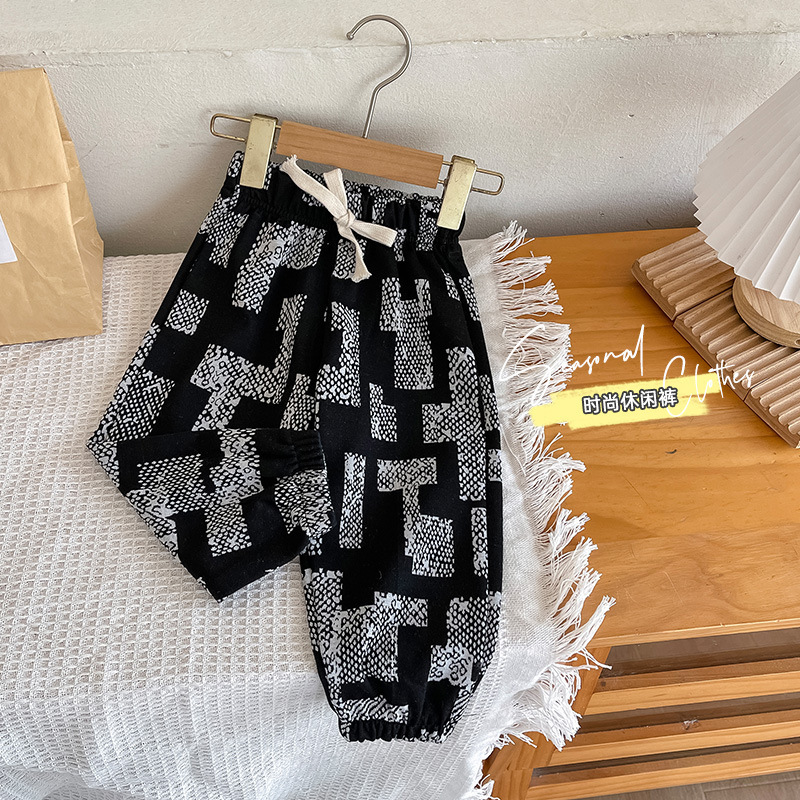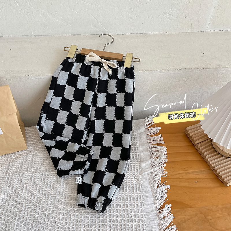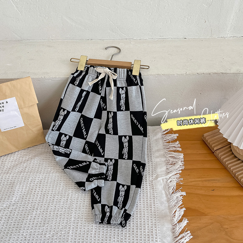 어린이 봄 흑백 바지 아동복 스포츠 바지 소년 레깅스 어린이 아기 캐주얼 레깅스 도매스토어 가기