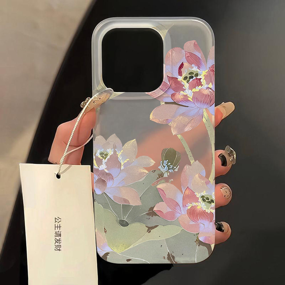 신형 중국풍 연꽃 디자인 아이폰17프로맥스 애플16 무광 휴대폰 케이스 15/14 방수 13 소프트 케이스 x스토어 가기