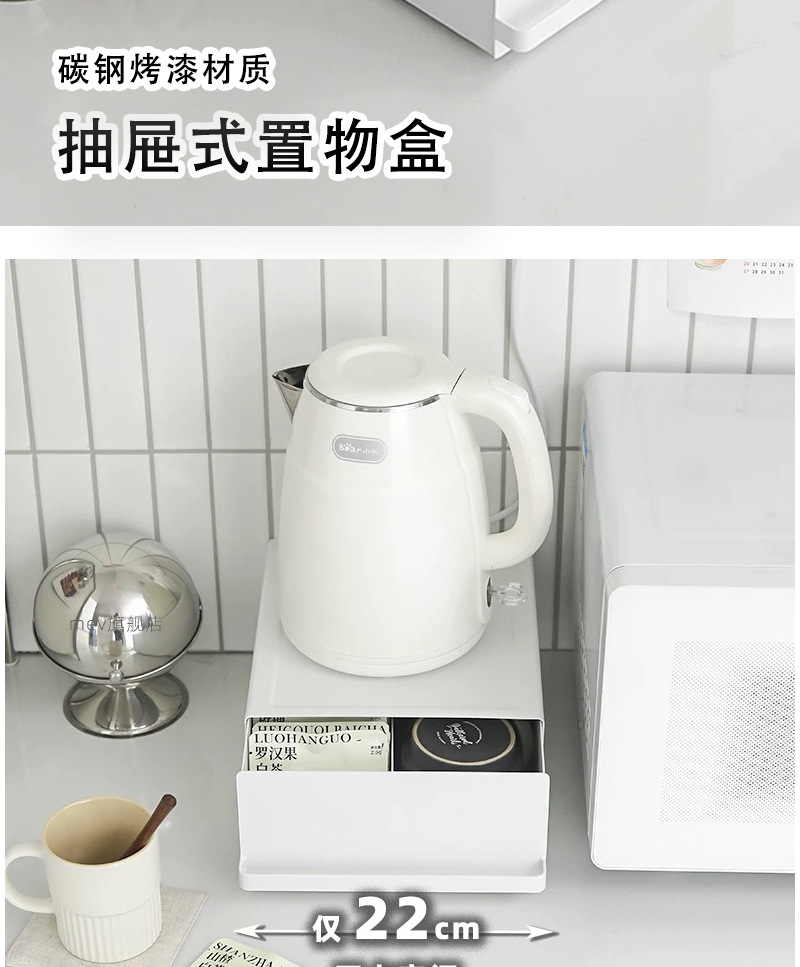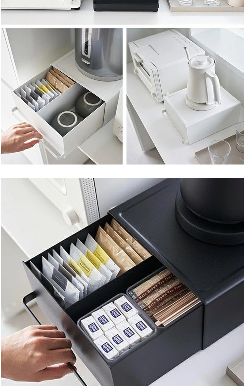 서랍 콤보 저장 차 가방 물 컵 철 저장 랙을 가진 부엌 커피 냄비 주전자 저장 랙