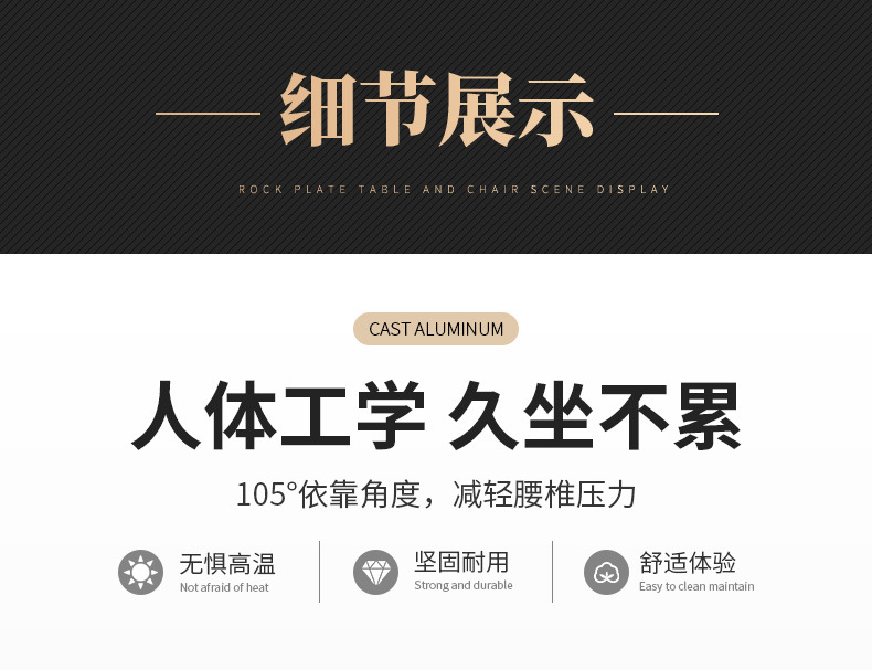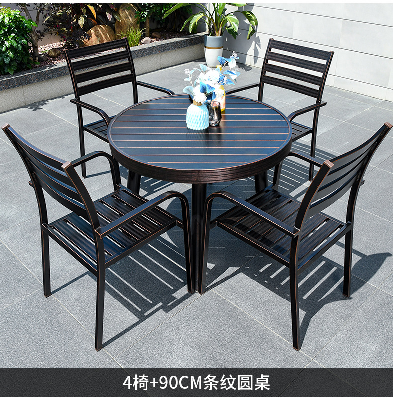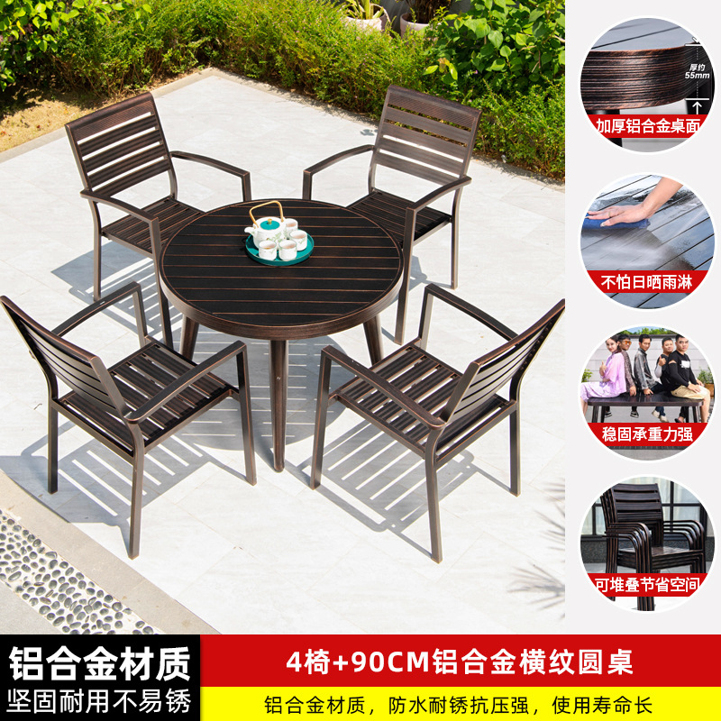 • 4 풀 알루미늄 가로 줄무늬 직선 안락 의자 90CM 원형 테이블