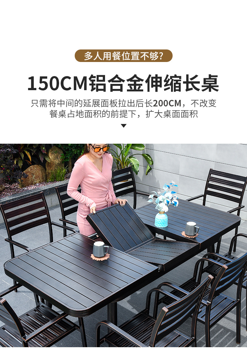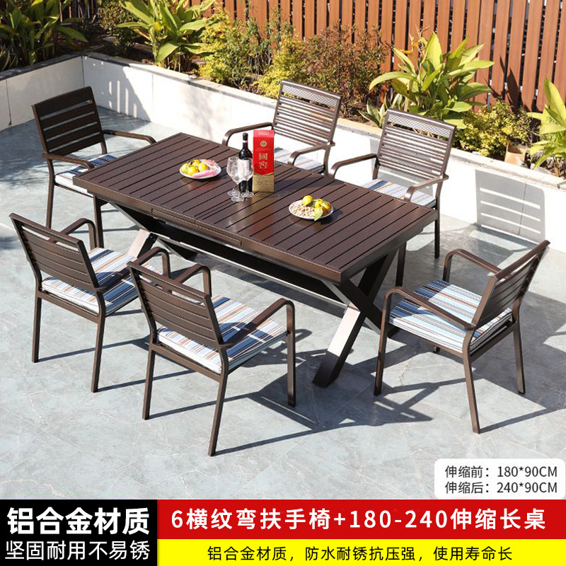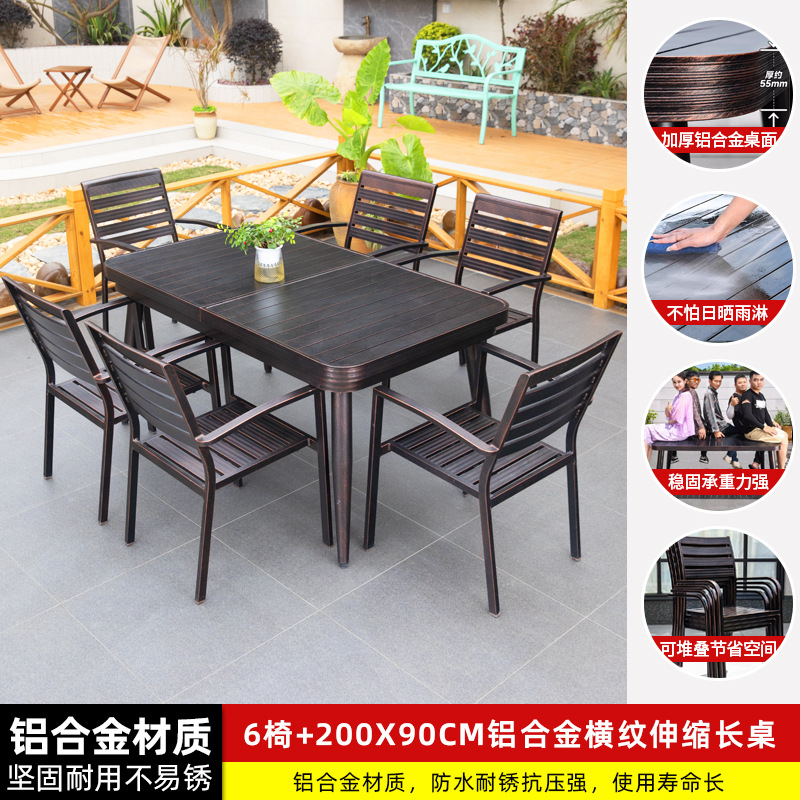 • 6 개의 모든 알루미늄 가로 줄무늬 직선 안락 의자 150-200 텔레스코픽 긴 테이블