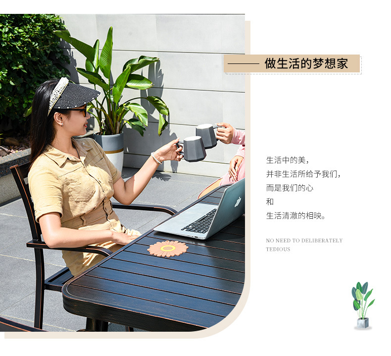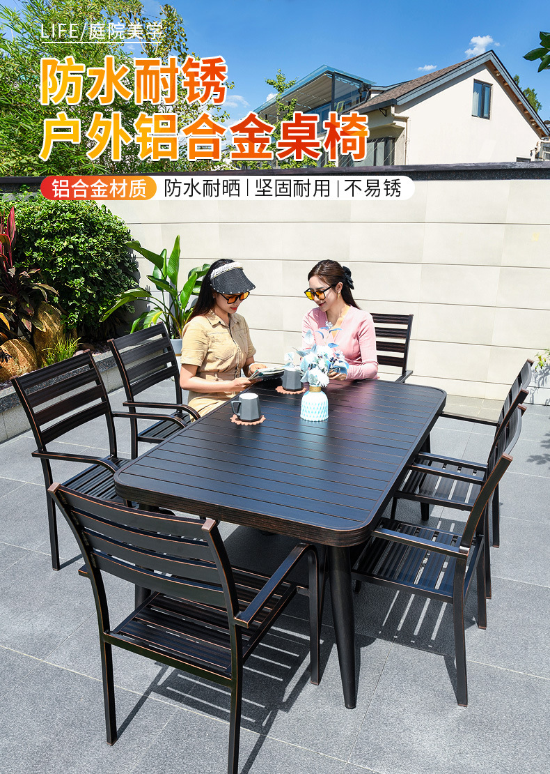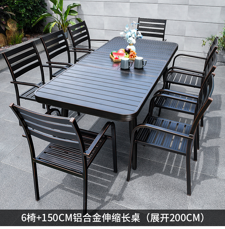 야외 안뜰 블랙 테이블과 의자 빌라 야외 발코니 레저 조합 테이블과 의자 정원 모든 알루미늄 합금 방수 선 스크린