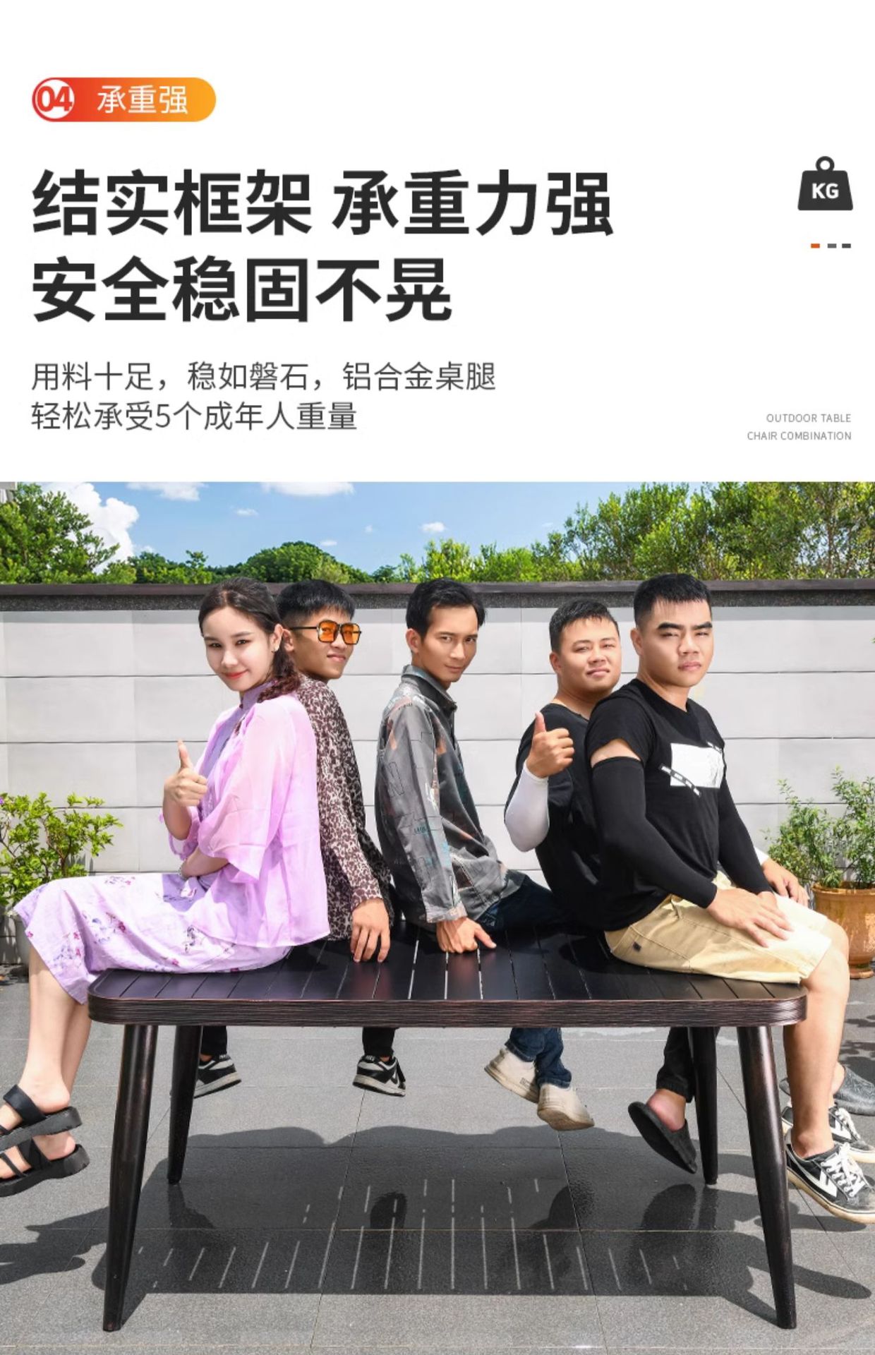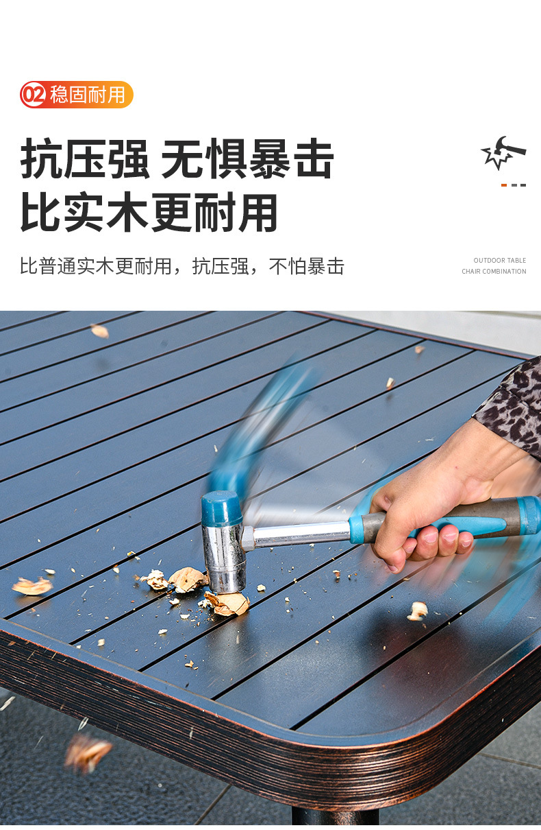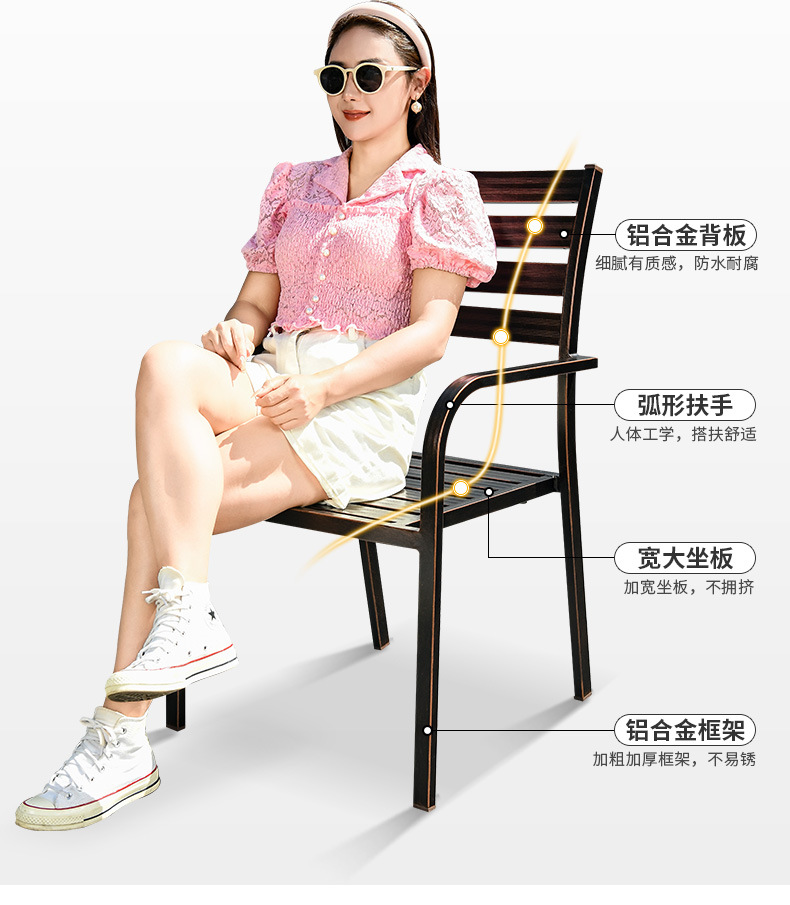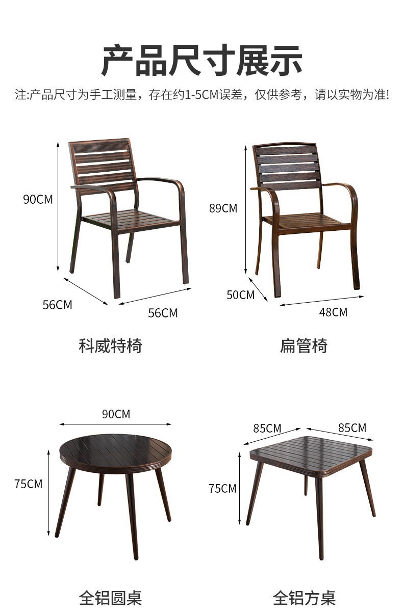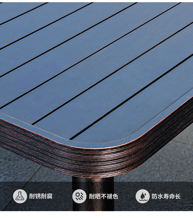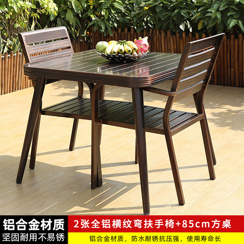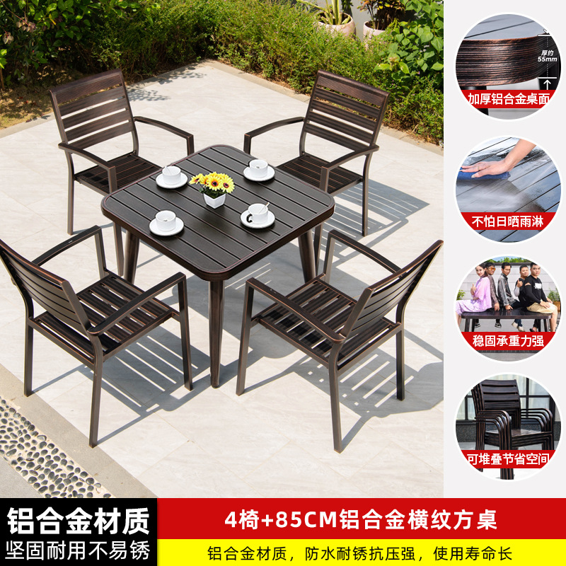 • 4 모든 알루미늄 가로 줄무늬 직선 안락 의자 85CM 사각형 테이블