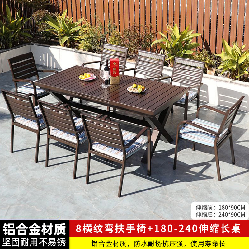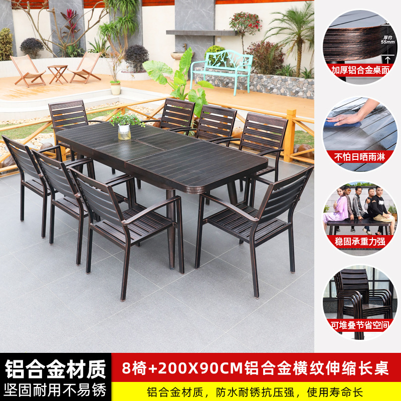 • 8 개의 모든 알루미늄 가로 줄무늬 직선 안락 의자 150-200CM 망원경 긴 테이블