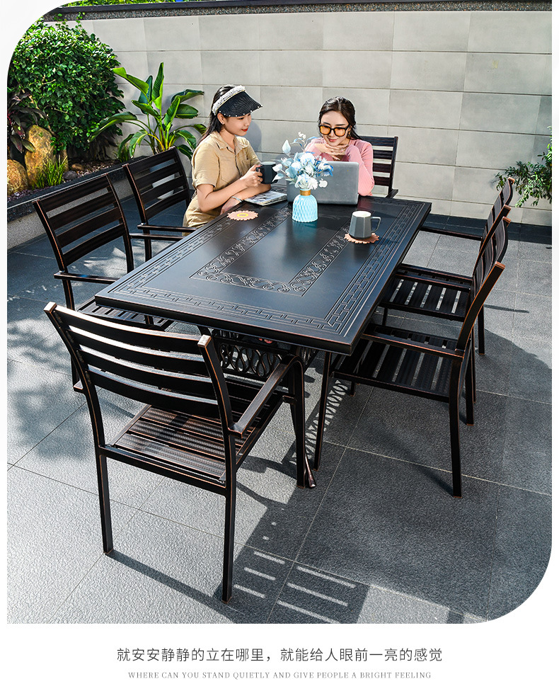 야외 안뜰 블랙 테이블과 의자 빌라 야외 발코니 레저 조합 테이블과 의자 정원 모든 알루미늄 합금 방수 선 스크린스토어 가기