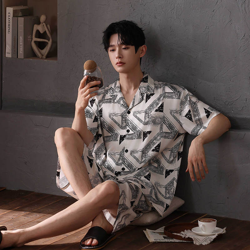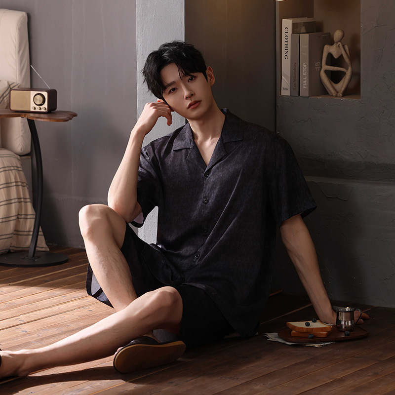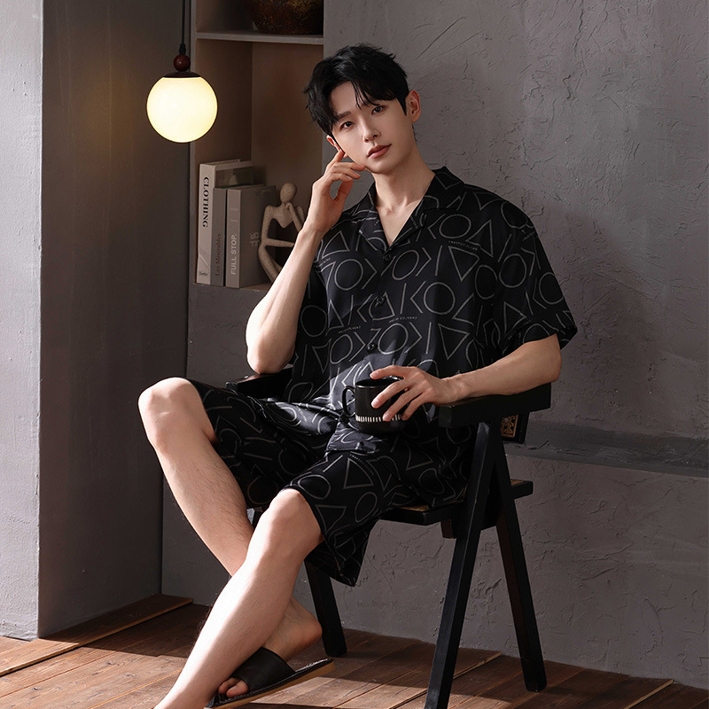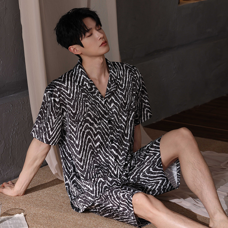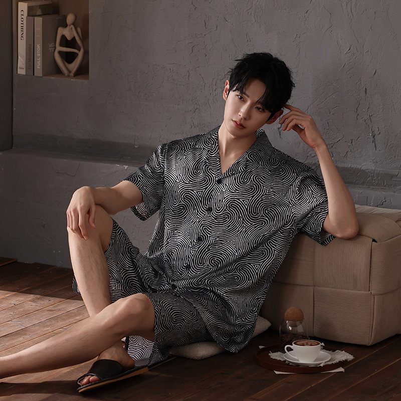 청소년 얼음과 눈 실크 잠옷 남자 2025 여름 간단한 카디건 얇은 반팔 실크 홈웨어 세트스토어 가기