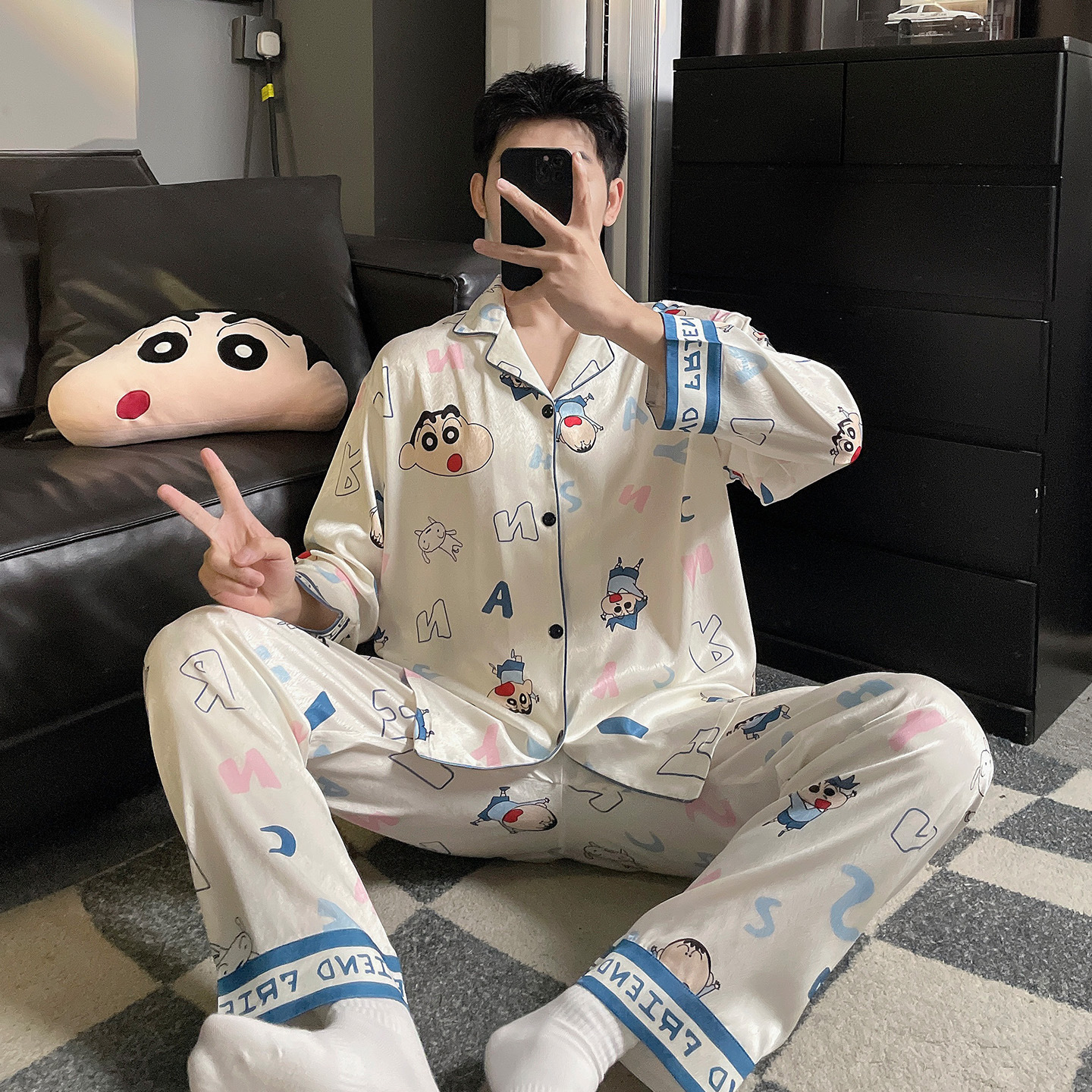 청소년 얼음과 눈 실크 잠옷 남자 2025 여름 간단한 카디건 얇은 반팔 실크 홈웨어 세트
