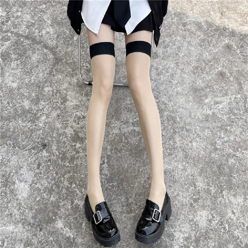섹시한 스트랩 원피스 양말 순수한 욕망 실크 양말 여성 하이 양말 큰 다리 양말 대비 색상 얇은 블랙 에지 스킨 엣지베이스 양말스토어 가기