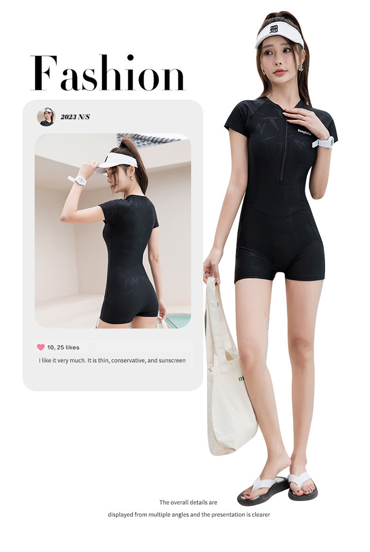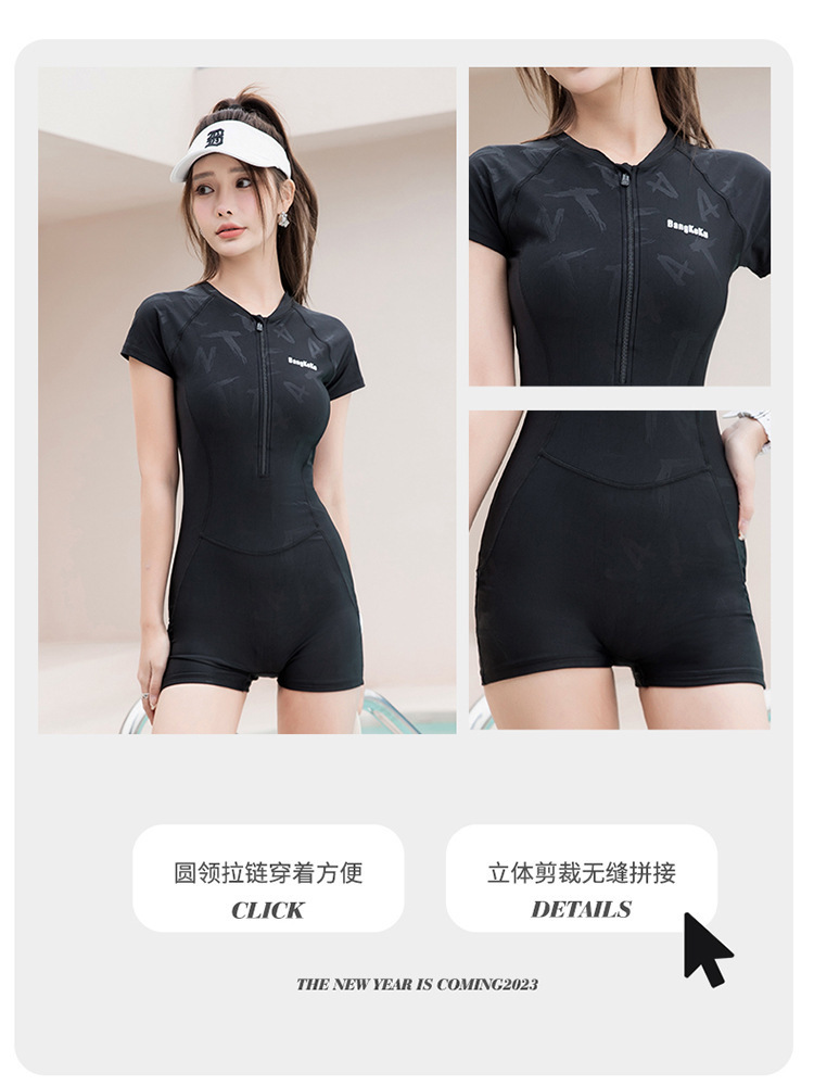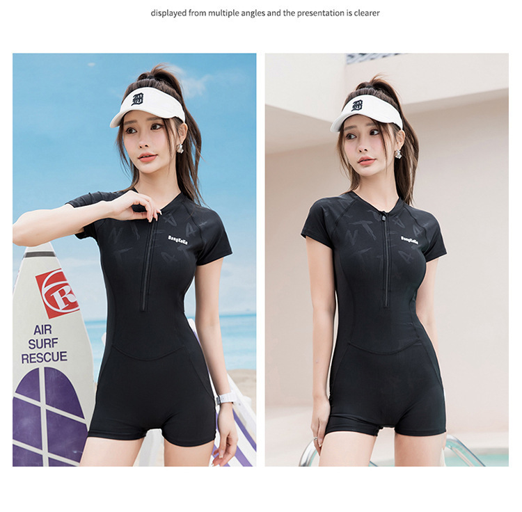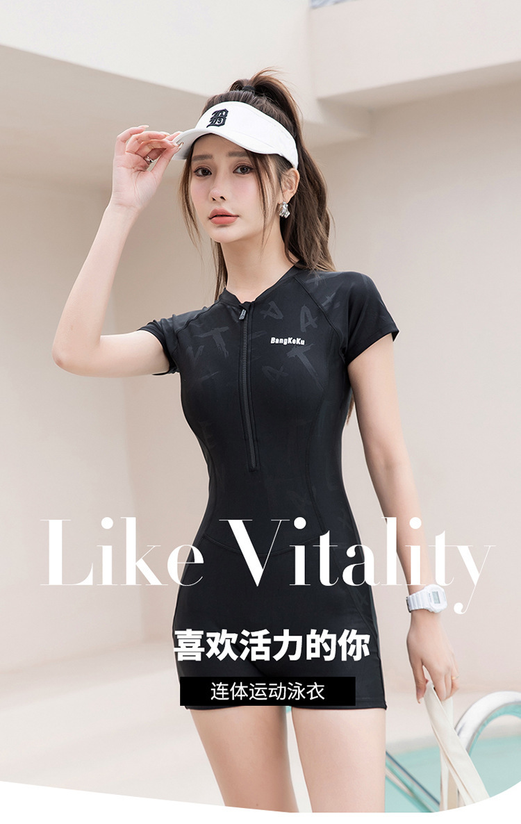 新款运动连体衣平角泳衣女士网红风紧身显瘦泡温泉训练游泳馆泳装