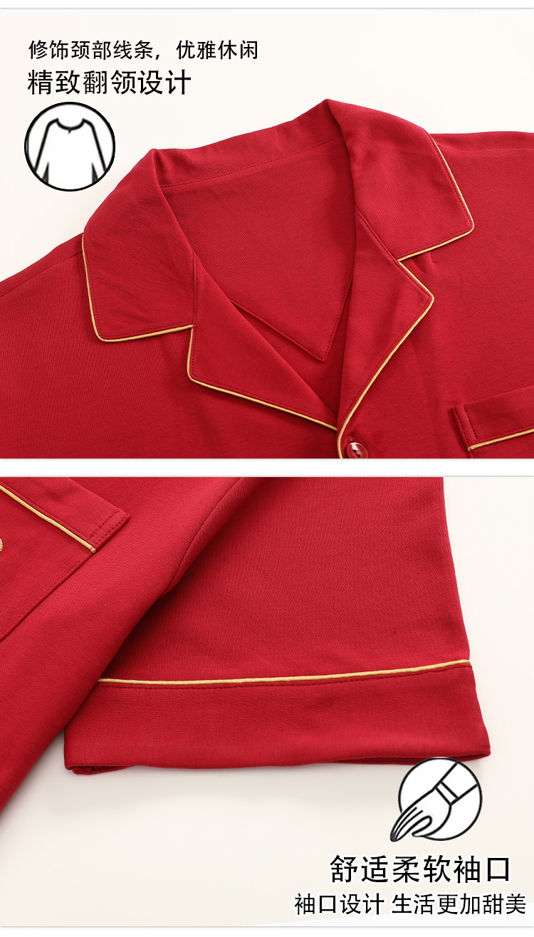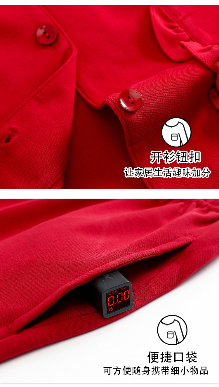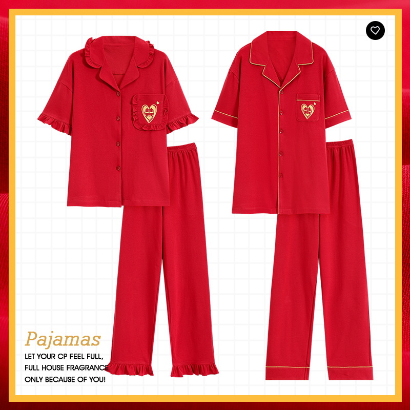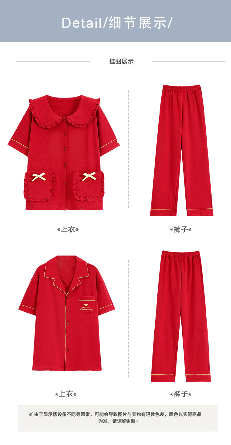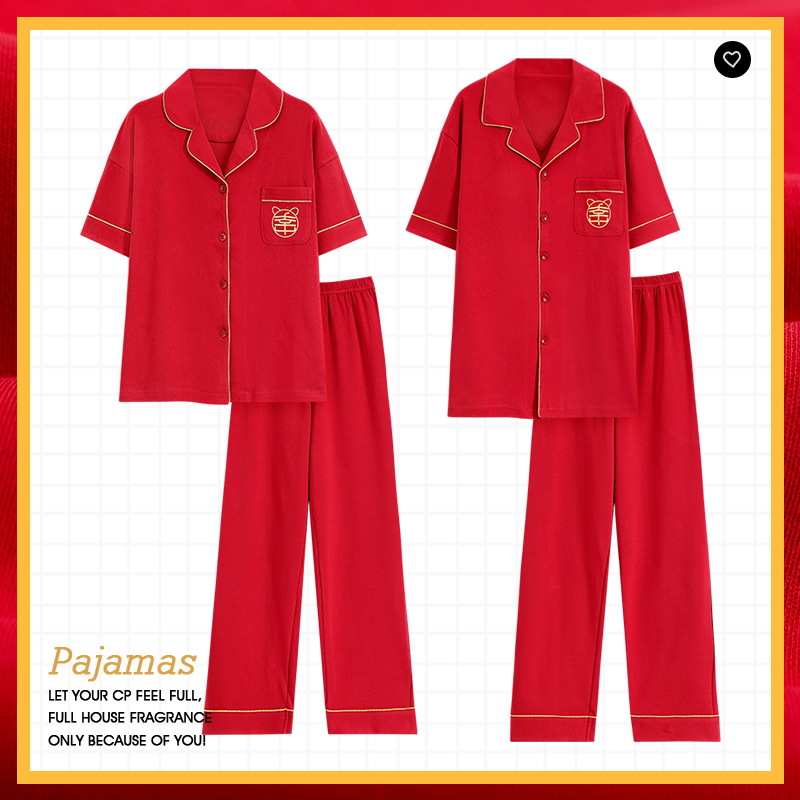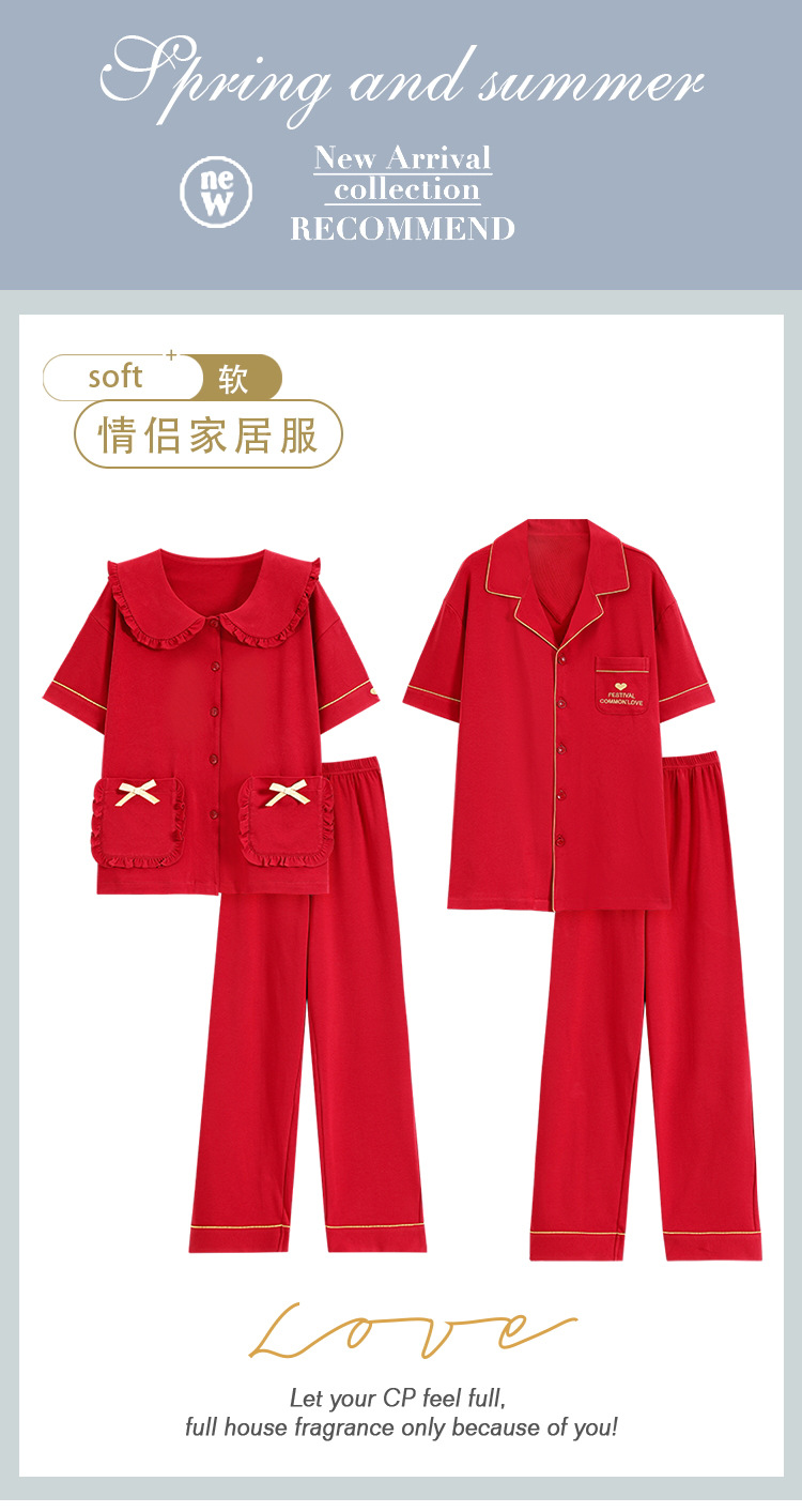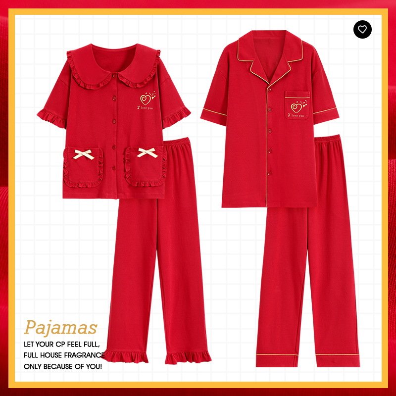 커플 파자마 여름 웨딩 빅 레드 코튼 카디건 반팔 바지 소년 소녀를위한 얇은 투피스 홈 옷스토어 가기