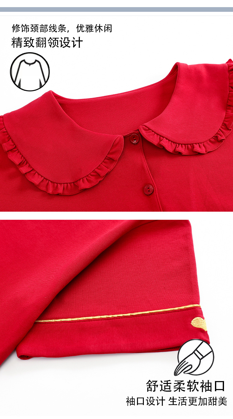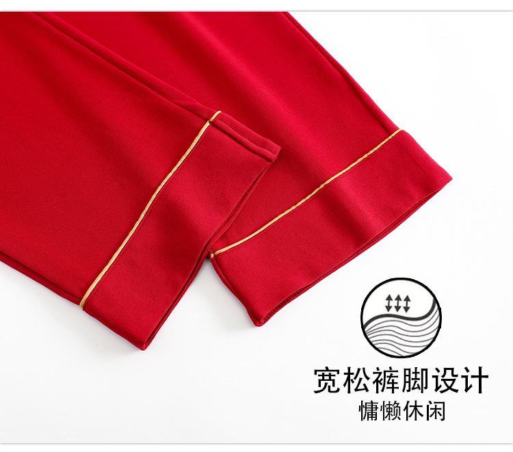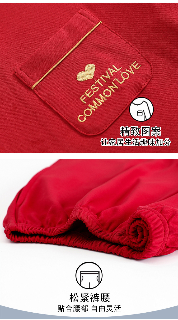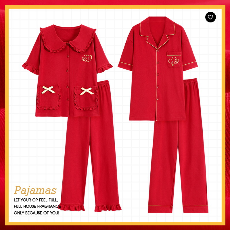 커플 파자마 여름 웨딩 빅 레드 코튼 카디건 반팔 바지 소년 소녀를위한 얇은 투피스 홈 옷