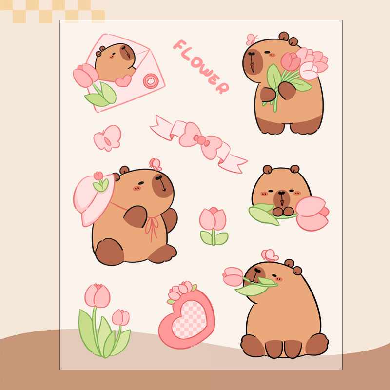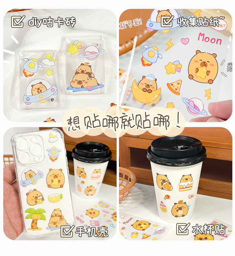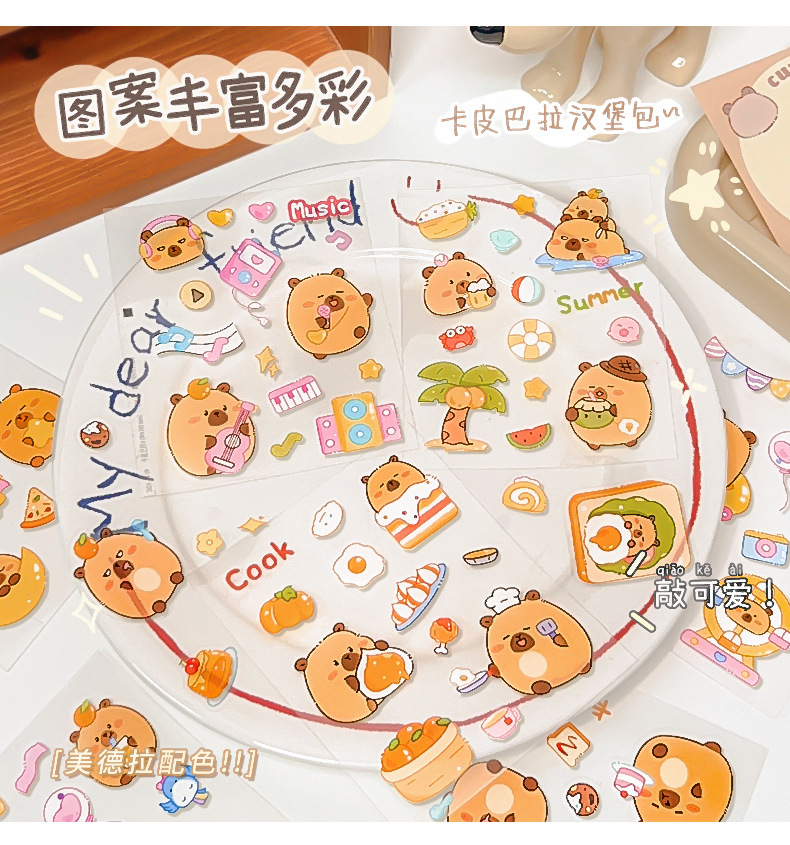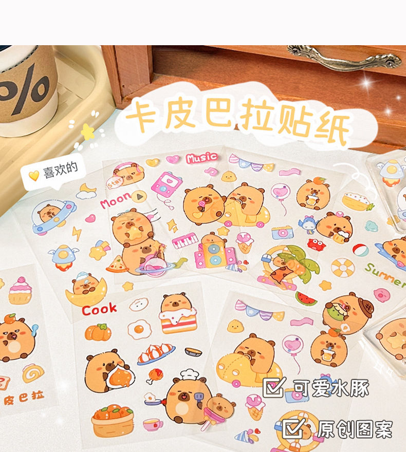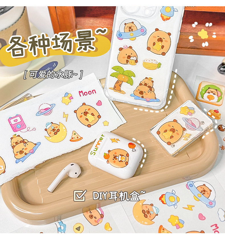 Kapibalakatong Capyfish 스티커 손 계정 스티커 어린이 여성 귀여운 DIY 스티커 애완 동물 스티커 물 컵 스티커