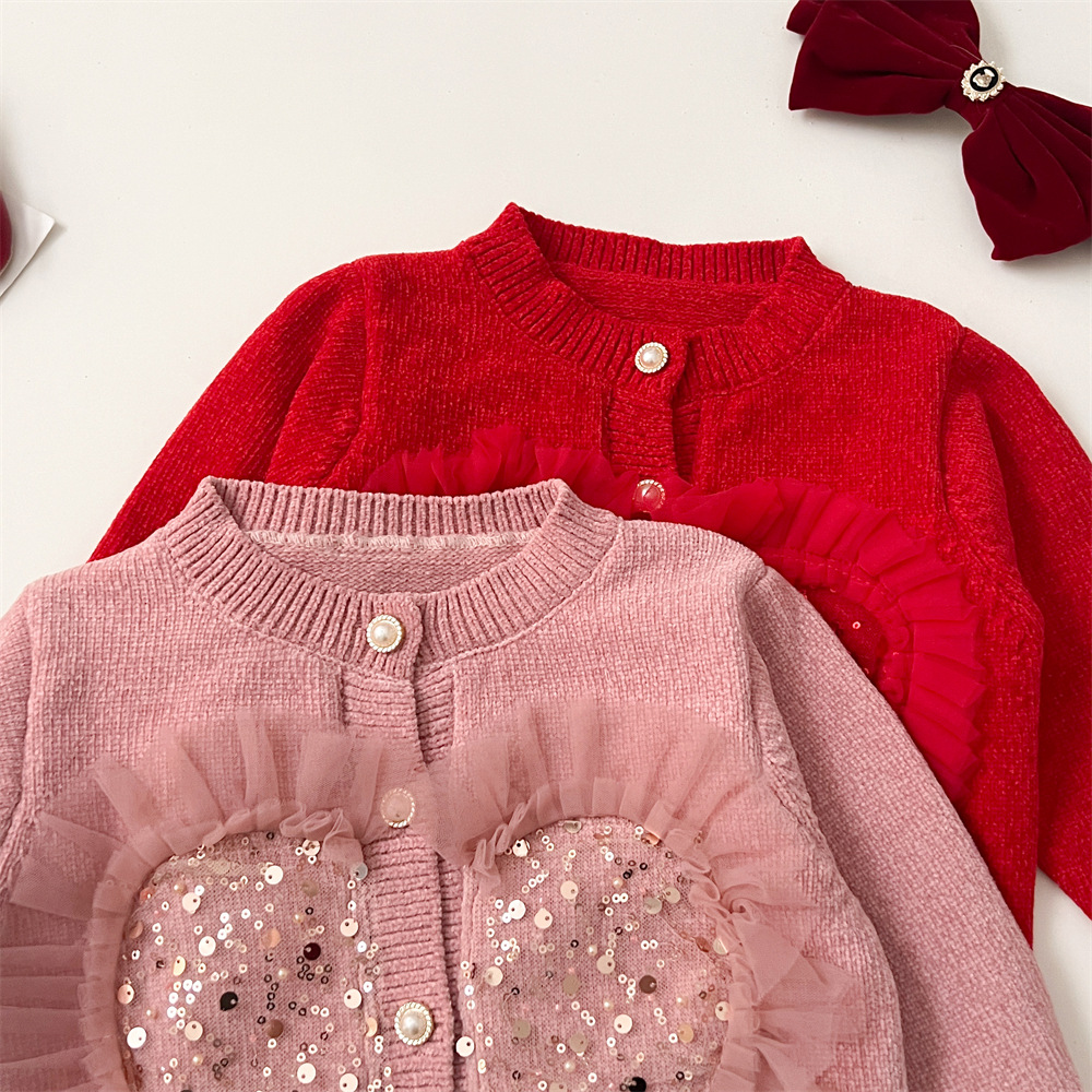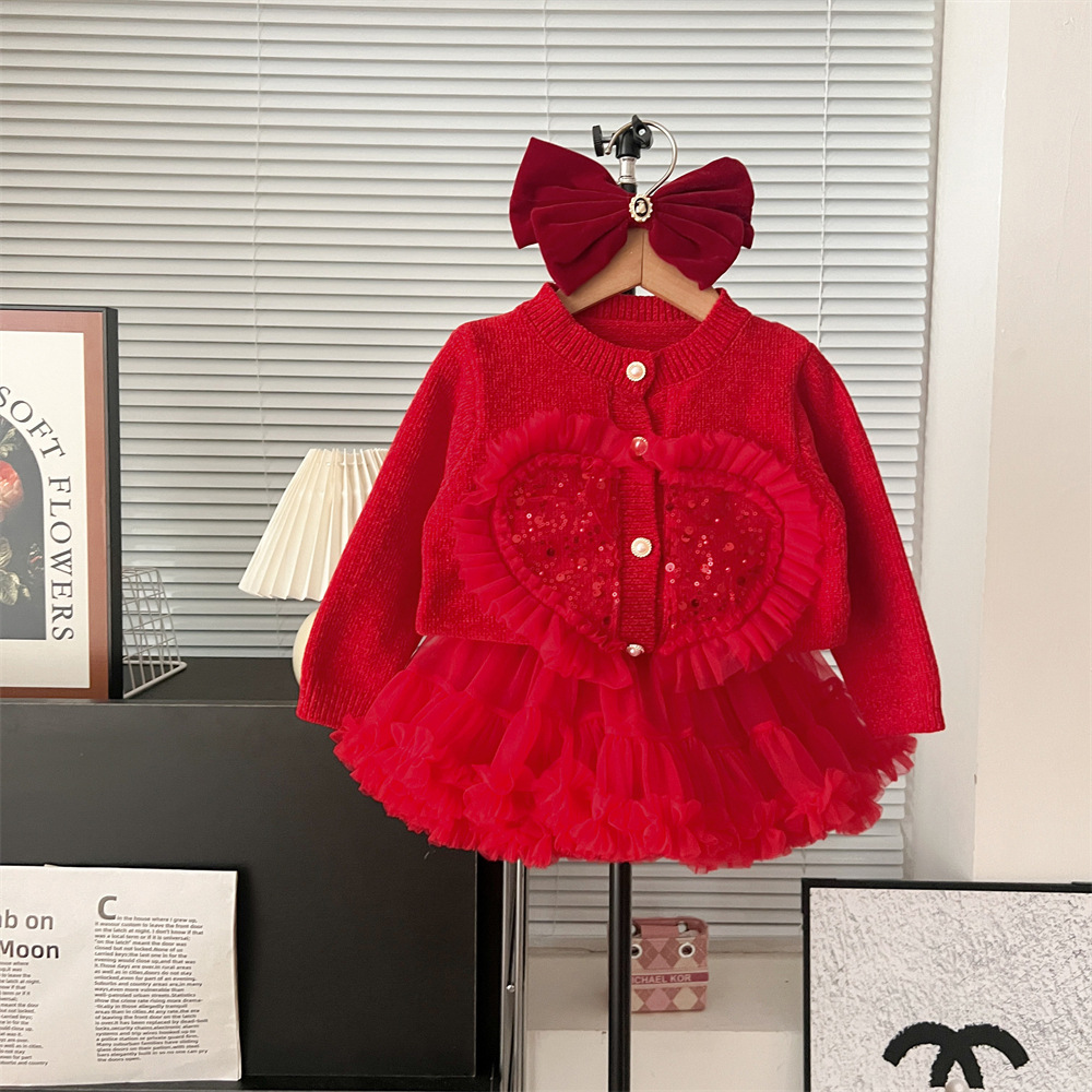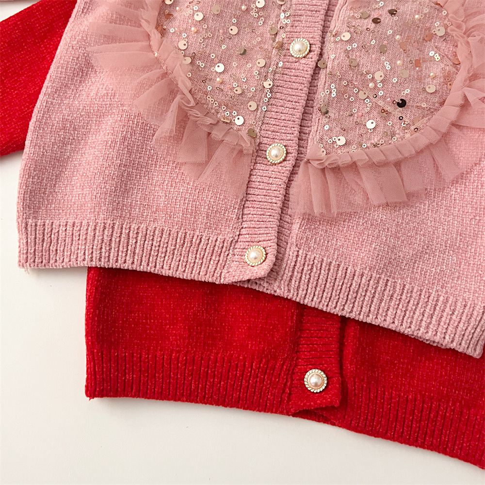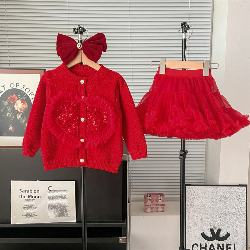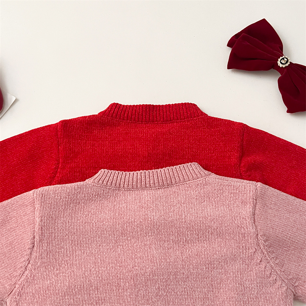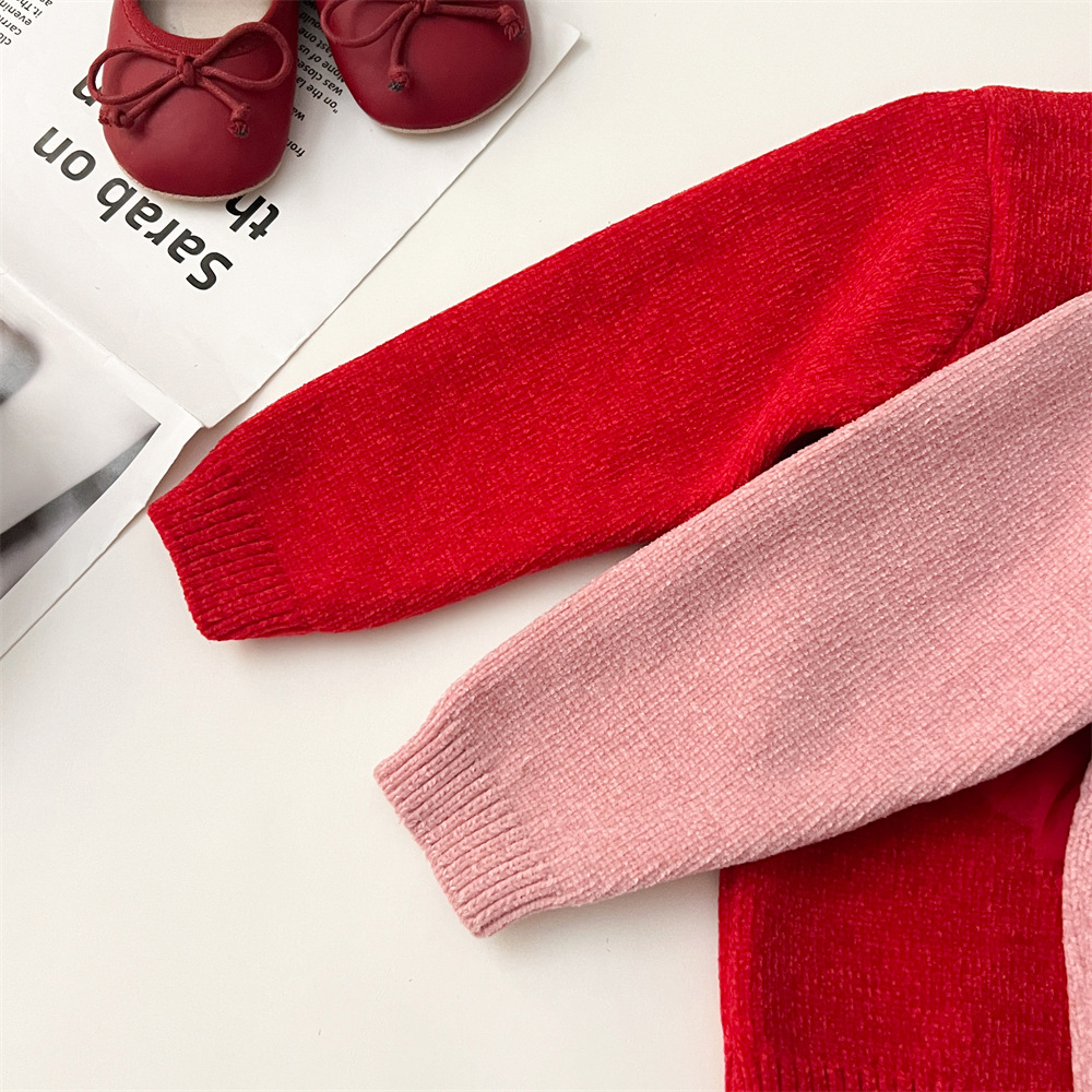 2024 가을 겨울 새 여아 스웨터 레드 카디건 가을과 겨울 새로운 여성의 보물 니트 스퀸 스웨터 한국 스타일