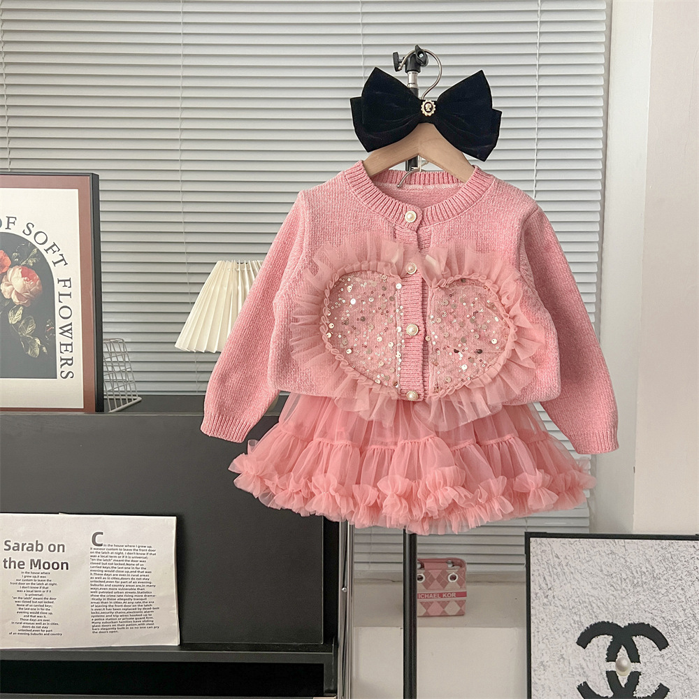 • 핑크 핫 다이아몬드 사랑 카디건 투투 원피스