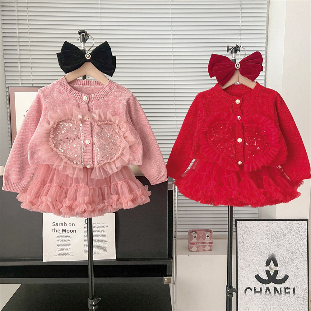 • 레드 핫 다이아몬드 사랑 카디건 투투 원피스