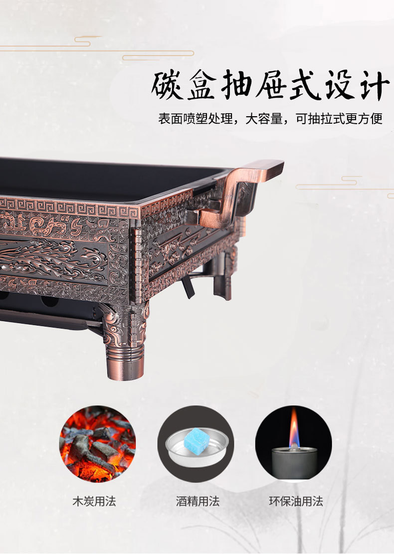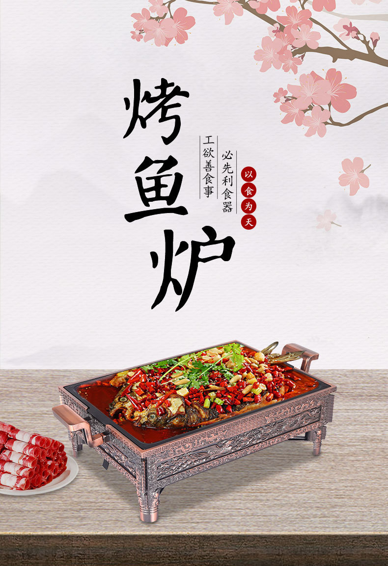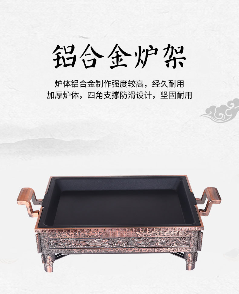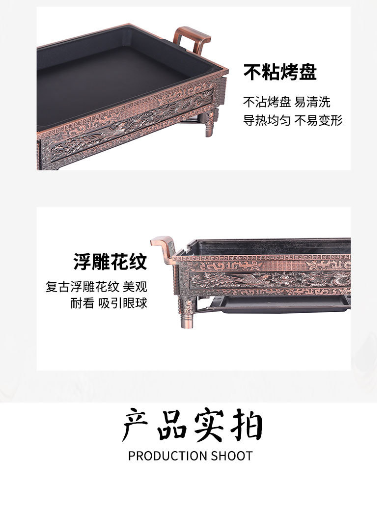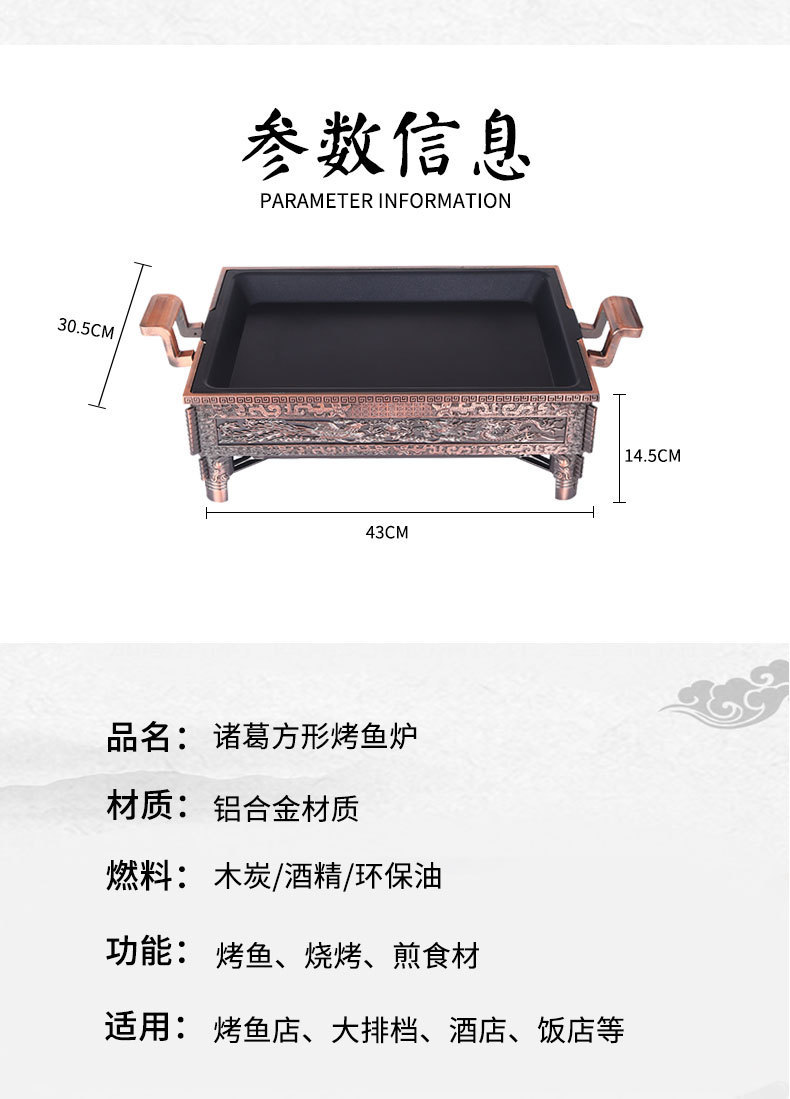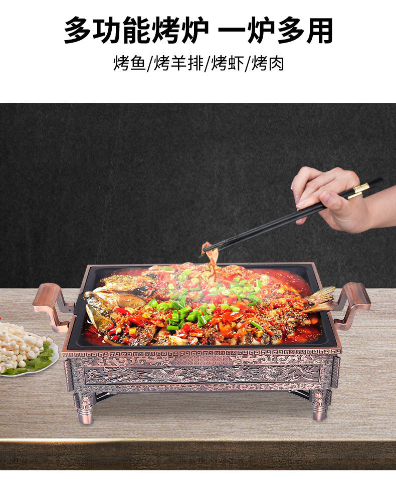 맞춤형 도매 고급 호텔 용품 알루미늄 합금 드래곤 피닉스 그릴 상업용 숯불 알코올 붙지 않는 사각형 생선 그릴
