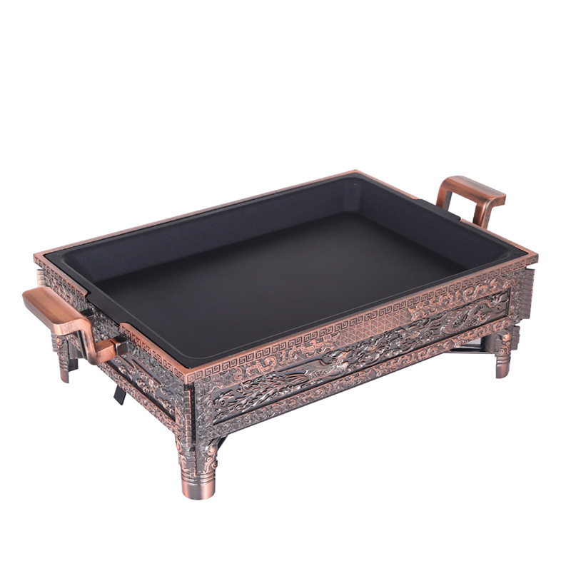 맞춤형 도매 고급 호텔 용품 알루미늄 합금 드래곤 피닉스 그릴 상업용 숯불 알코올 붙지 않는 사각형 생선 그릴스토어 가기