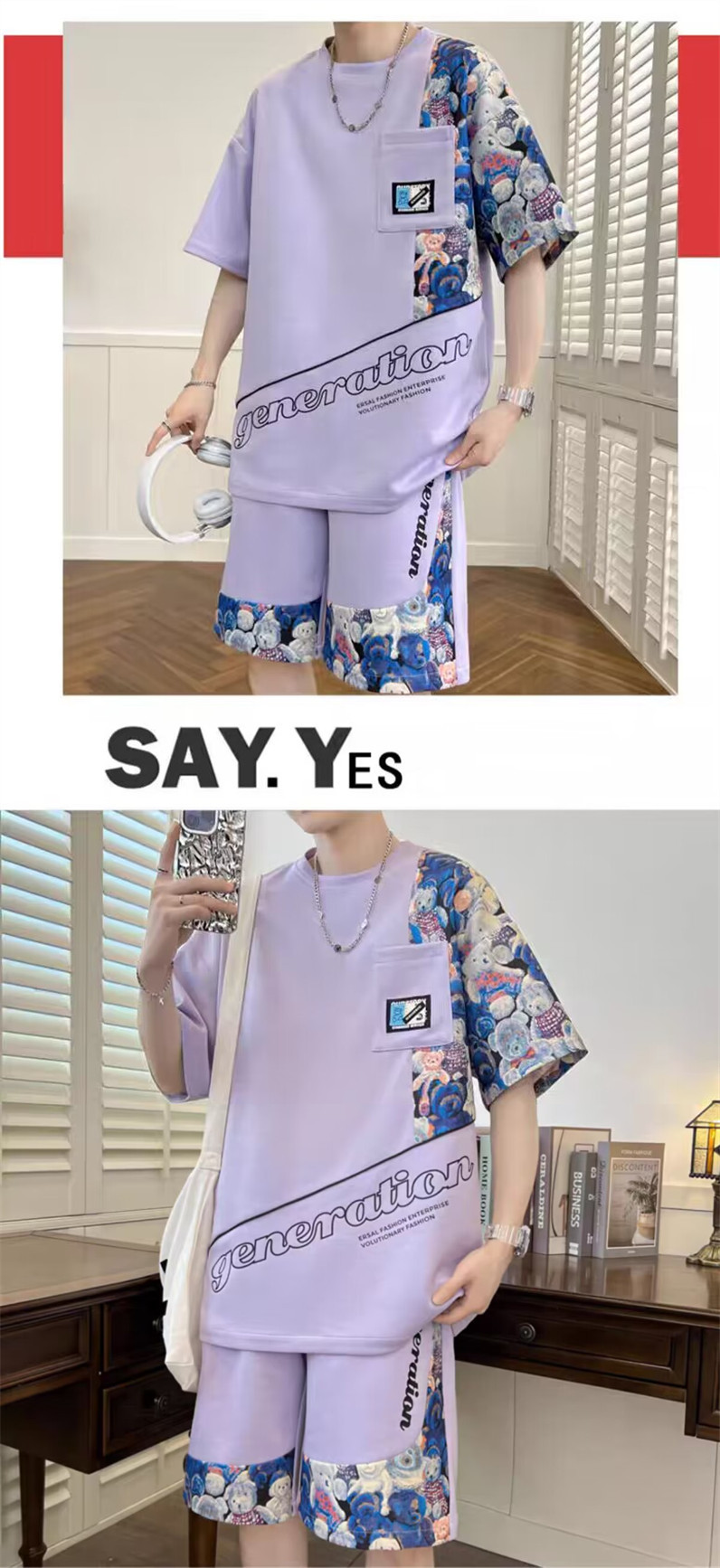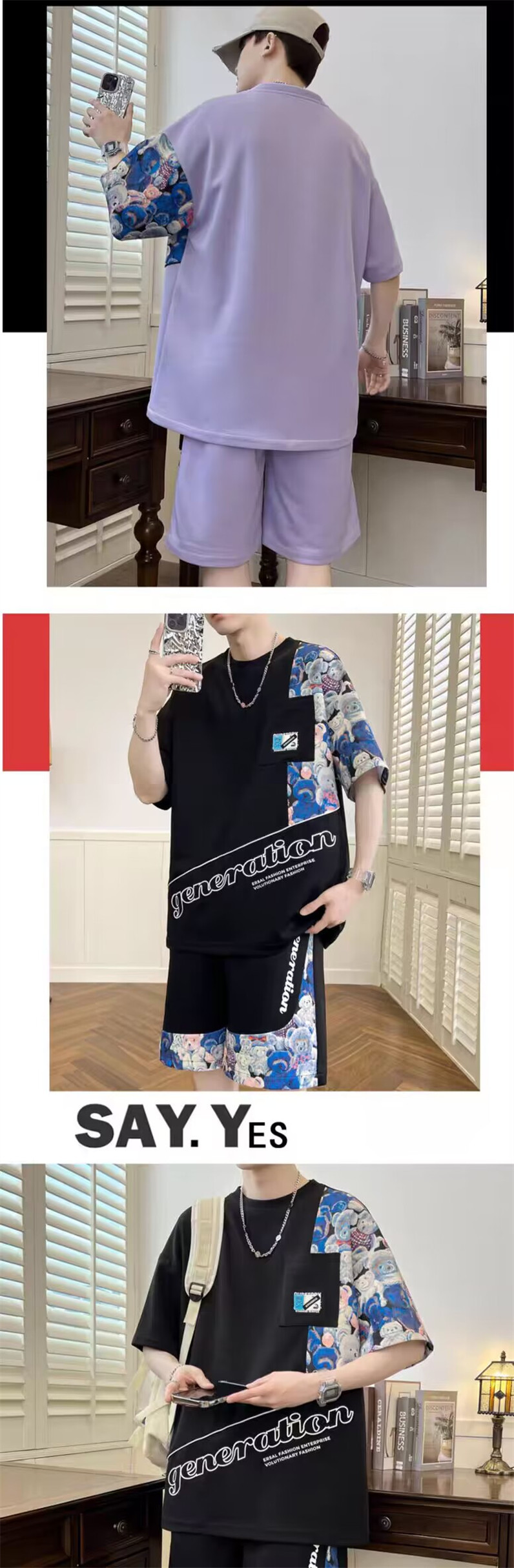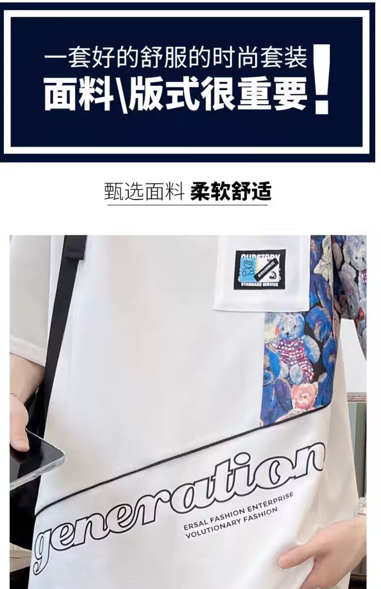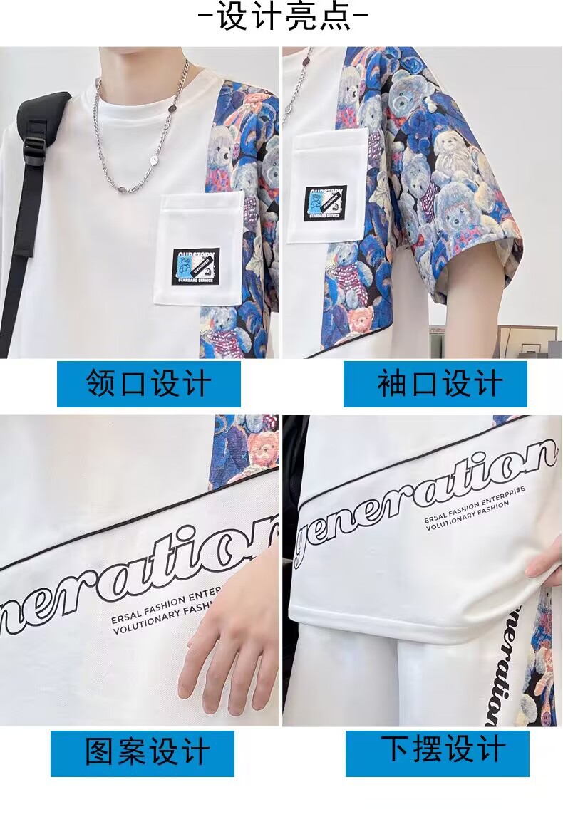 남성 캐주얼 스포츠 반팔 세트 느슨한 플러스 사이즈 통기성 여름 성격 인쇄 패션 홍콩 스타일 공장 아울렛스토어 가기