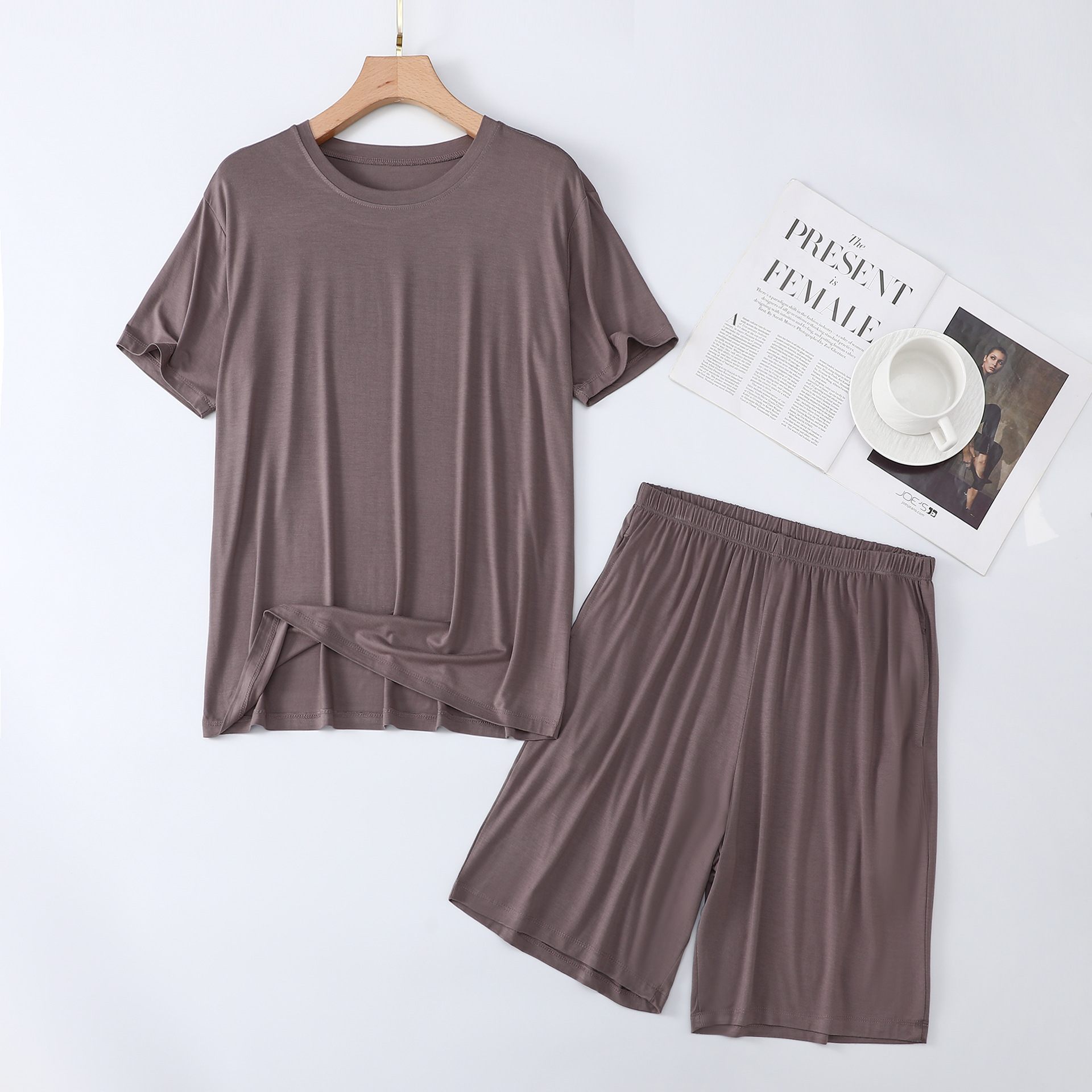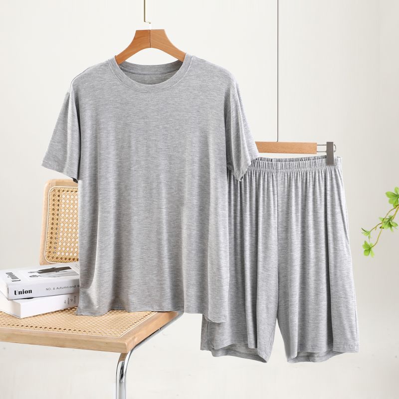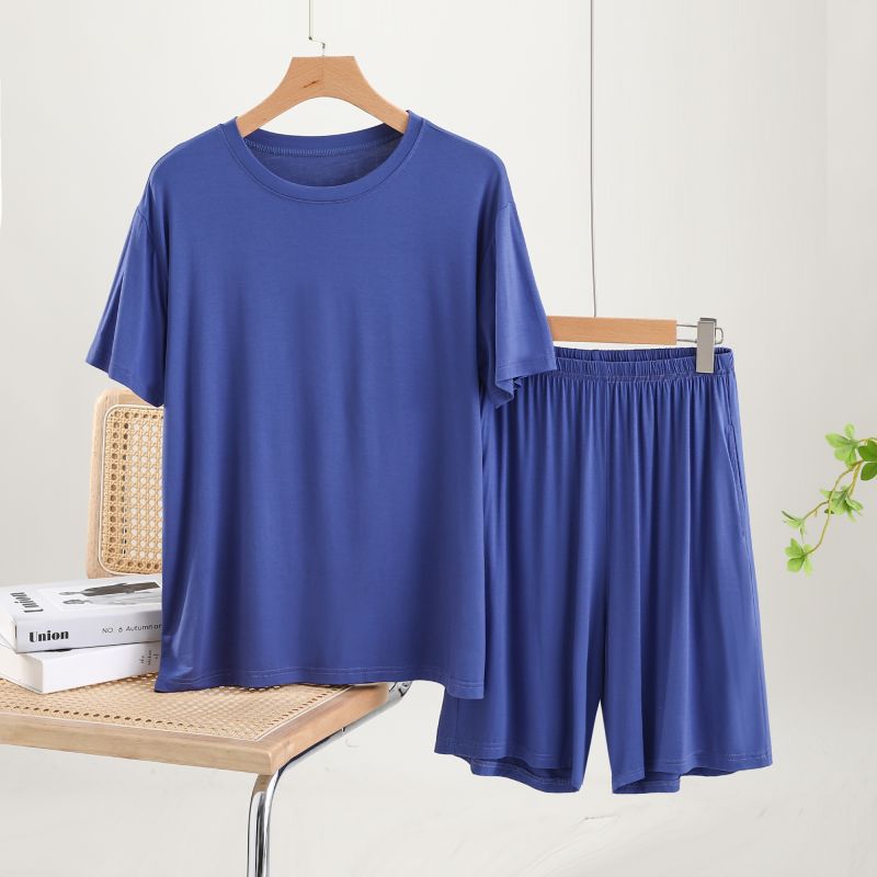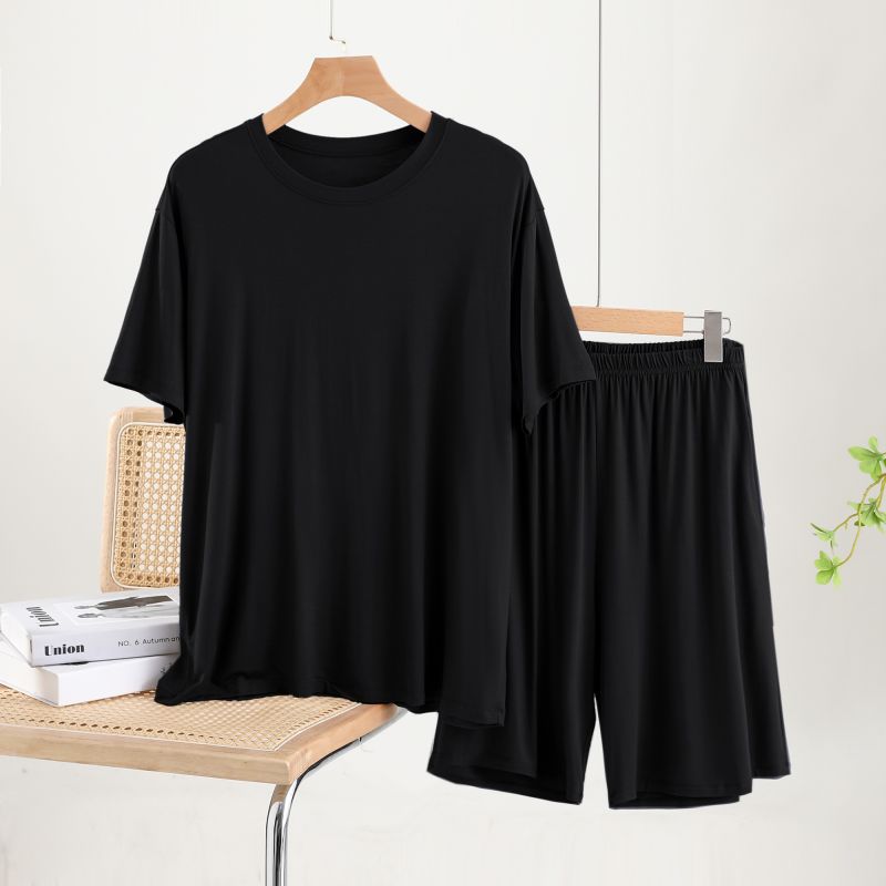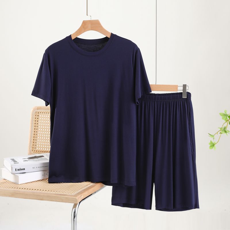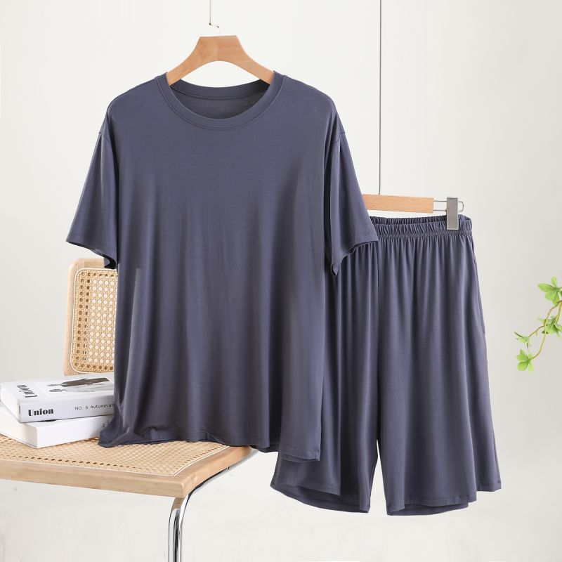남성용 잠옷 여름 반소매 모달 아이스 실크 얇은 플러스 사이즈 캐주얼 심플 여름 남성용 홈 의류 세트
