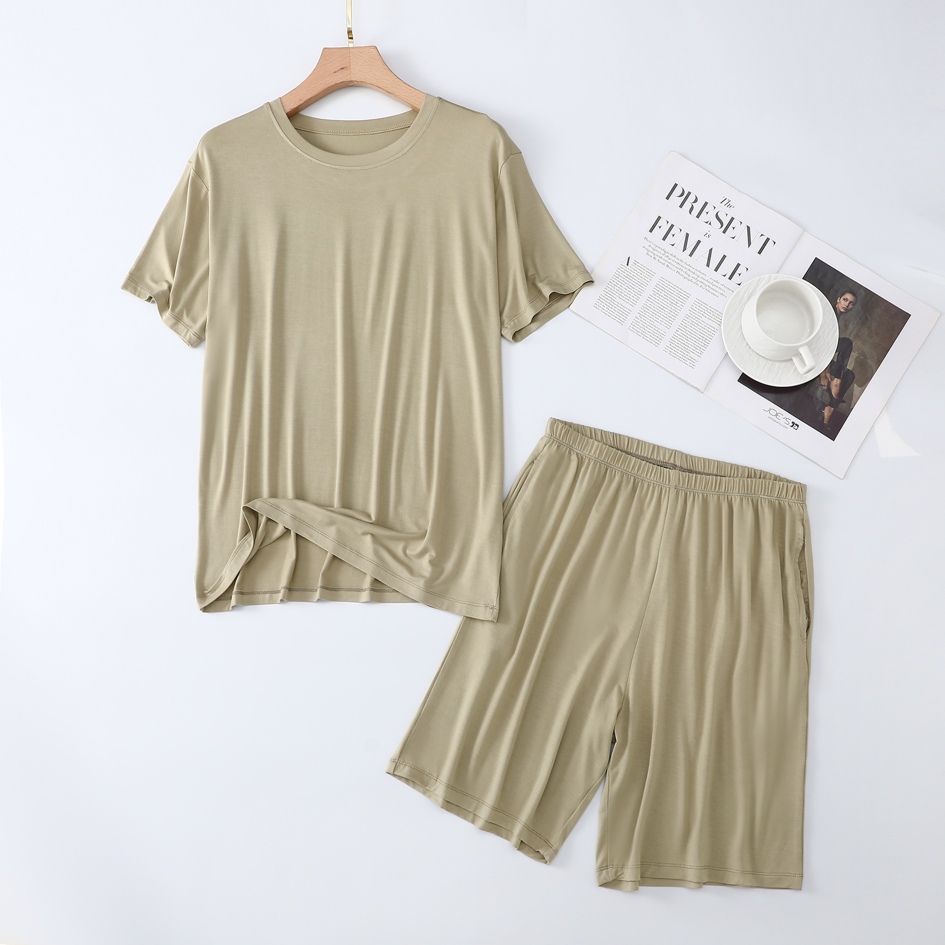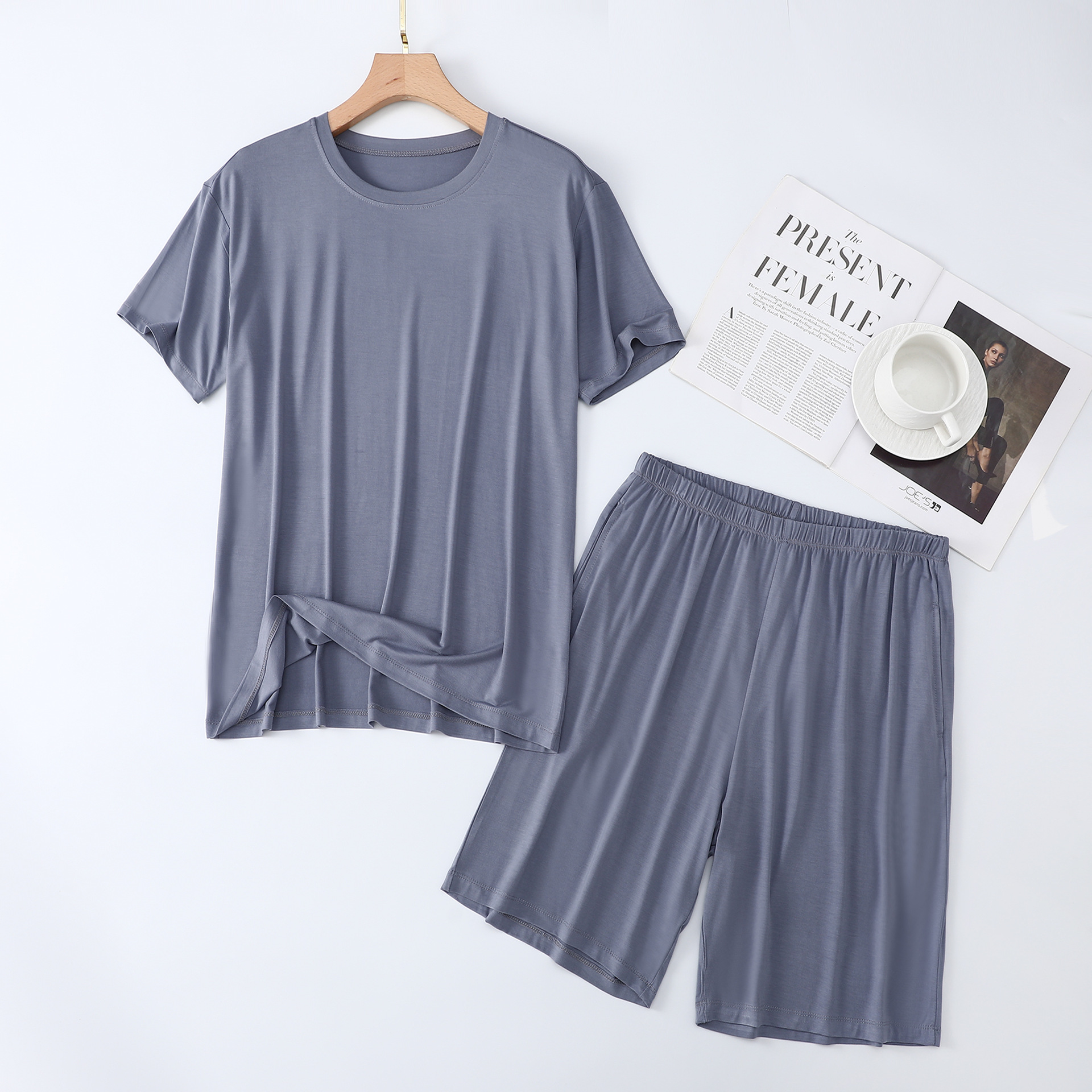 남성용 잠옷 여름 반소매 모달 아이스 실크 얇은 플러스 사이즈 캐주얼 심플 여름 남성용 홈 의류 세트스토어 가기
