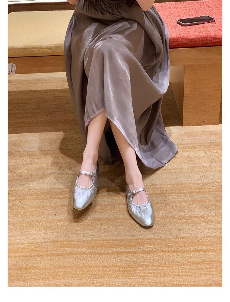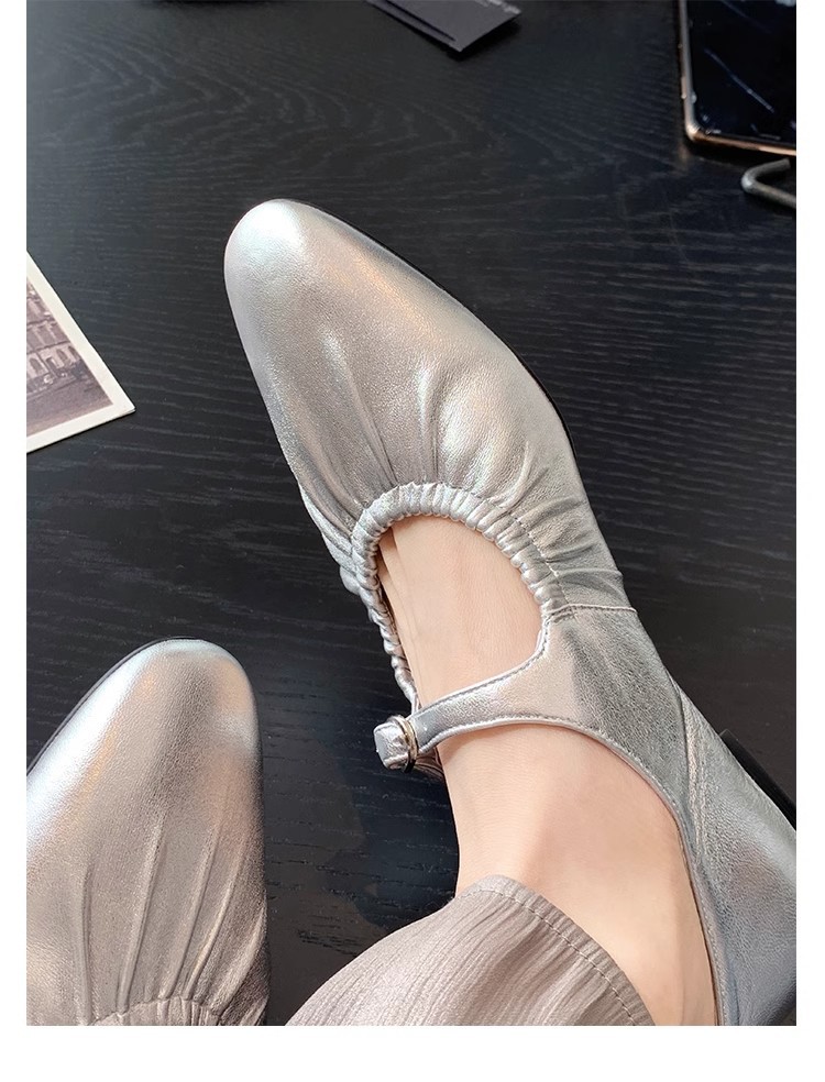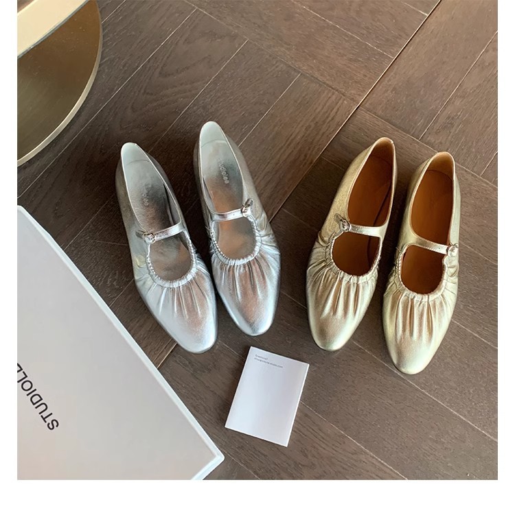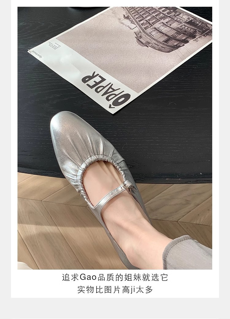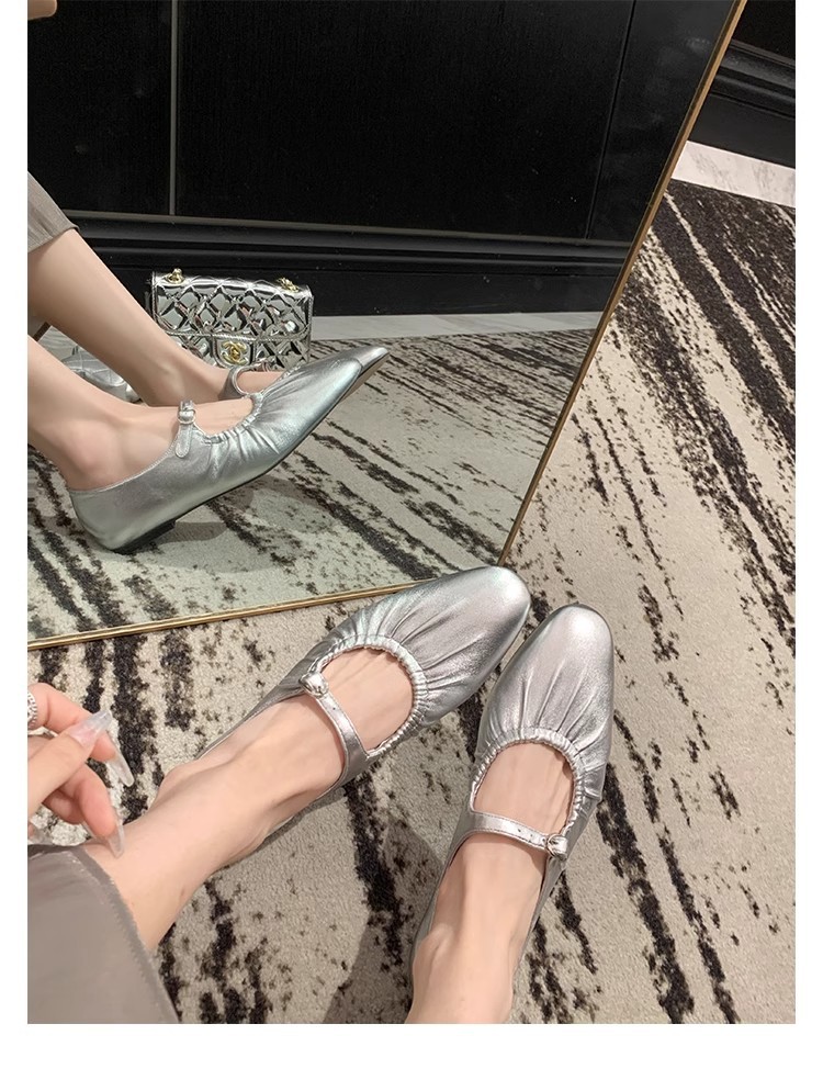 실버 색상의 얕은 굽의 싱글 슈즈 2026년 신상 프렌치 스타일의 우아한 플랫 발레 슬립온 메리제인 여성화스토어 가기