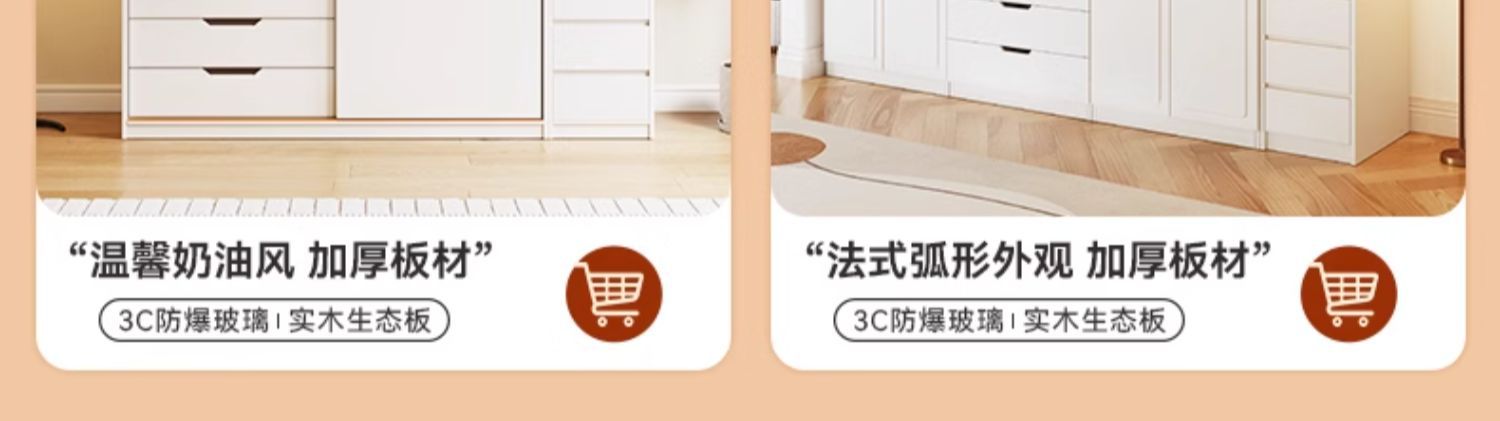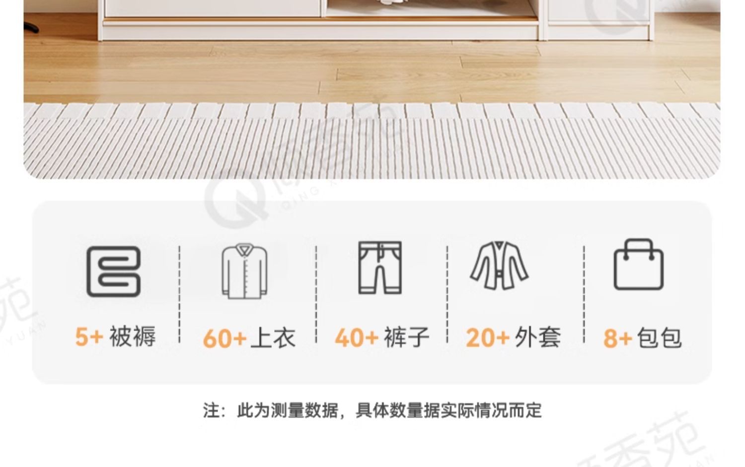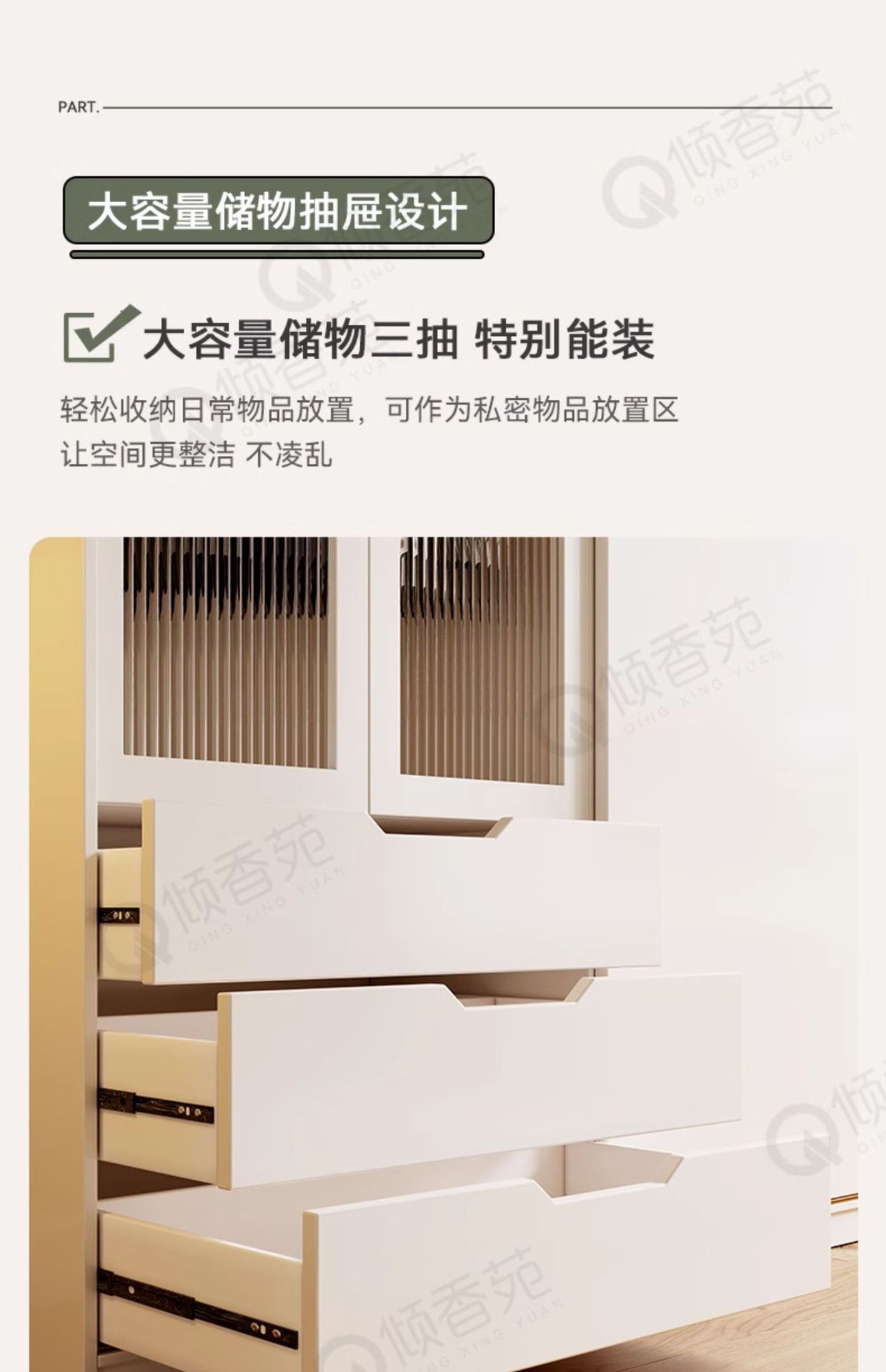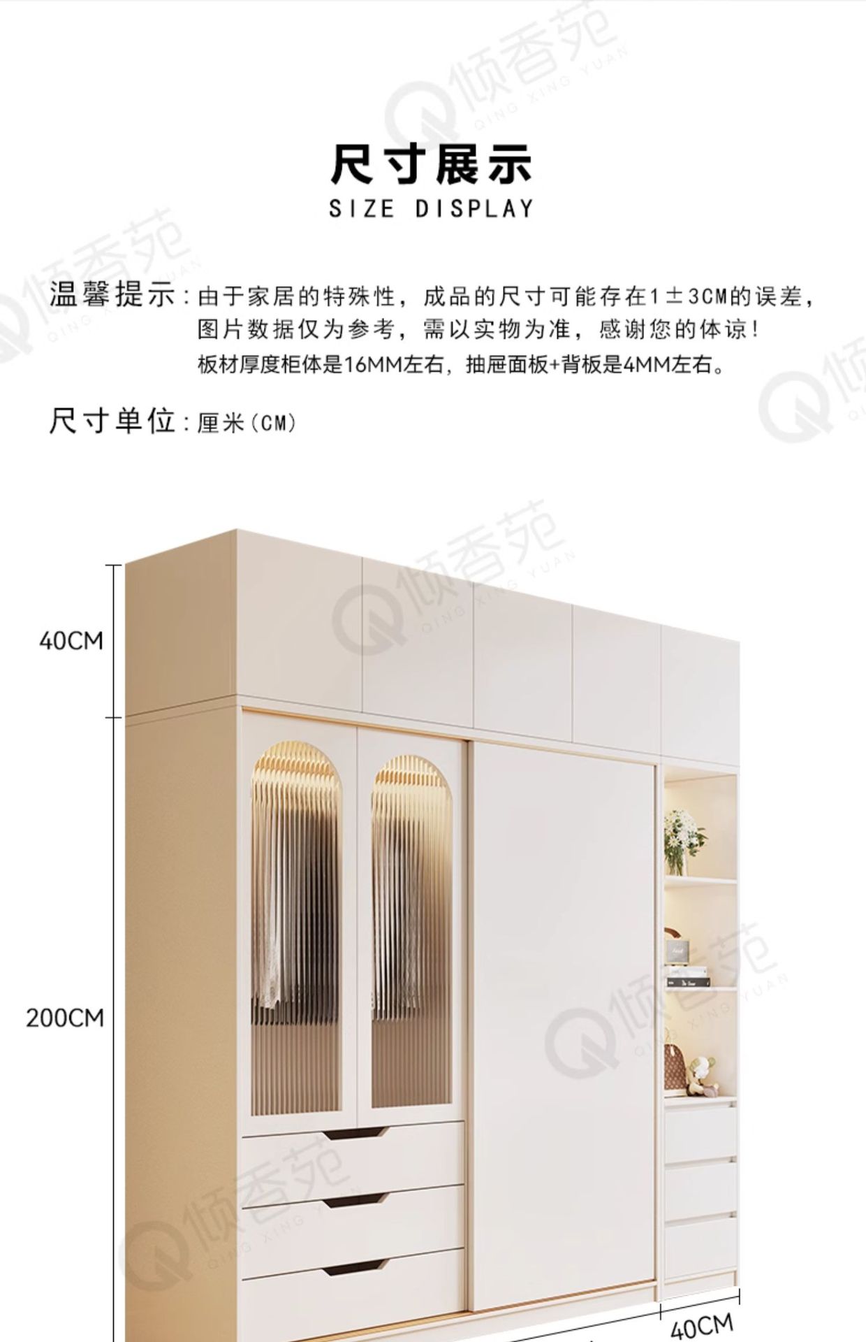 • 화이트 + 사이드 캐비닛 180*60*200cm [원목 패키지 설치]