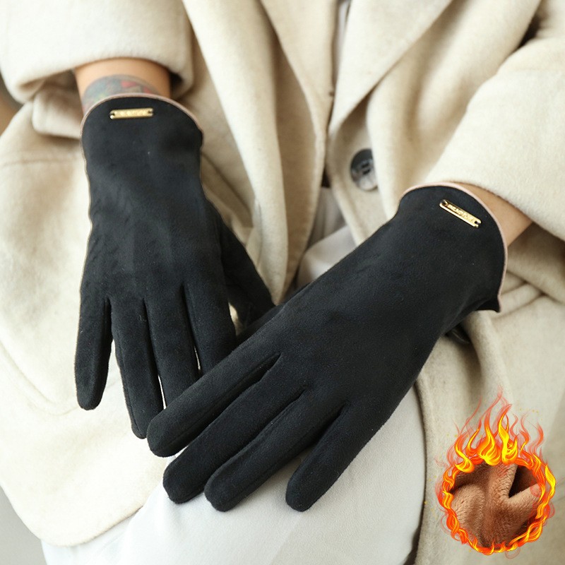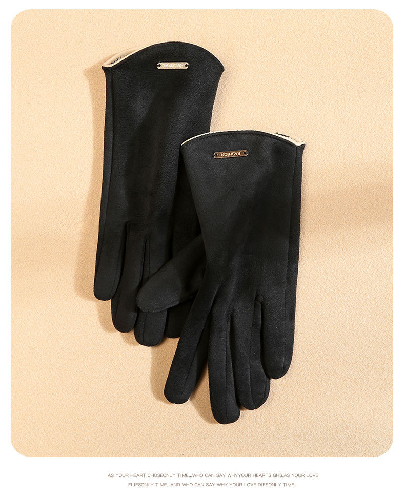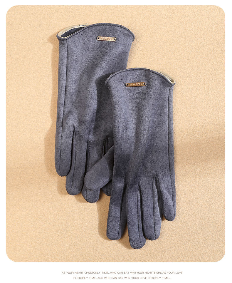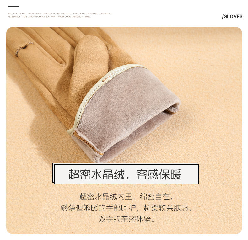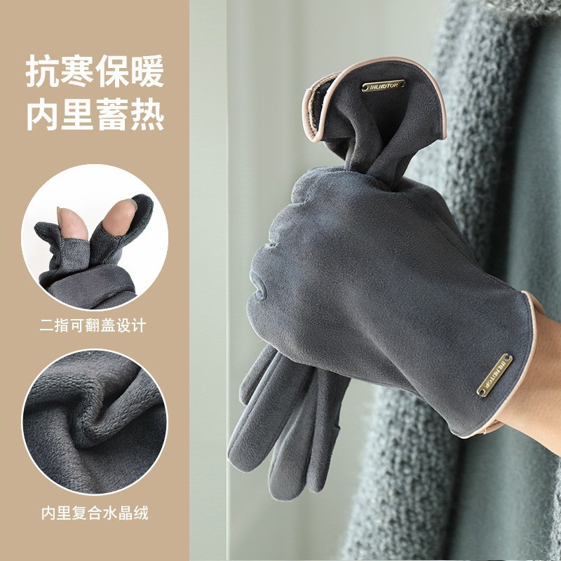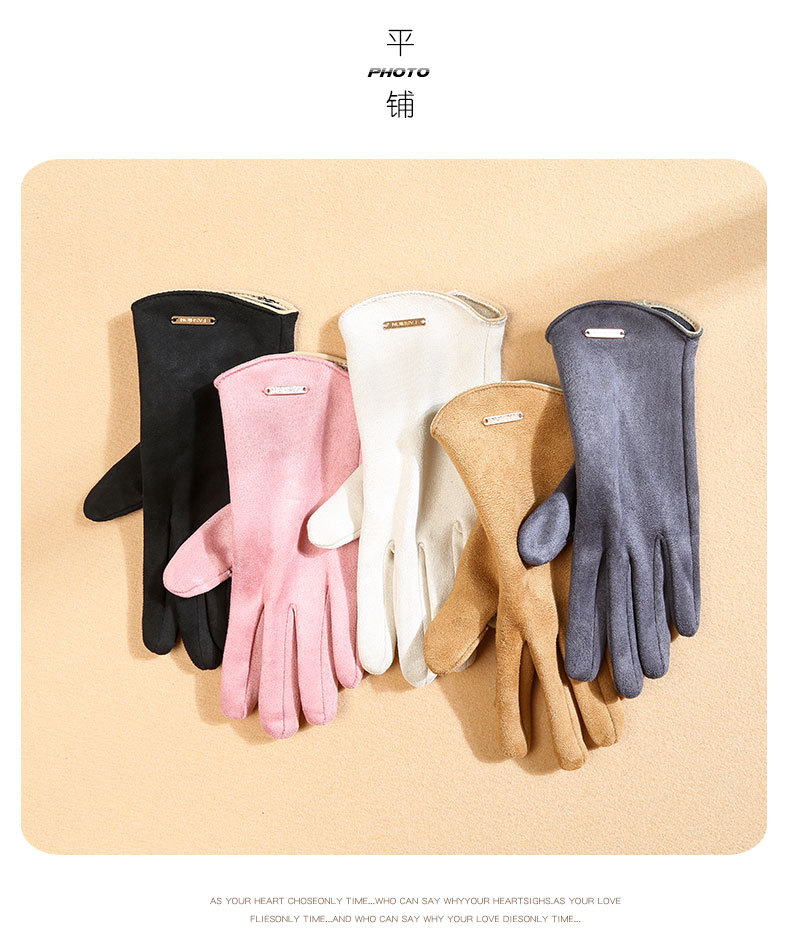 남자와 여자 스웨이드 가을과 겨울 기모 두껍게 따뜻한 한국식 올 매치 트램 냉간 터치 스크린 핑거 장갑