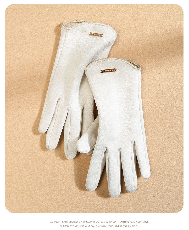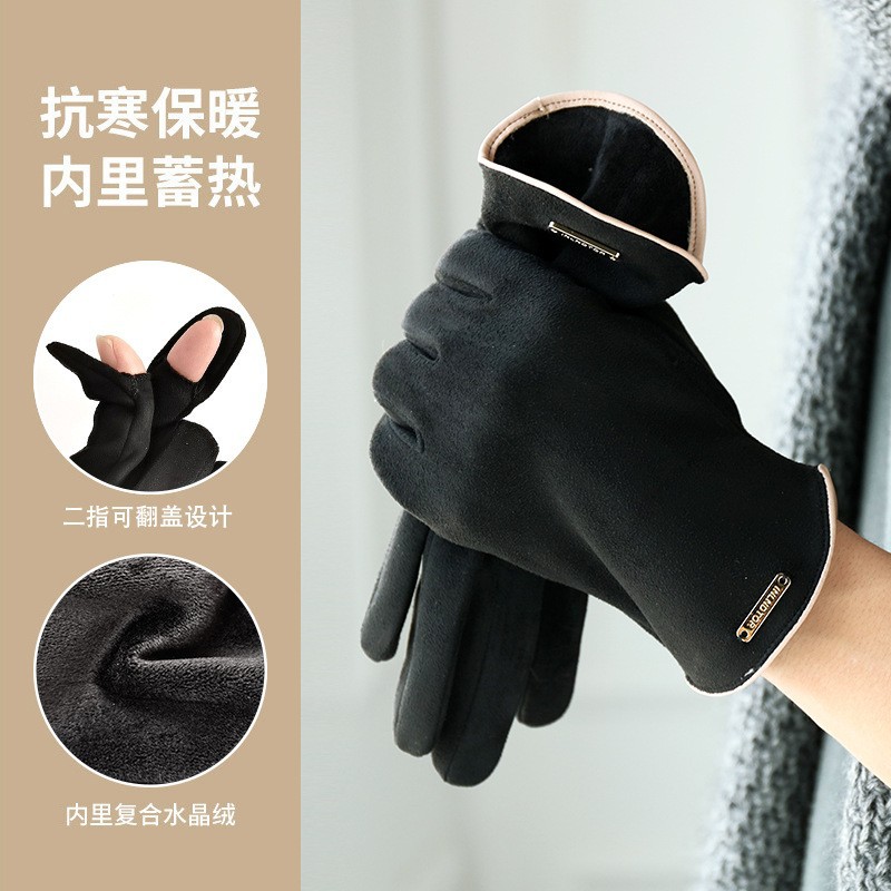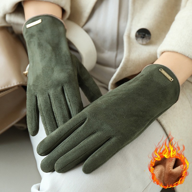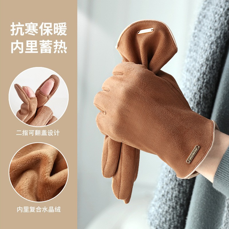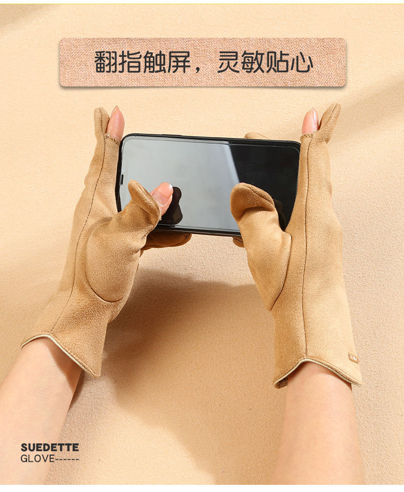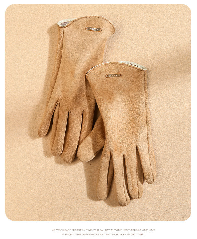 남자와 여자 스웨이드 가을과 겨울 기모 두껍게 따뜻한 한국식 올 매치 트램 냉간 터치 스크린 핑거 장갑
