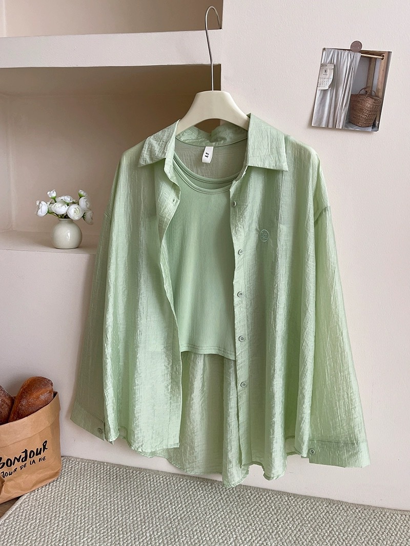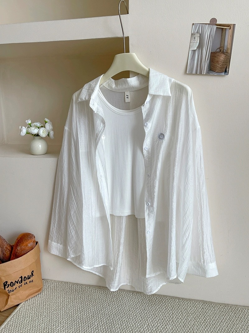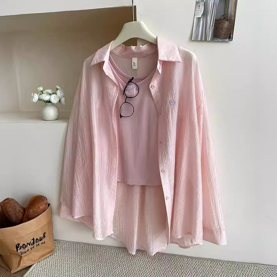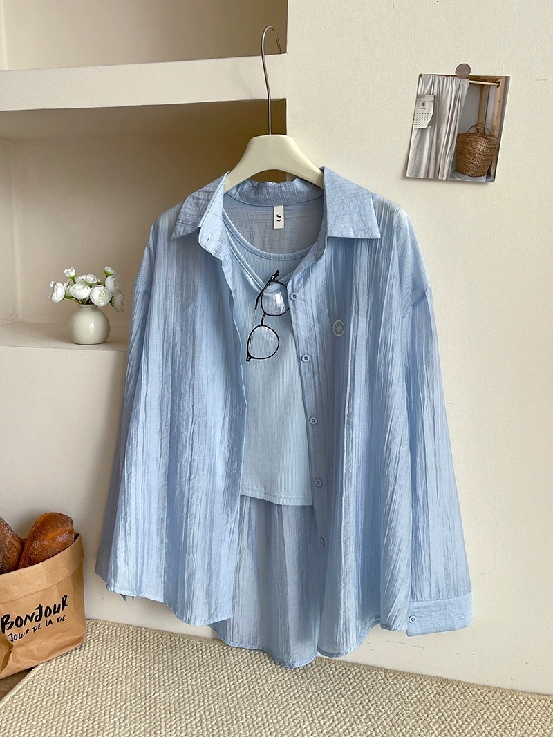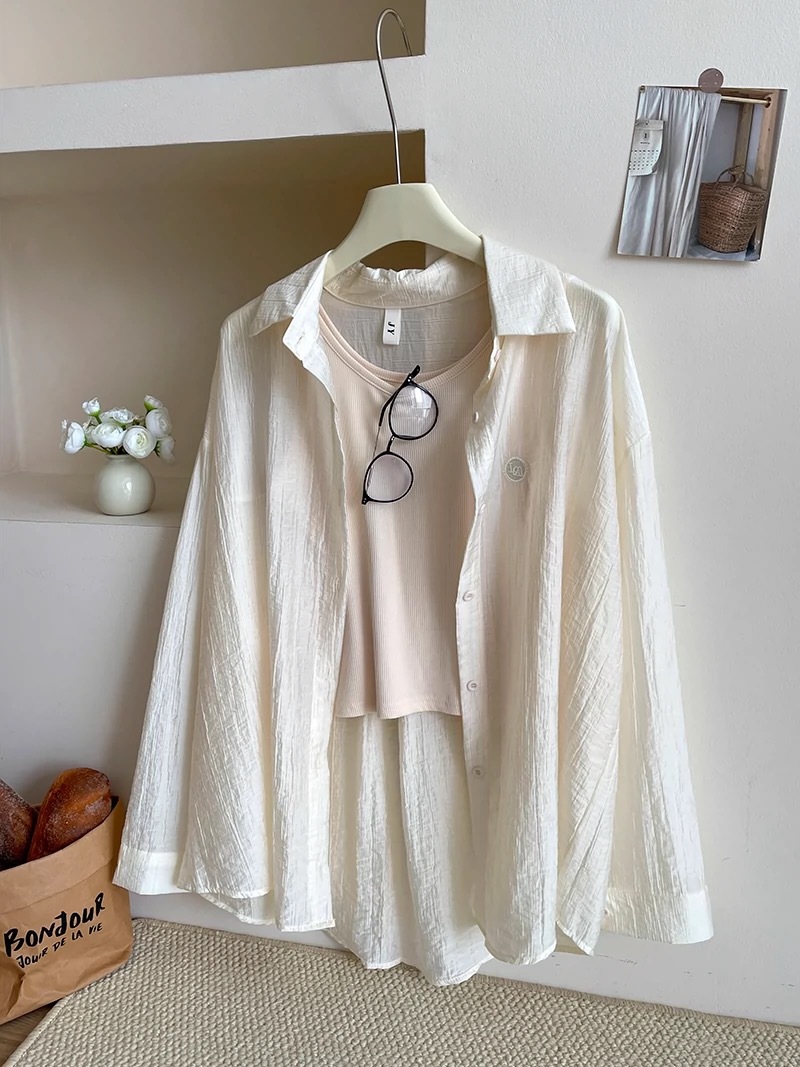 산소 인식 주름 질감 셔츠 여름 달콤한 얇은 얼음 실크 프랑스 고급 긴팔 카디건 재킷