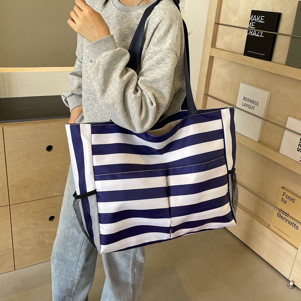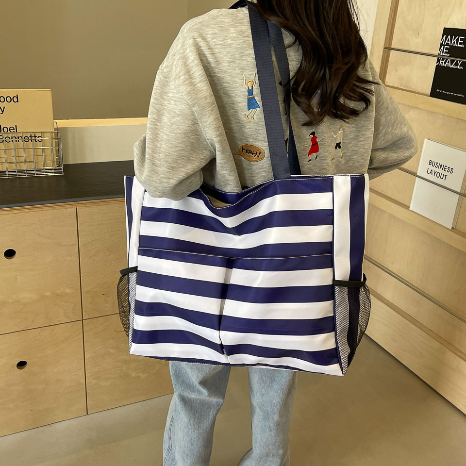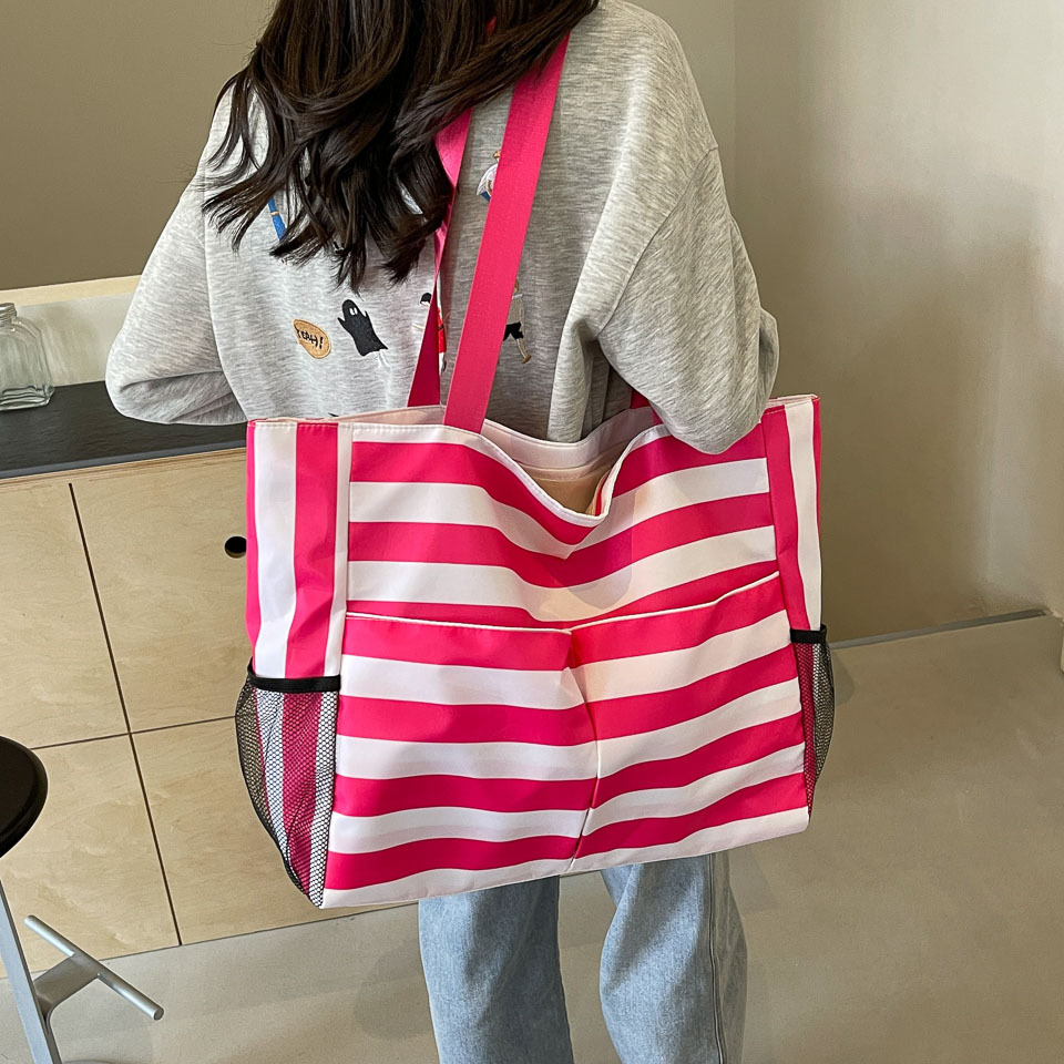 한국 스타일 예술적인 배색 캔버스백 2025 봄 여름 신상 토트백 대용량 숄더백 겨드랑이백 스트라이프 비치백스토어 가기