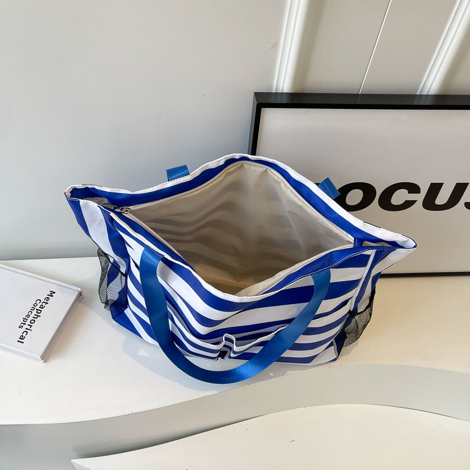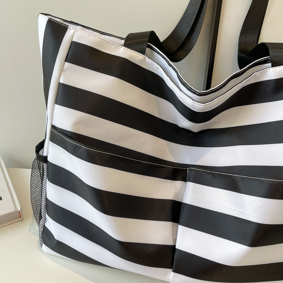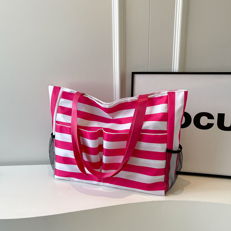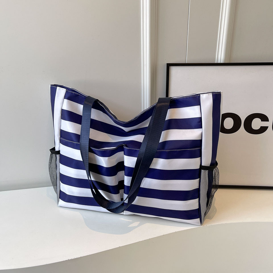 한국 스타일 예술적인 배색 캔버스백 2025 봄 여름 신상 토트백 대용량 숄더백 겨드랑이백 스트라이프 비치백스토어 가기