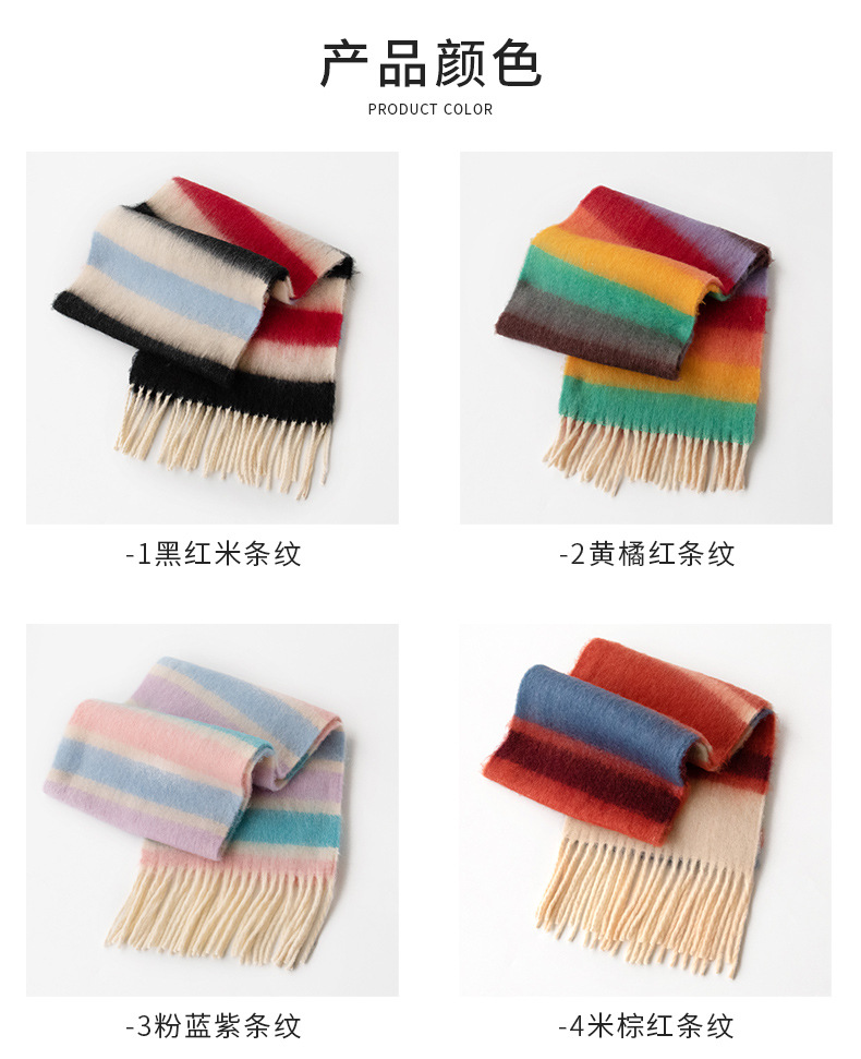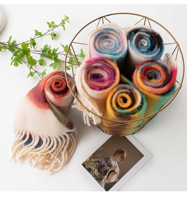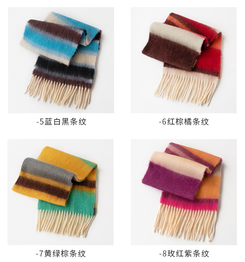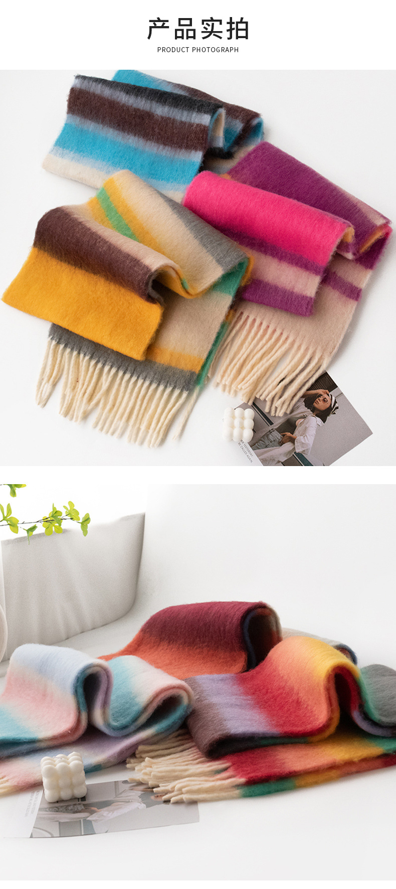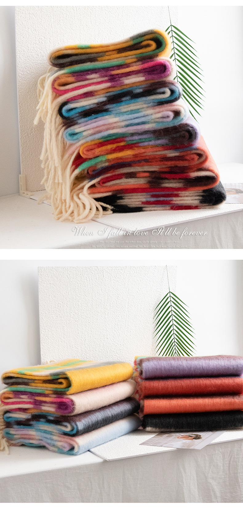 도파민 레인보우 스카프, 고급스러운 여성용 가을 겨울 메일라드 플러피 체크 무늬 두꺼운 보온 숄스토어 가기