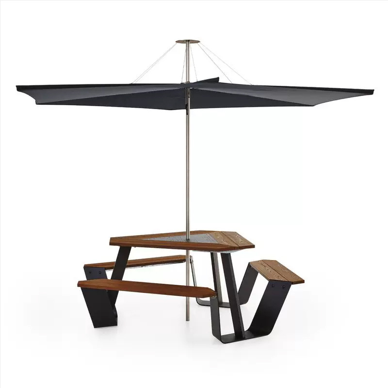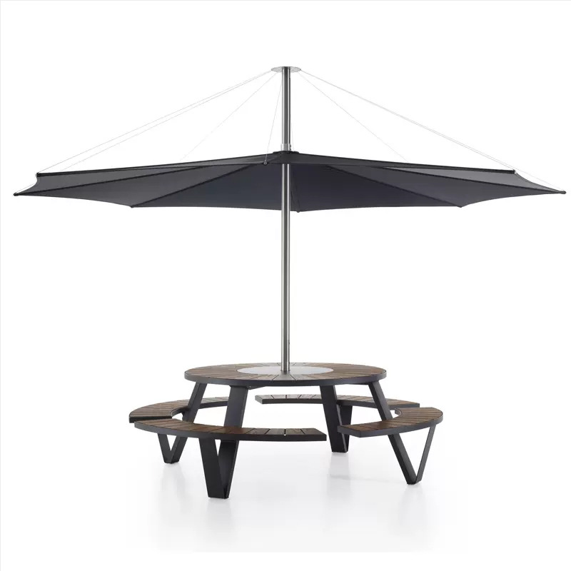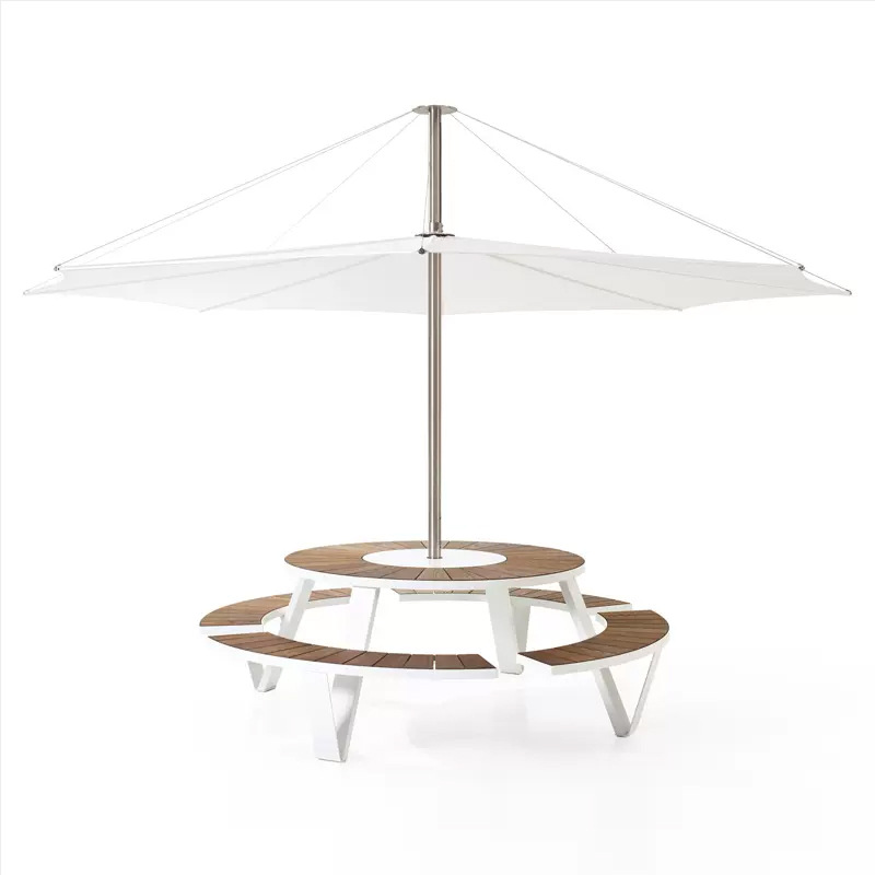 창의적인 야외 원형 테이블, 파크 체어, 우산, 방수 및 자외선 차단, 레스토랑 야외 일체형 스테인레스 스틸 플라스틱 목재 테이블과 의자스토어 가기