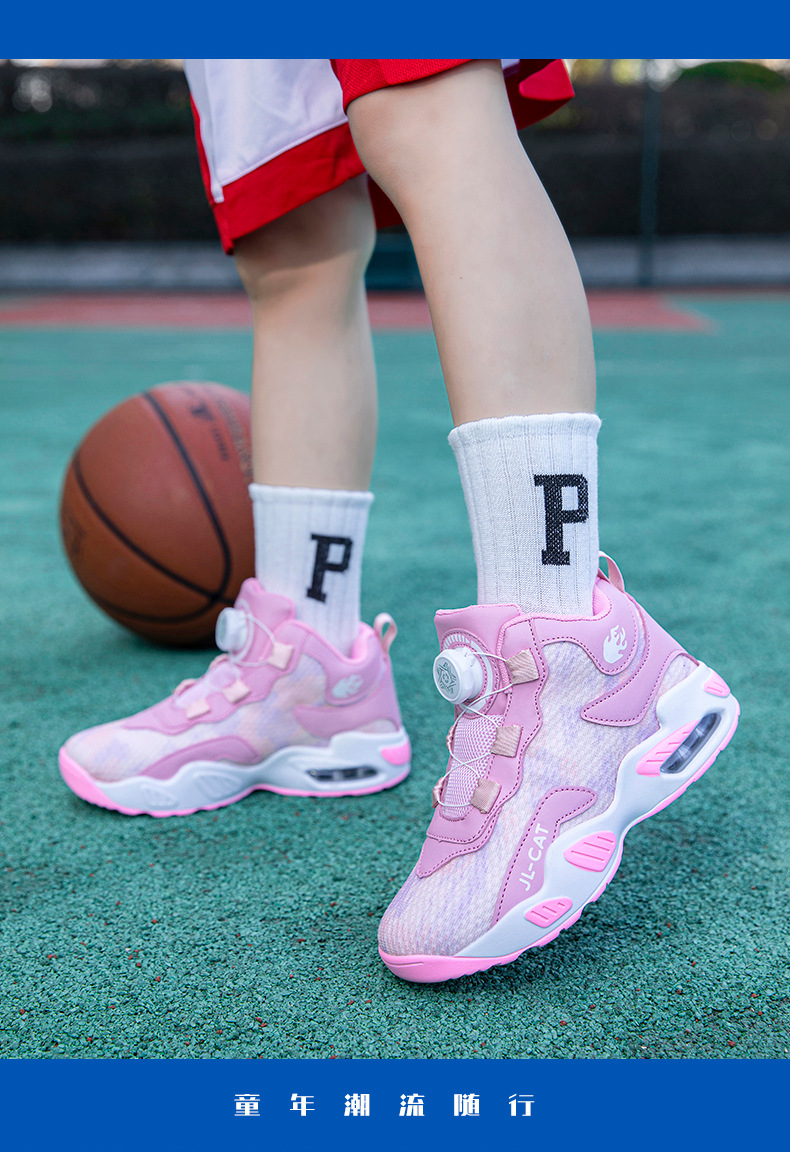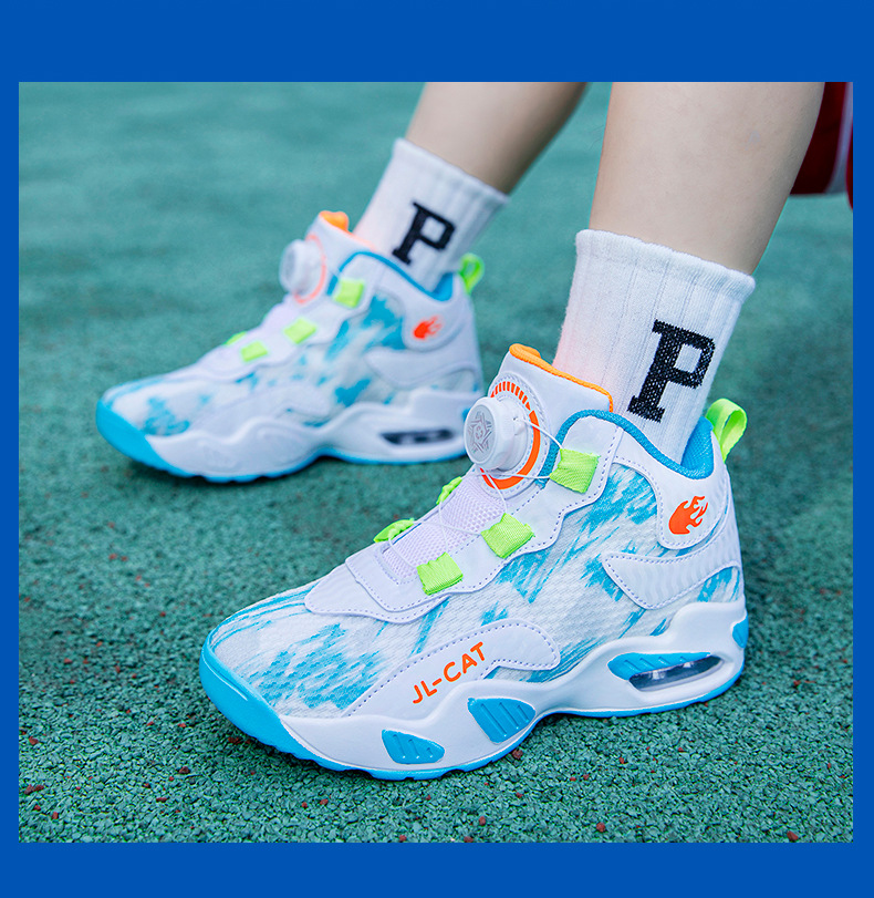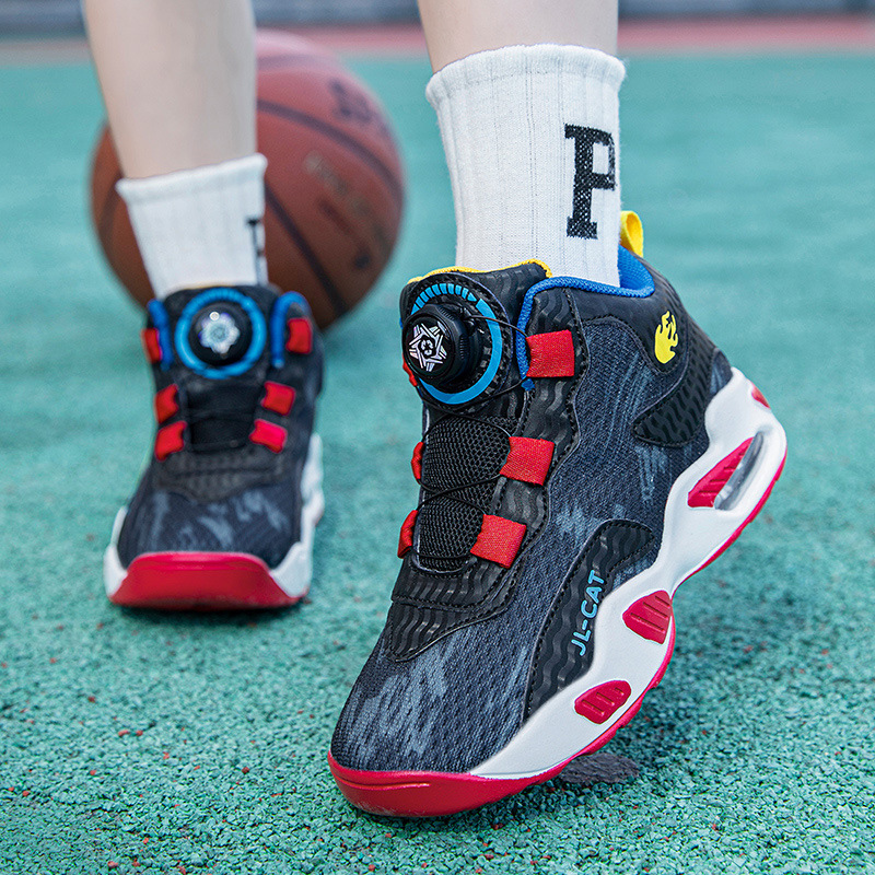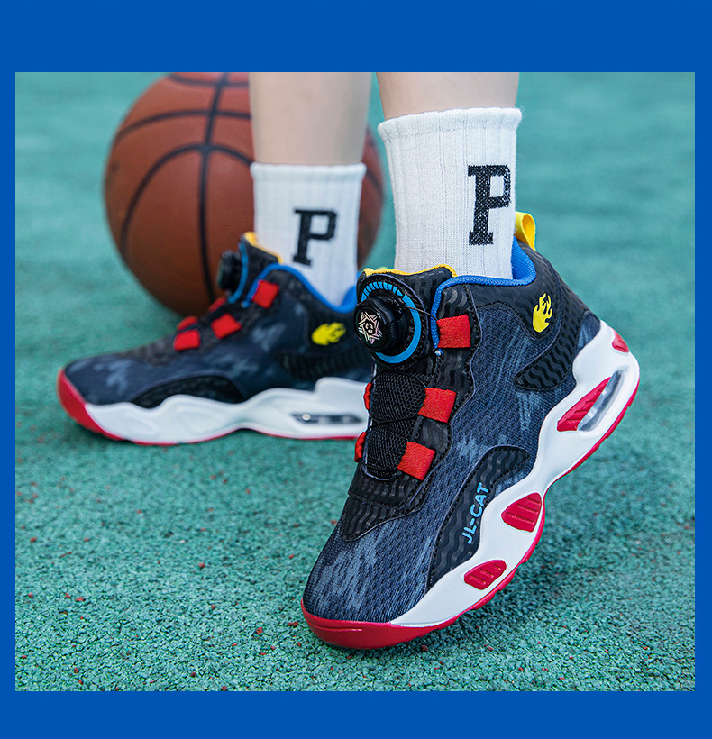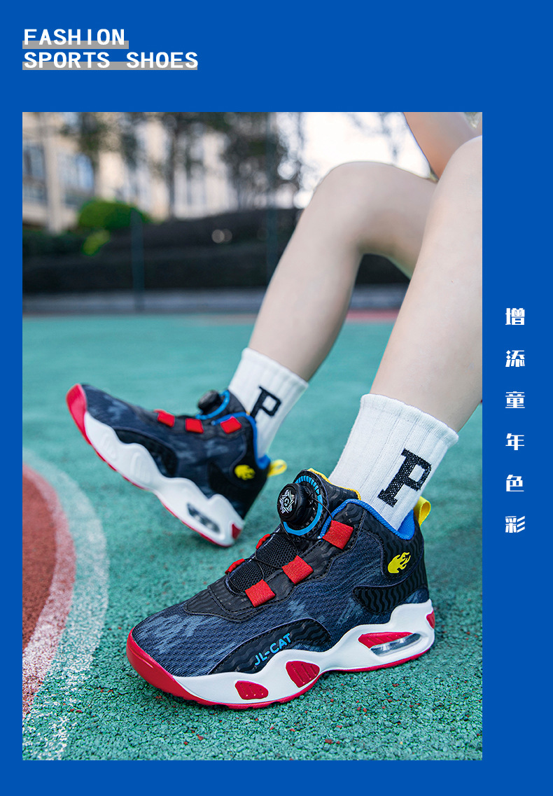 봄과 여름 메쉬 어린이 회전 버클 농구 신발 에어 쿠션 하단 청소년 운동화 28 어린이 신발 30 런닝 슈즈 진강 슈즈