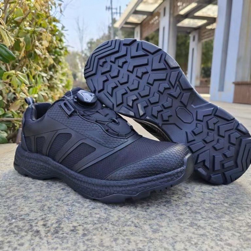 새로운 자동 버클 야외 훈련 경량 남성 신발 블랙 운동화 핀 방지 초경량 통기성 미끄럼 방지 등산 신발