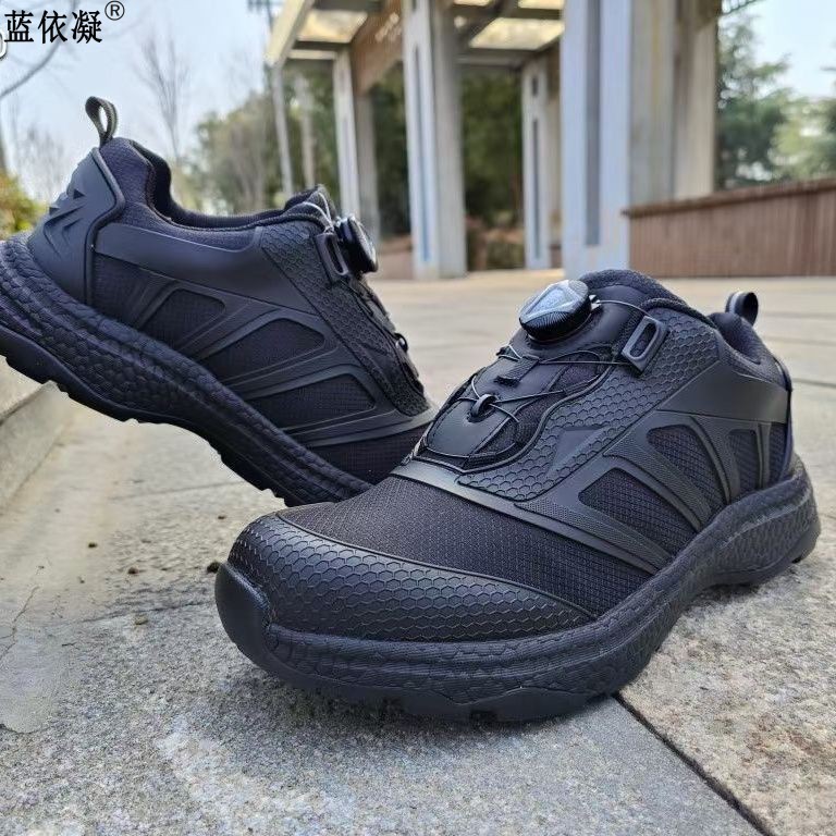 새로운 자동 버클 야외 훈련 경량 남성 신발 블랙 운동화 핀 방지 초경량 통기성 미끄럼 방지 등산 신발스토어 가기